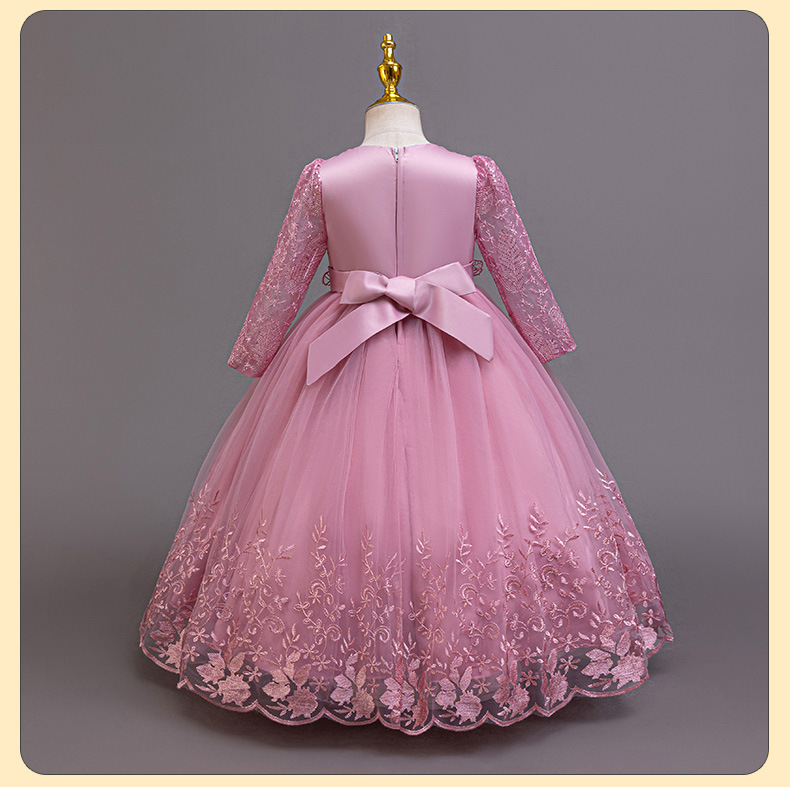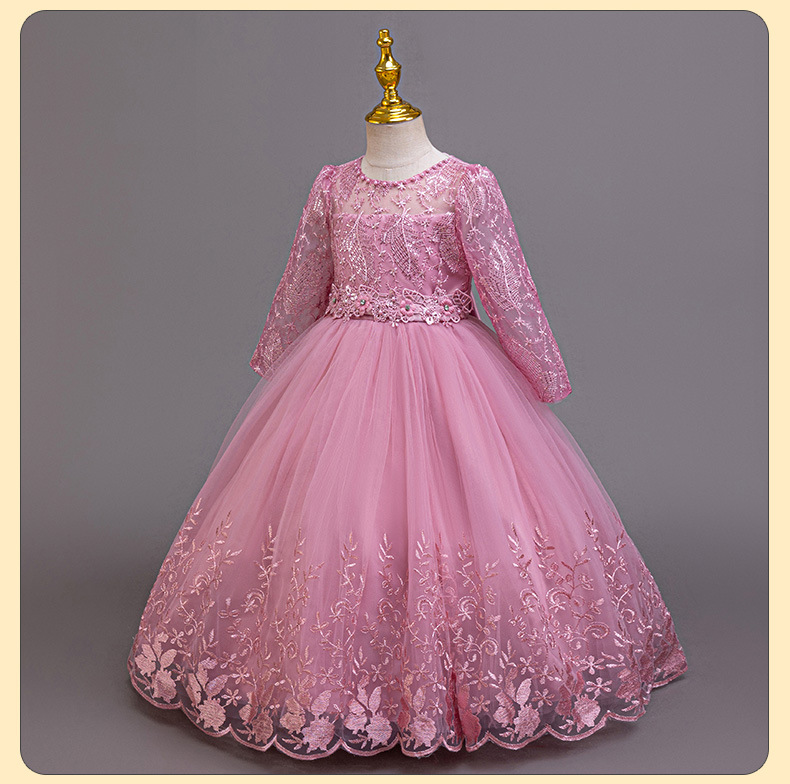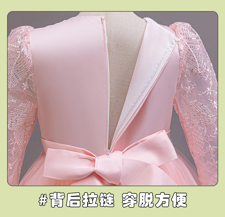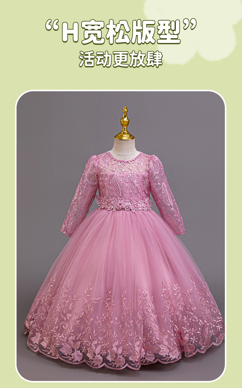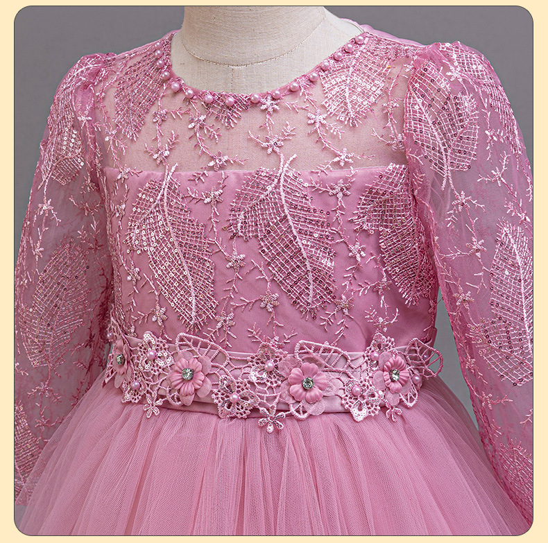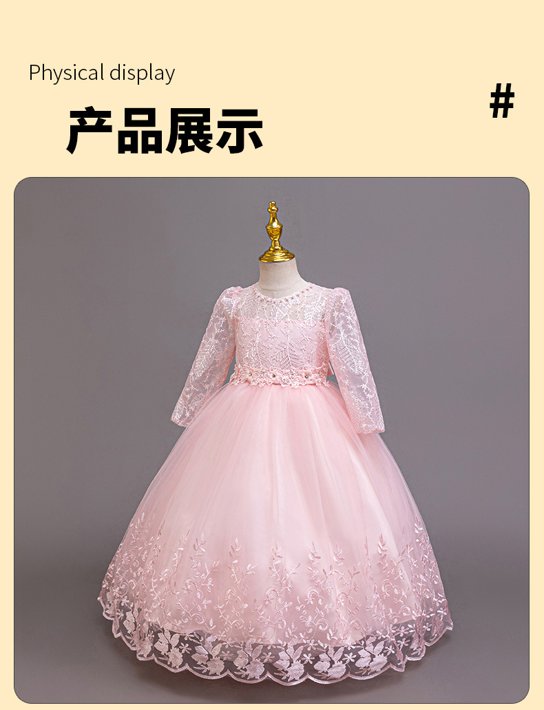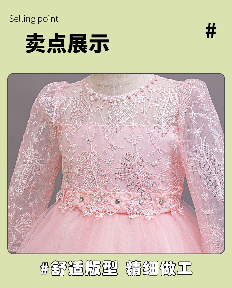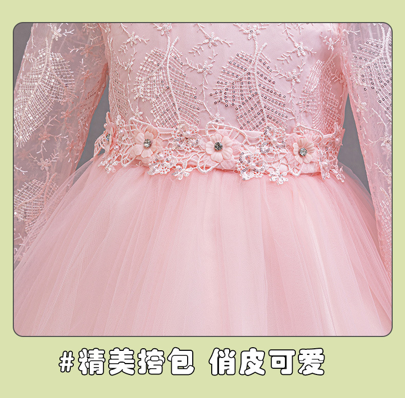 110码-120码-130码-140码-150码-160码   跨境可爱晚礼服女童连衣裙长袖网纱生日派对公主裙花朵儿童礼服裙