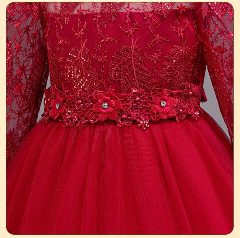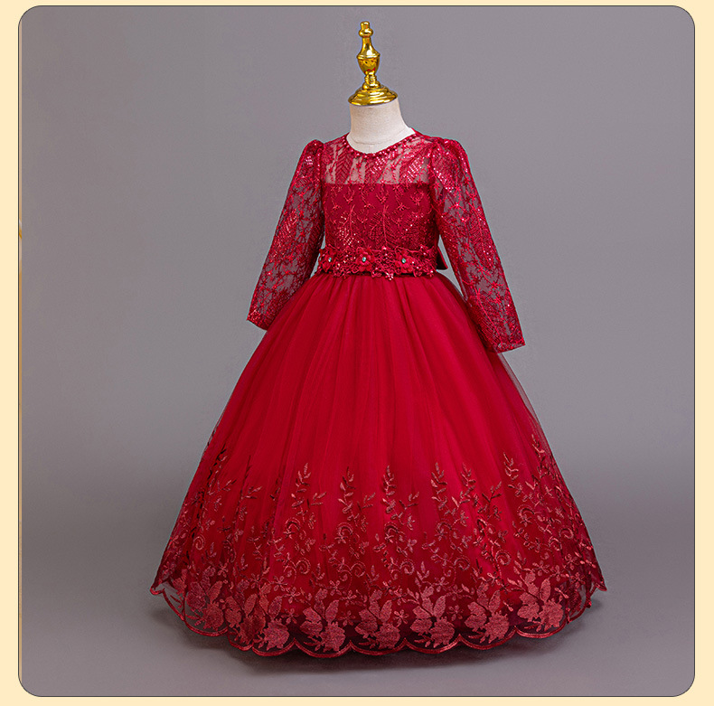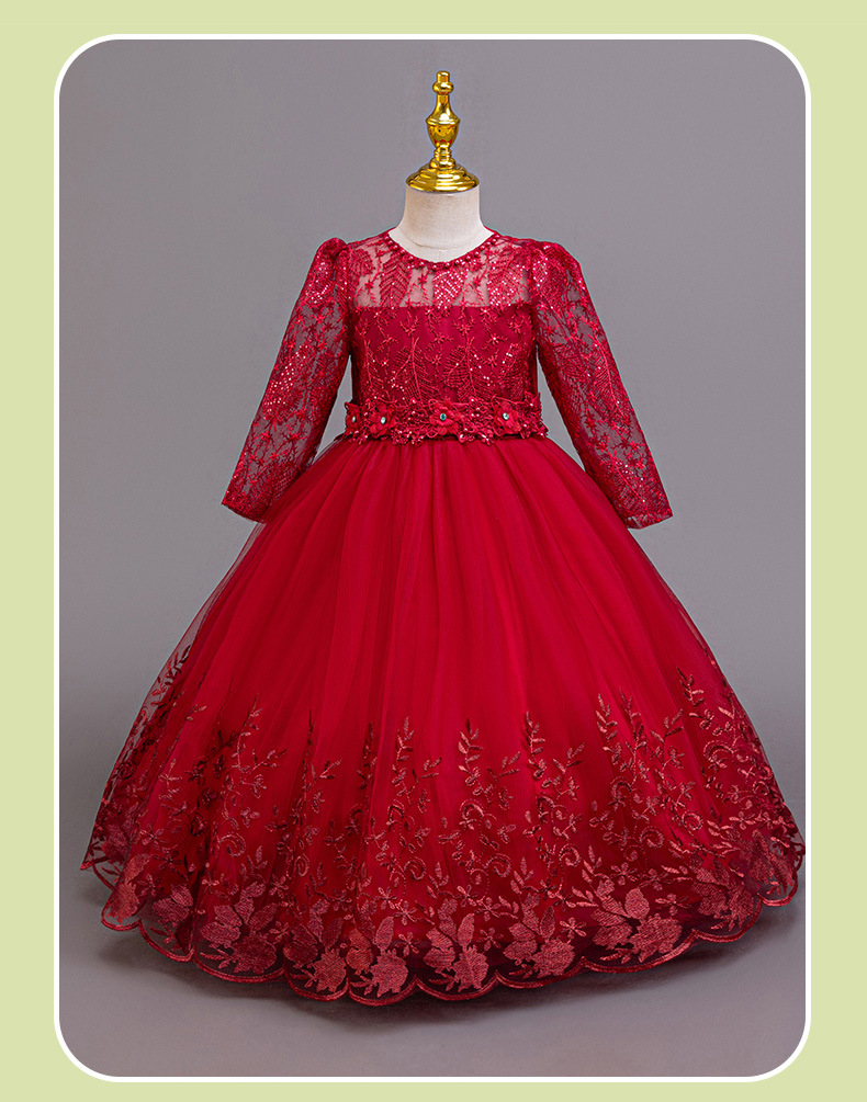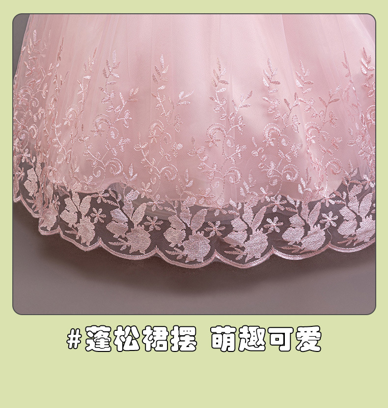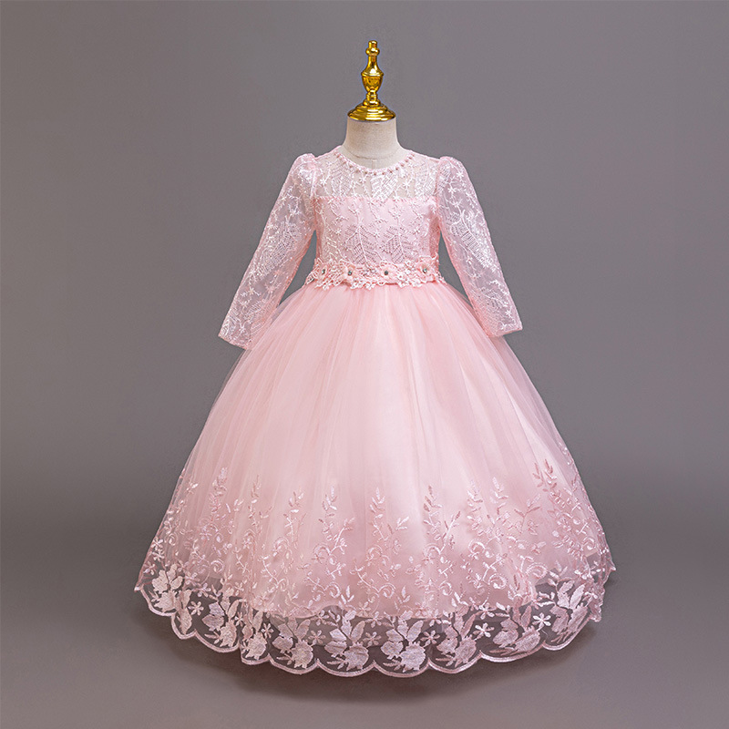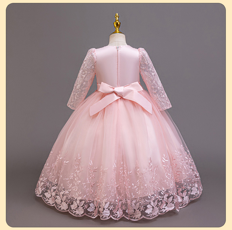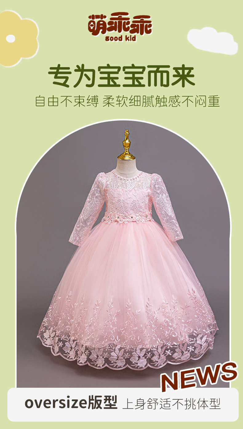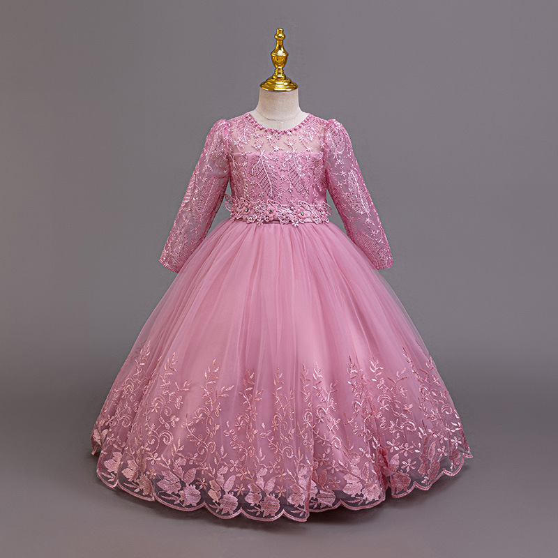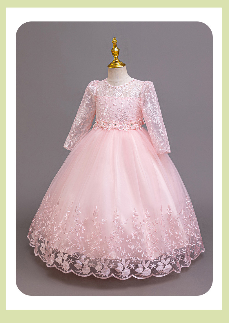 110码-120码-130码-140码-150码-160码   跨境可爱晚礼服女童连衣裙长袖网纱生日派对公主裙花朵儿童礼服裙