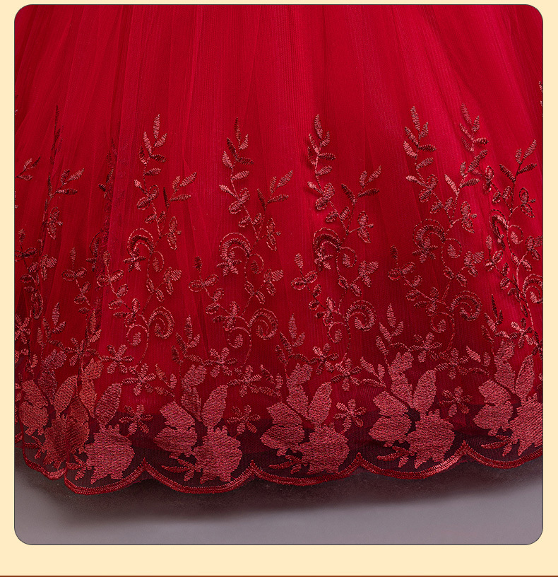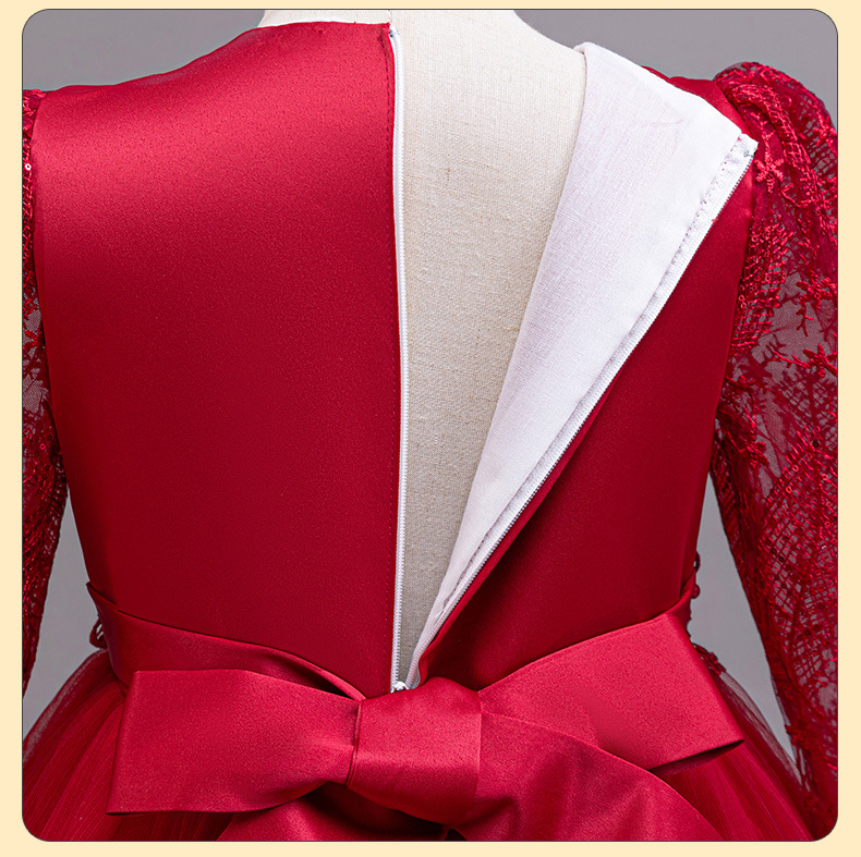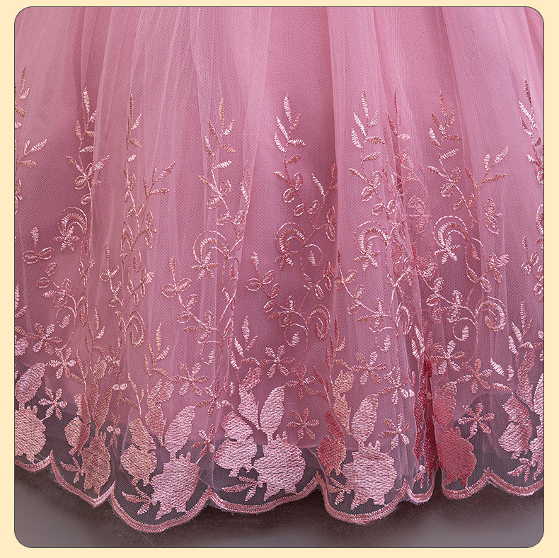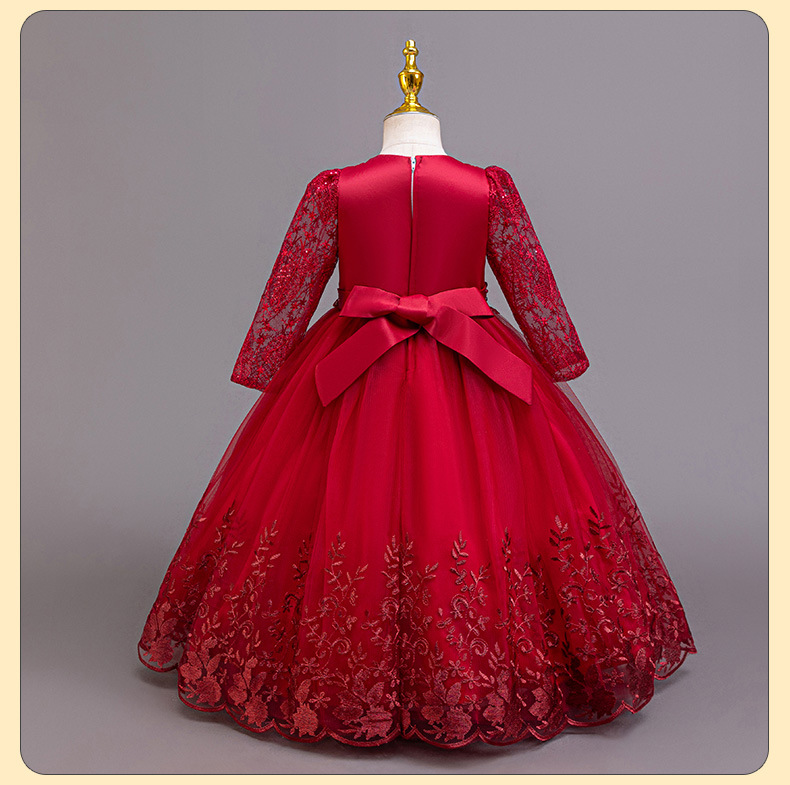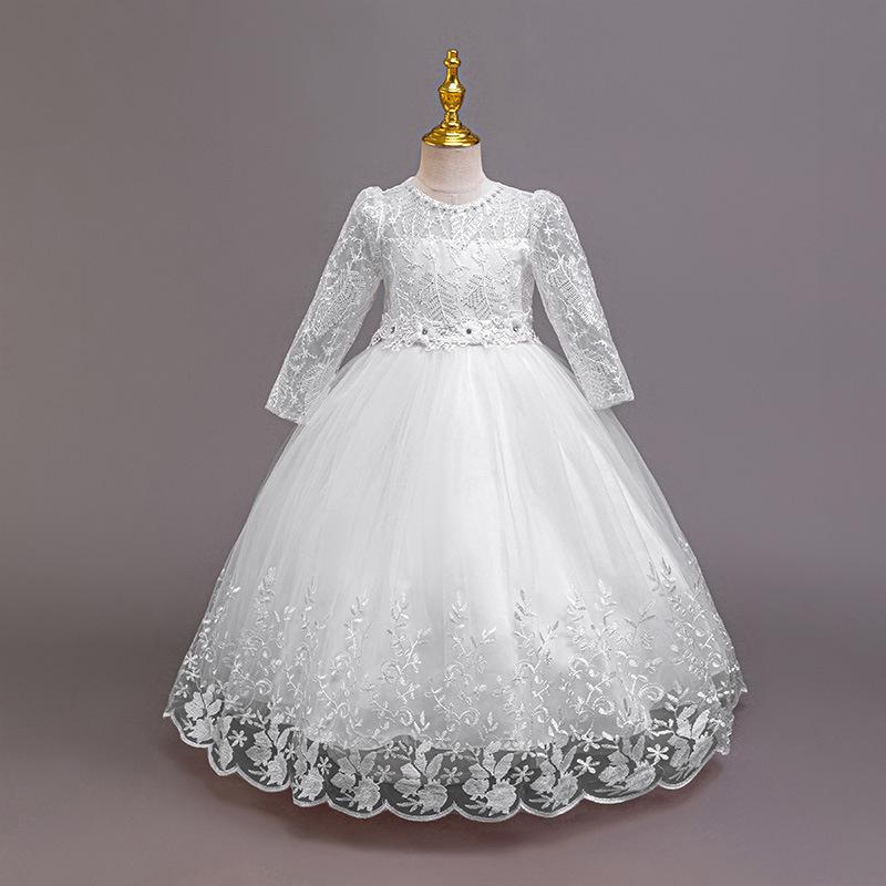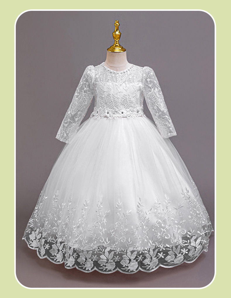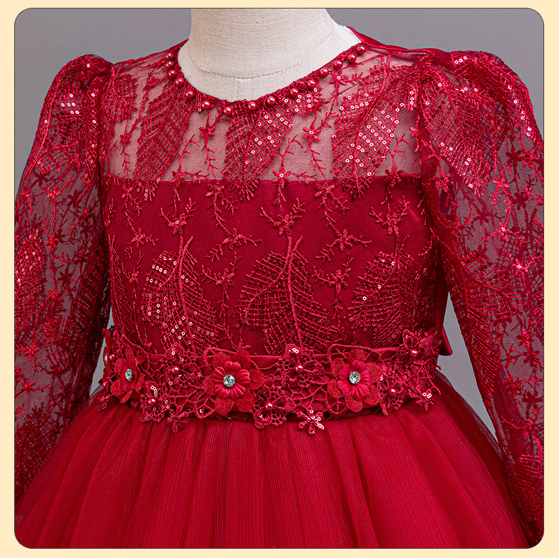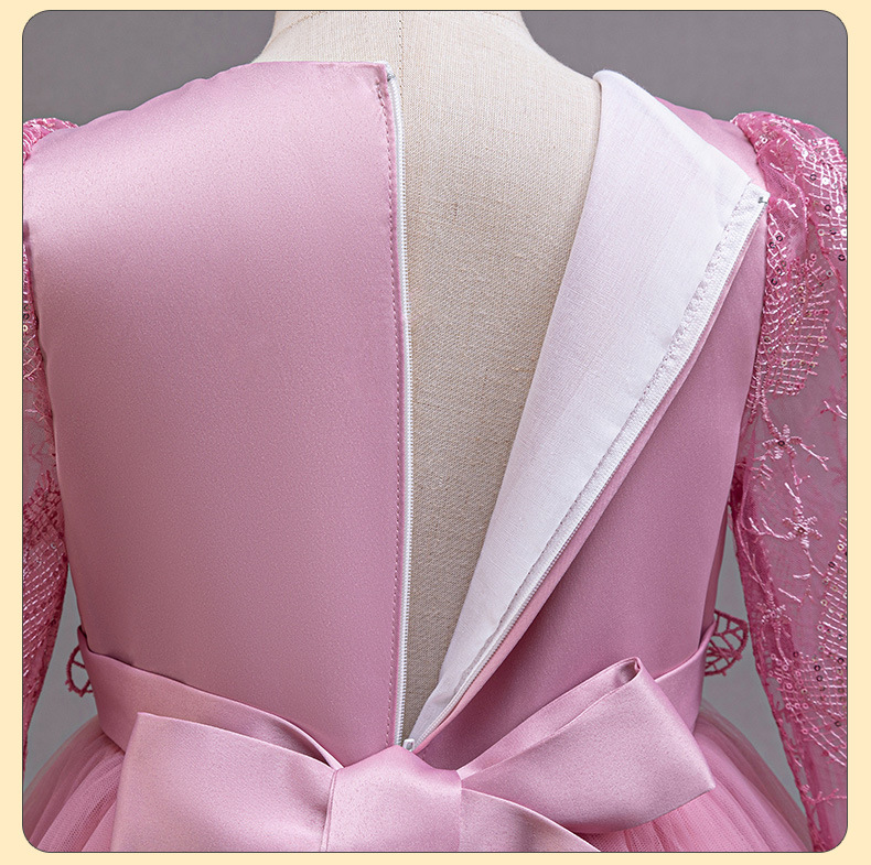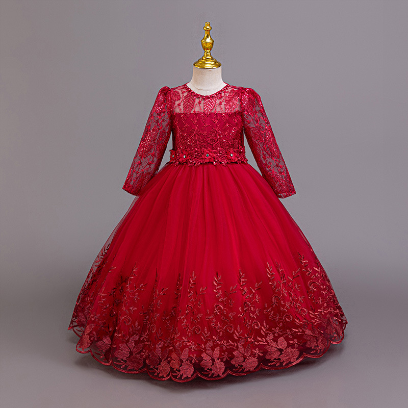 110码-120码-130码-140码-150码-160码   跨境可爱晚礼服女童连衣裙长袖网纱生日派对公主裙花朵儿童礼服裙
