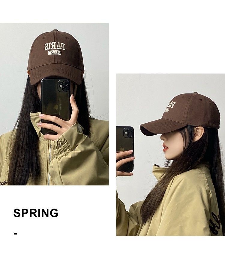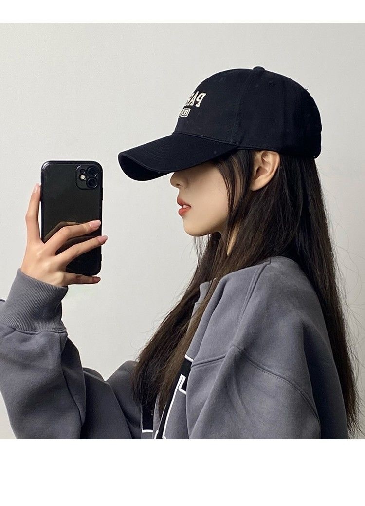봄 여름 모자 여성 여름 인터넷 연예인 스트리트 패션 브랜드 문자 자수 야구 모자 남성 커플 둥근 얼굴을위한 피크 캡스토어 가기