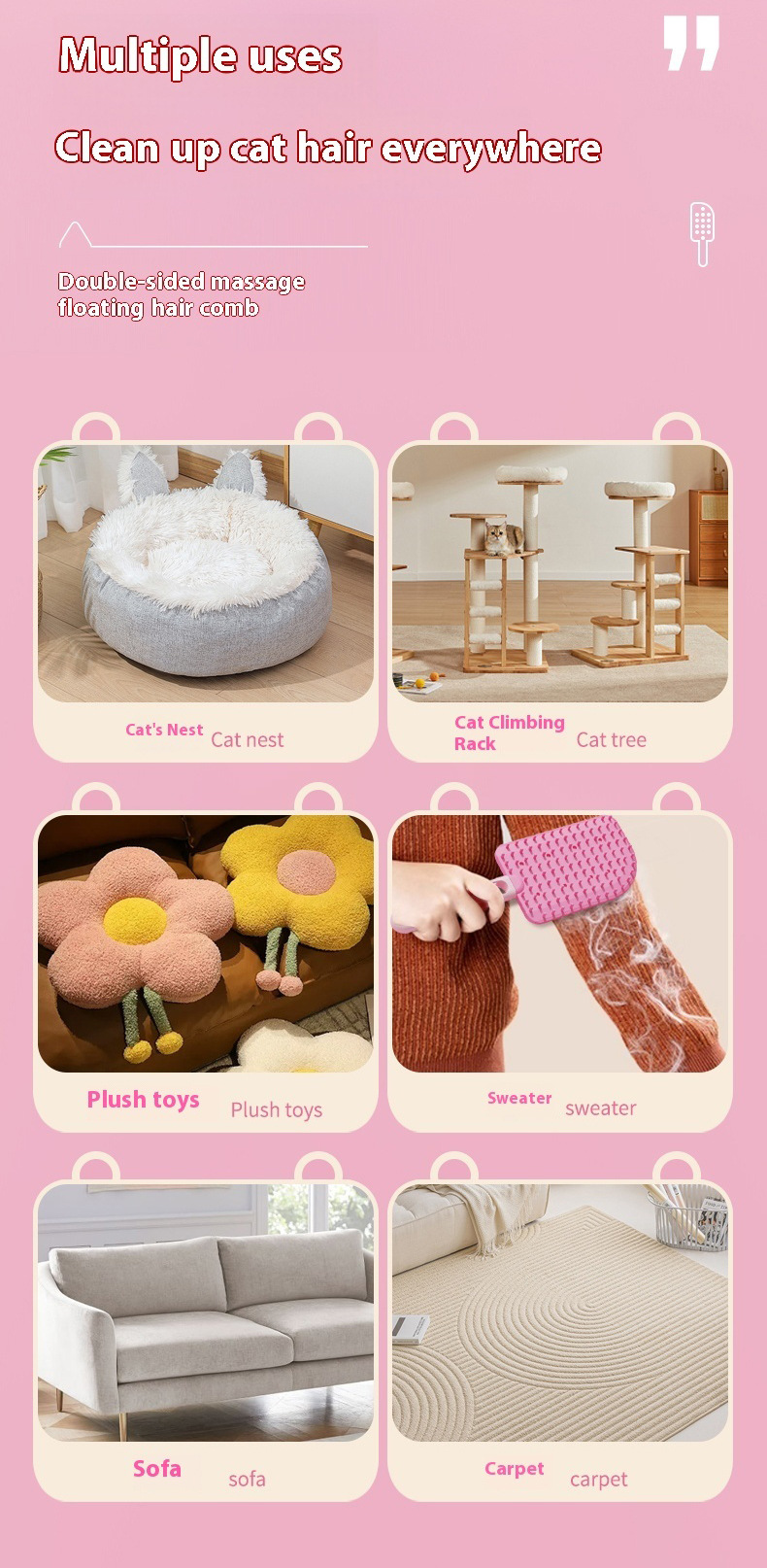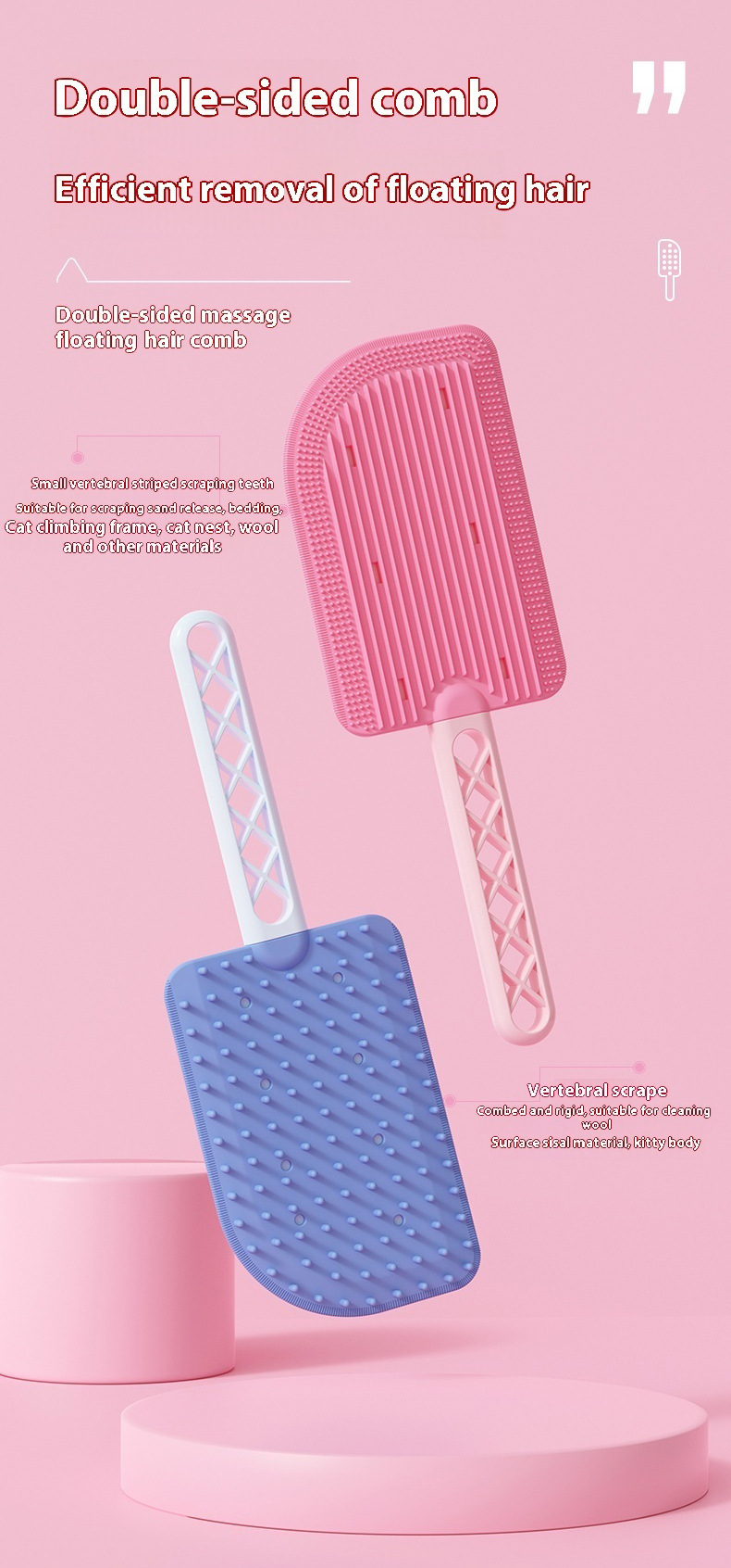 애완동물 아이스크림 마사지 빗, 고양이 플로팅 헤어 빗, 애완동물 브러시 및 면도기, 양면 걸이형 애완동물 빗, 범용스토어 가기