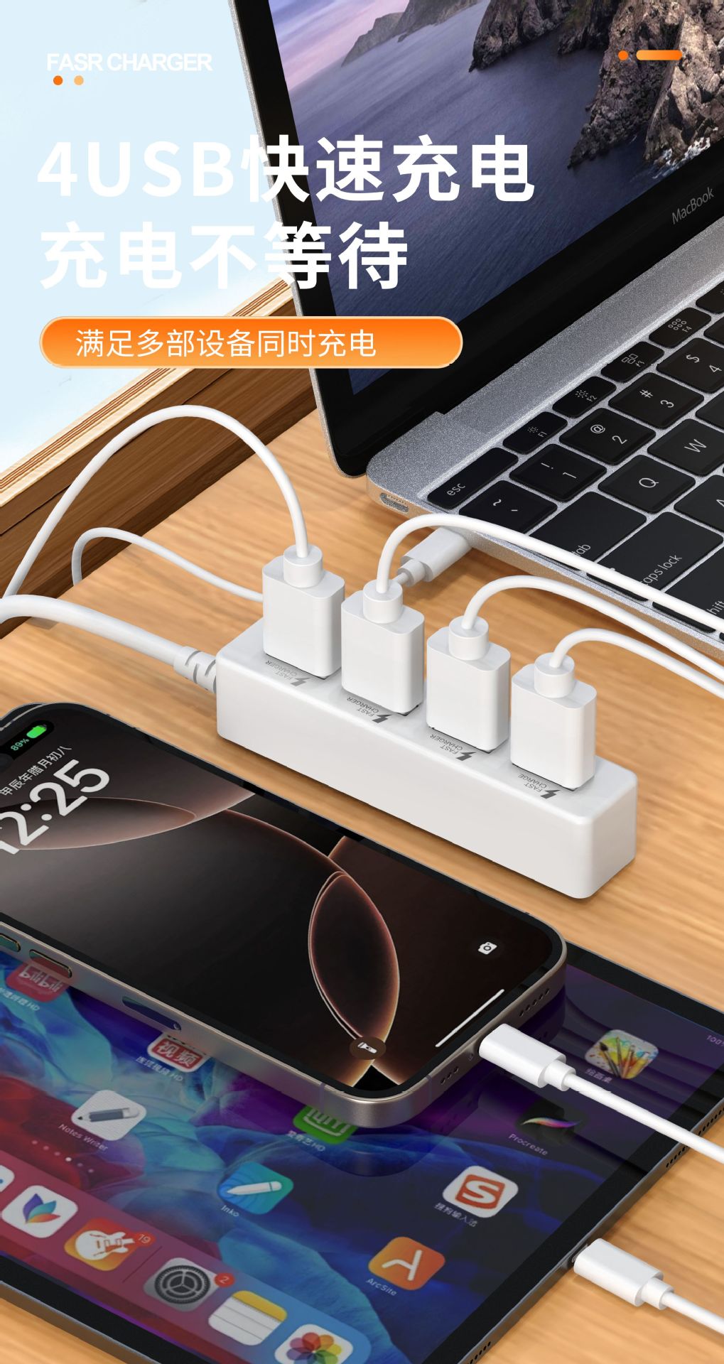 멀티 포트 소켓 4USB 연장 케이블 확장 도크 PD 고속 완전한 케이블 확장기 1-멀티 포트 컴퓨터 및 휴대폰스토어 가기