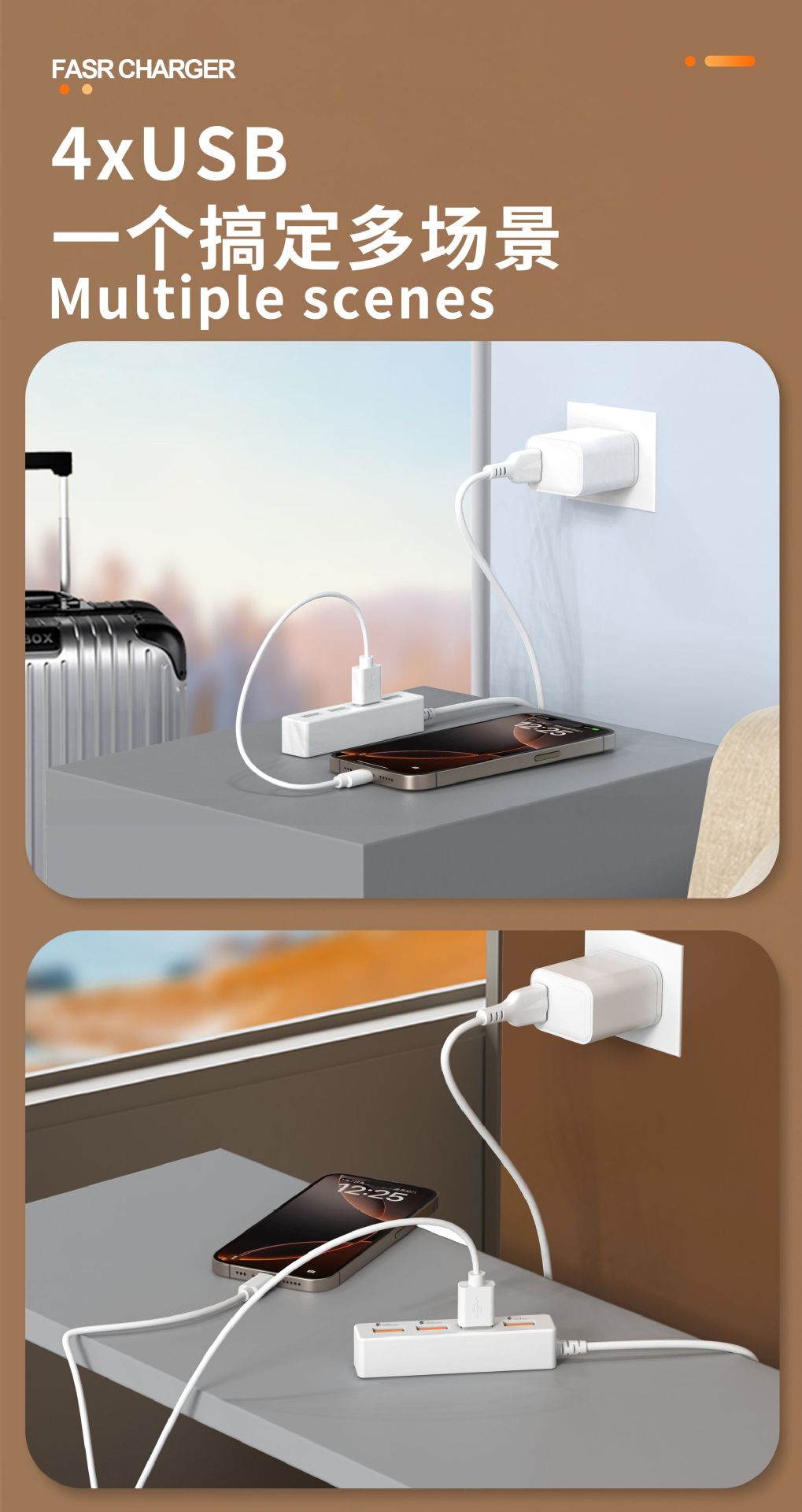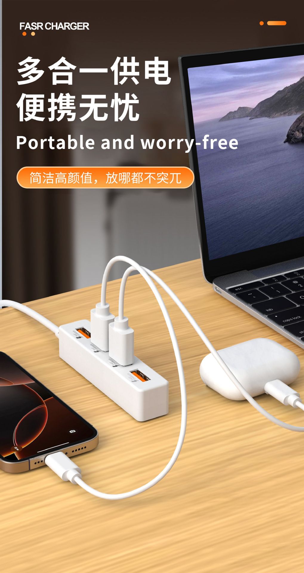 멀티 포트 소켓 4USB 연장 케이블 확장 도크 PD 고속 완전한 케이블 확장기 1-멀티 포트 컴퓨터 및 휴대폰
