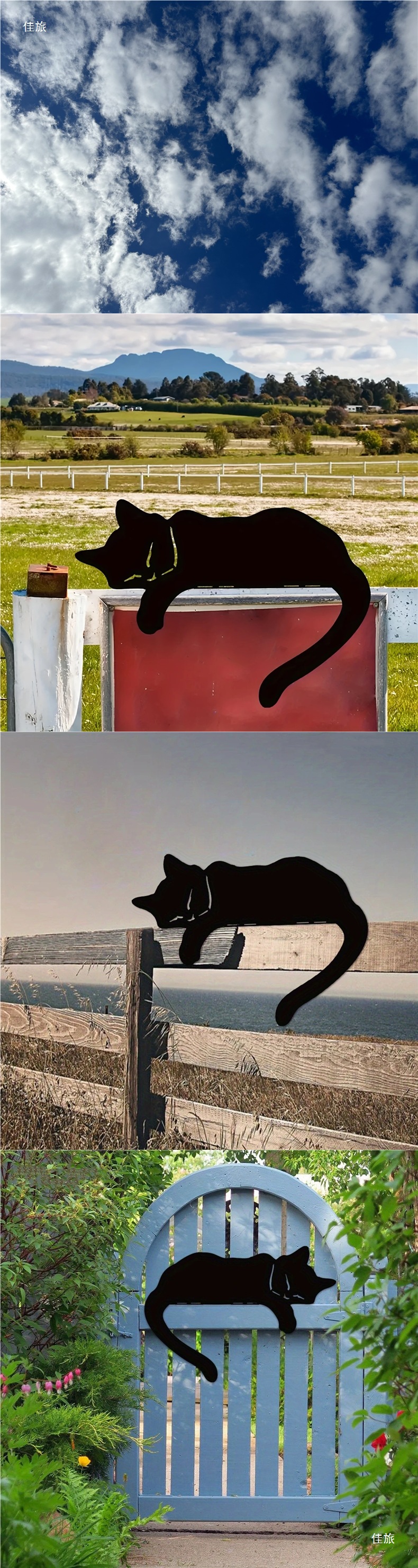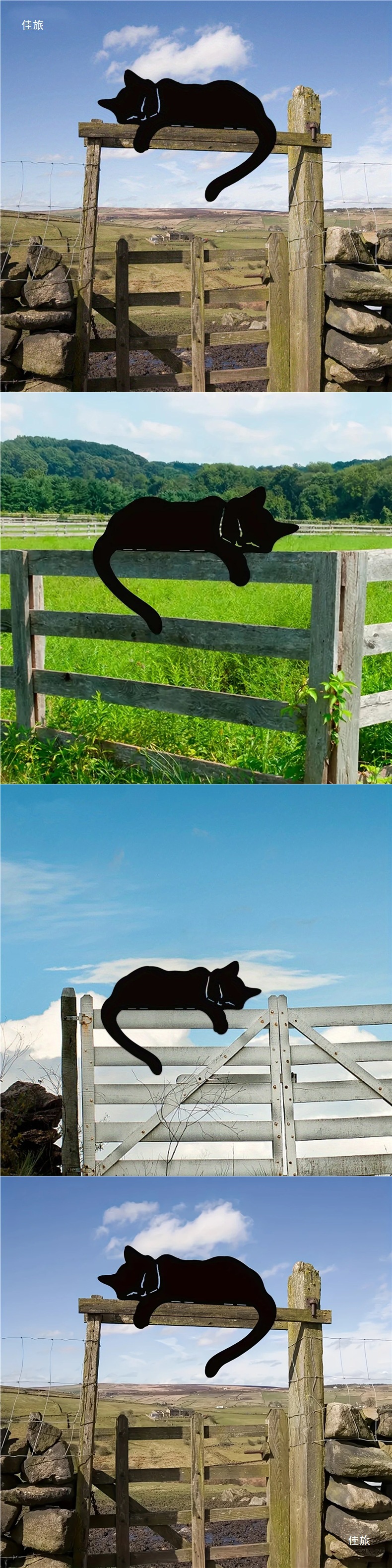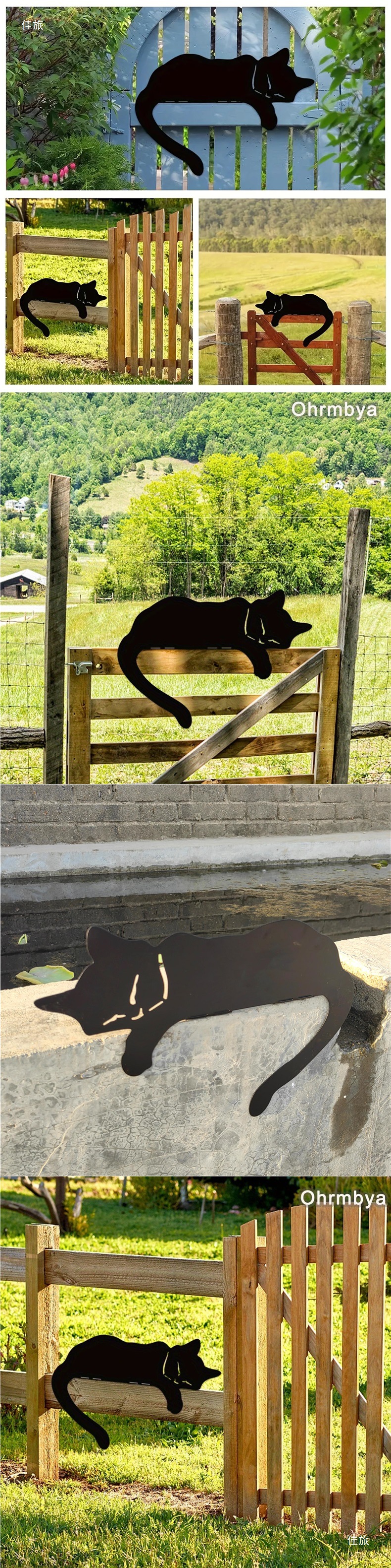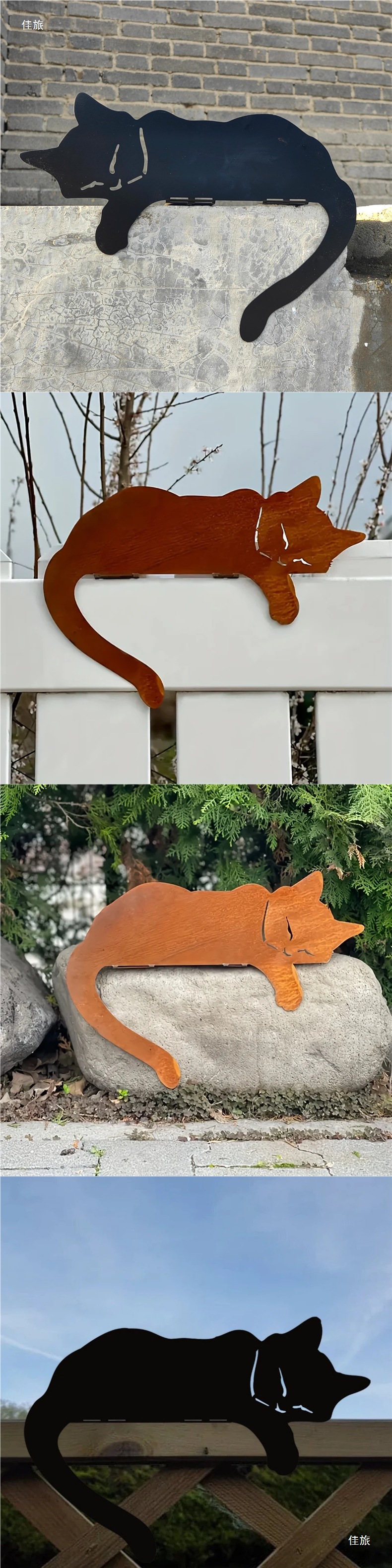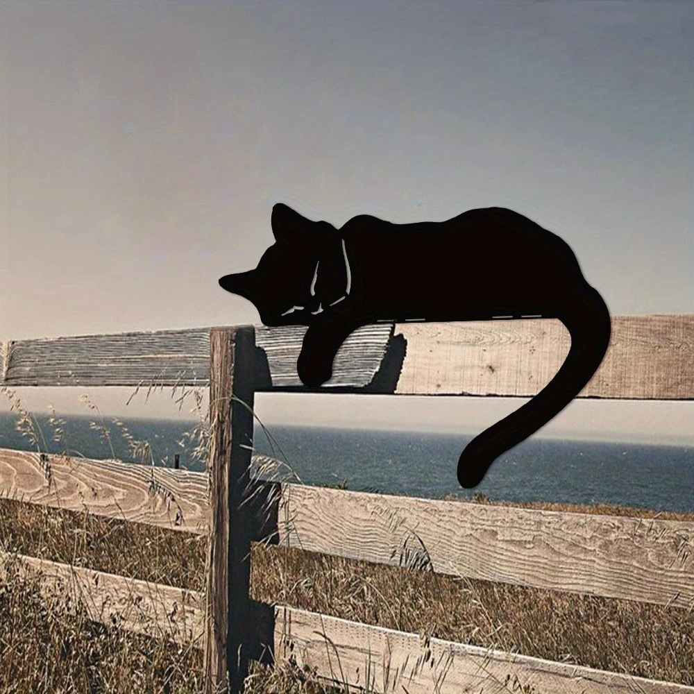 부드러운 검은 고양이 동상 야외 정원 예술 녹슨 철 고양이 실루엣 울타리 탑 장식품 울타리 장식스토어 가기