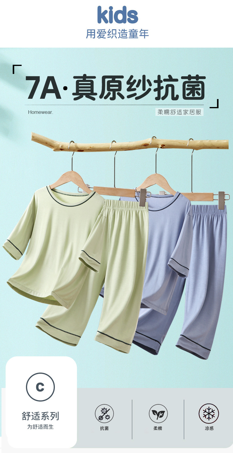 여아 잠옷 모달 여름 아동 7부 소매 가정복 세트 소년 및 청소년 에어컨 의류 얇고 투명스토어 가기