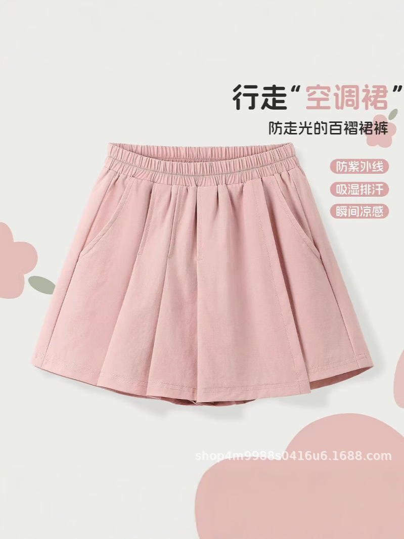 여자 주름 치마 바지 공주 스타일 2025 새로운 큰 어린이 여름 스포츠 바지 어린이 통기성 노출 방지 스커트스토어 가기