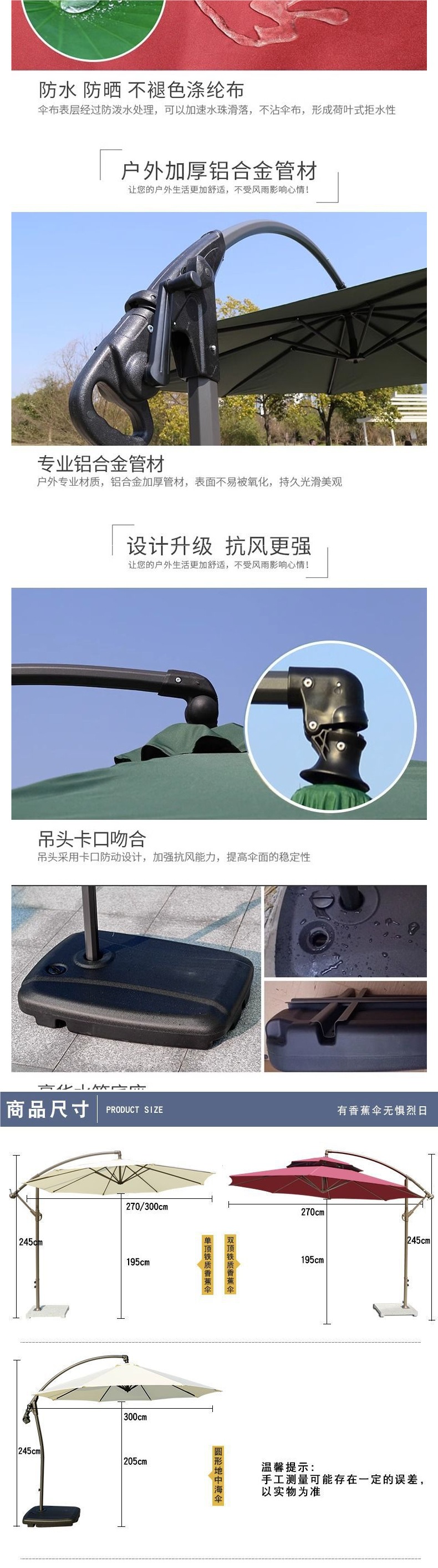 • 진한 녹색 알루미늄 기둥 푸시 바나나 우산 무료 60kg 물 탱크