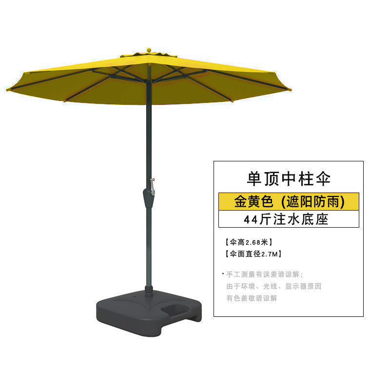 • 탑이 1개인 황백색 중앙 기둥 우산에는 물탱크 22kg개가 포함되어 있습니다.