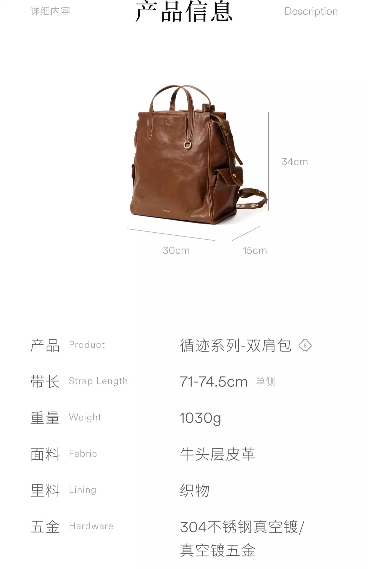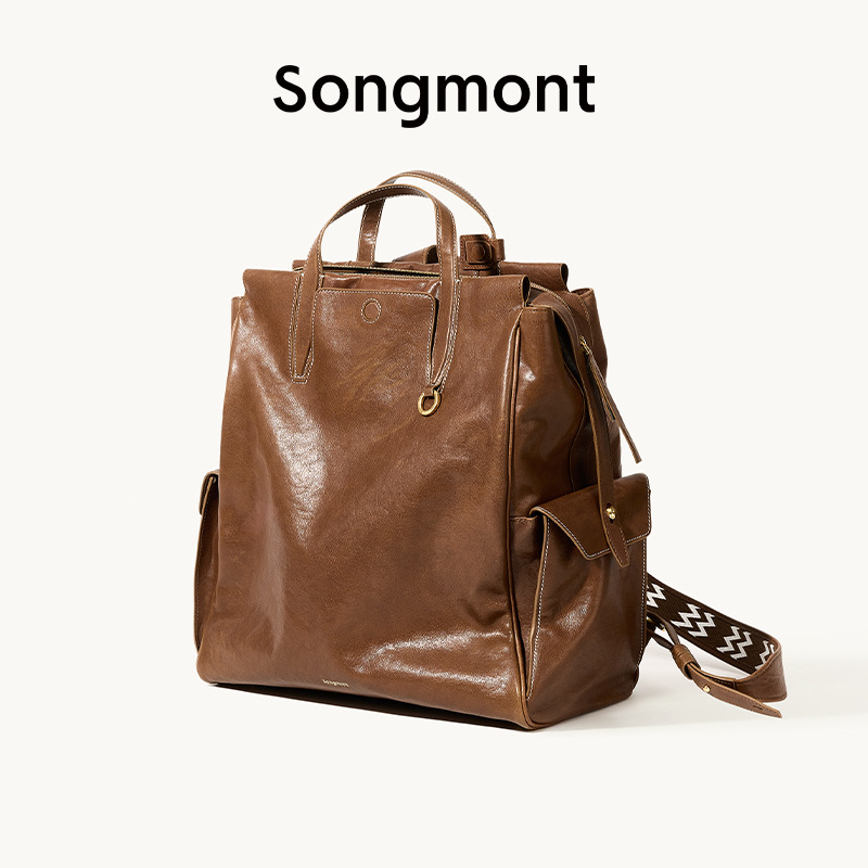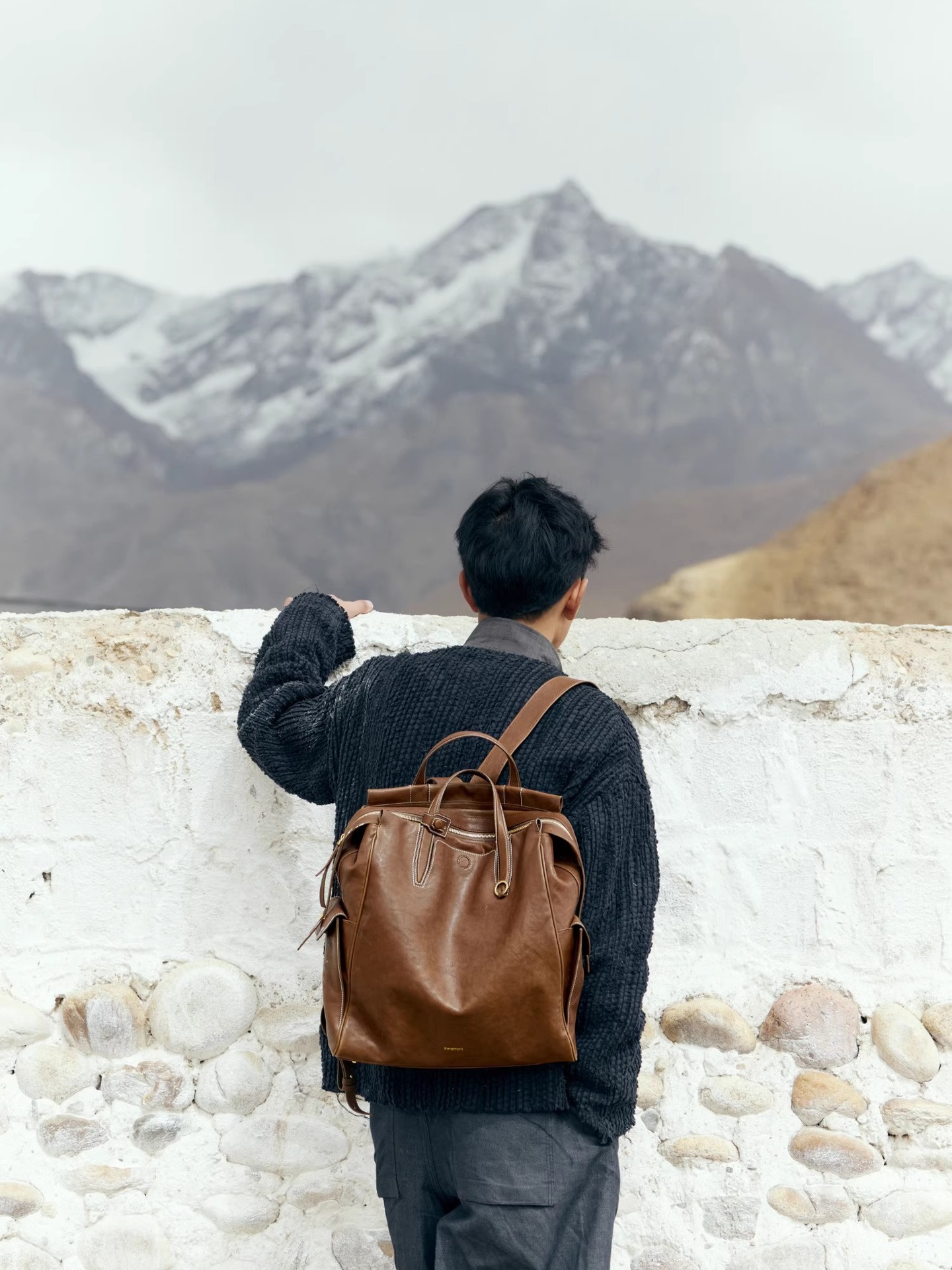 Song Yamashita Trace 시리즈 대형 배낭 젠더리스 레트로 베지터블 태닝 가죽 16inch 컴퓨터 가방