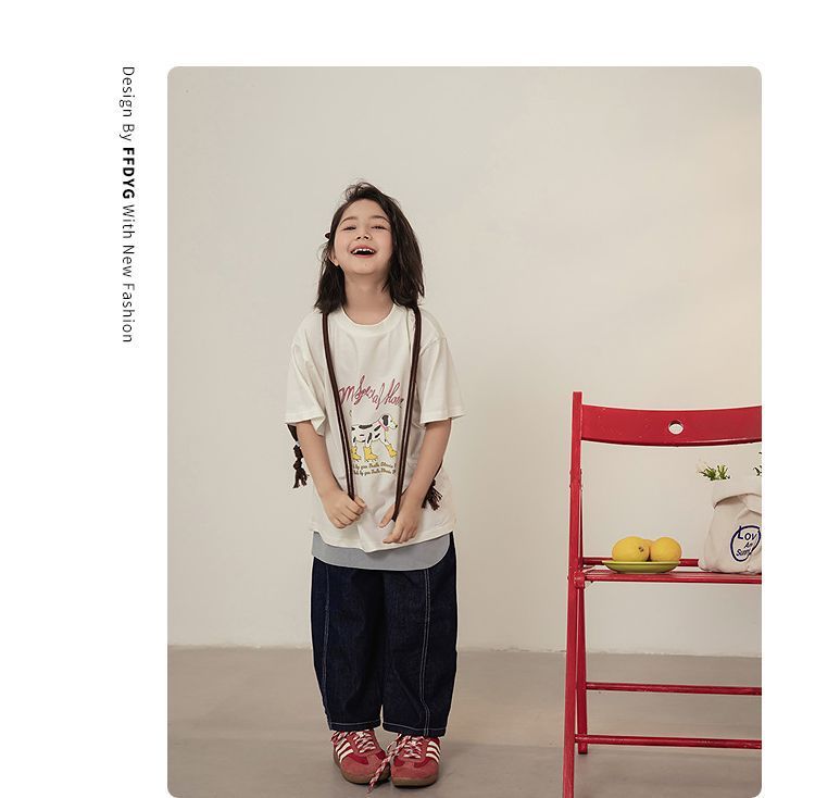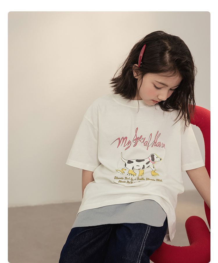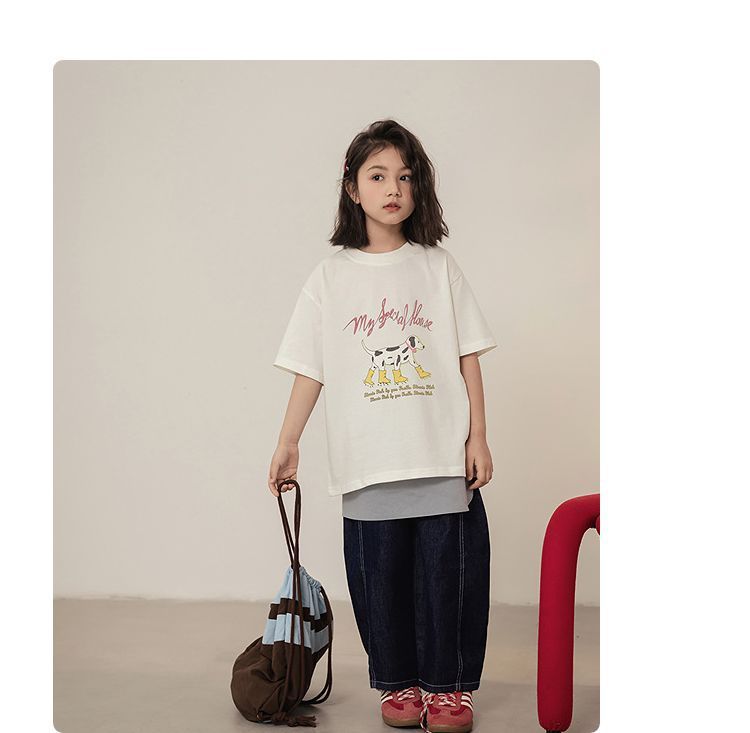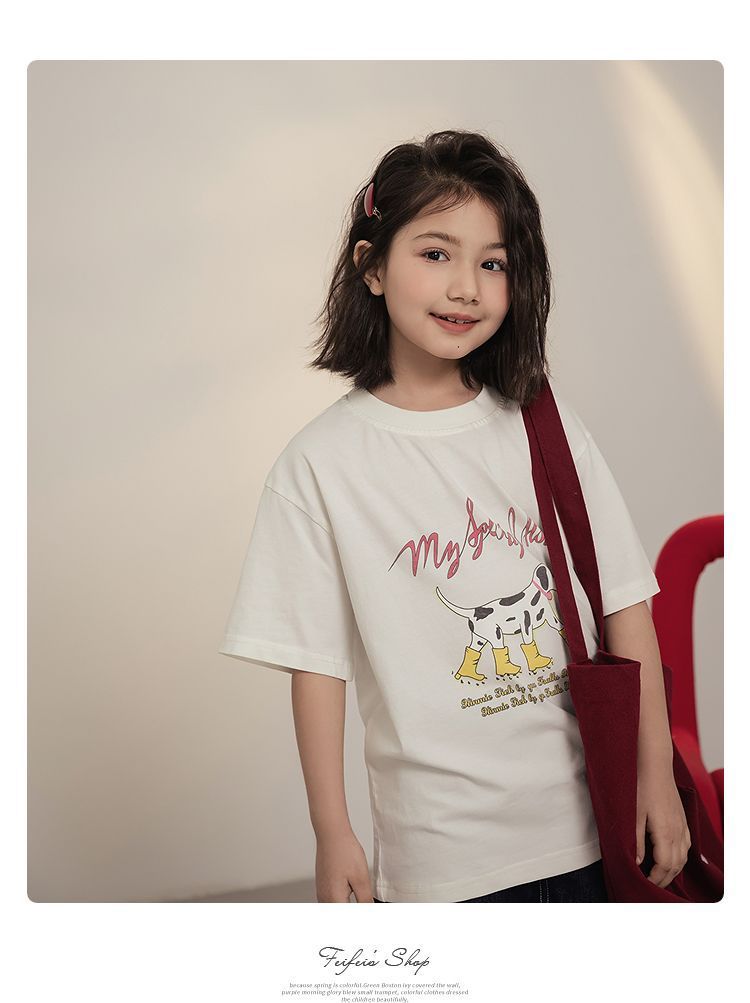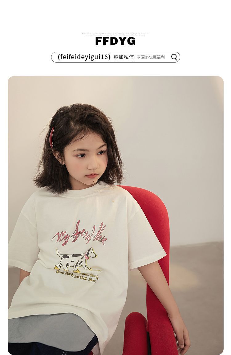 순면 여아 반팔 아동복 여름 흰색 티셔츠 2026 신상 중대형 아동 여름 여아 패셔너블 상의 트렌디스토어 가기