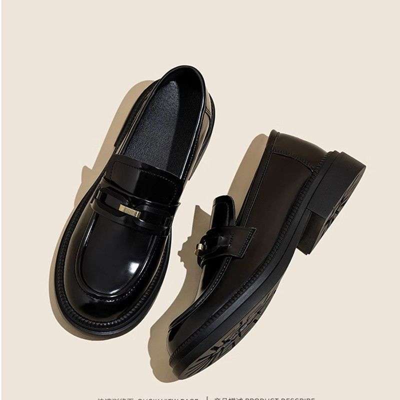 블랙 가죽 신발 35-42 사이즈 여성용 작은 가죽 신발 2025 가을 새로운 다목적 영국 스타일 로퍼 대학 스타일 신발스토어 가기