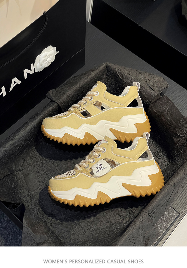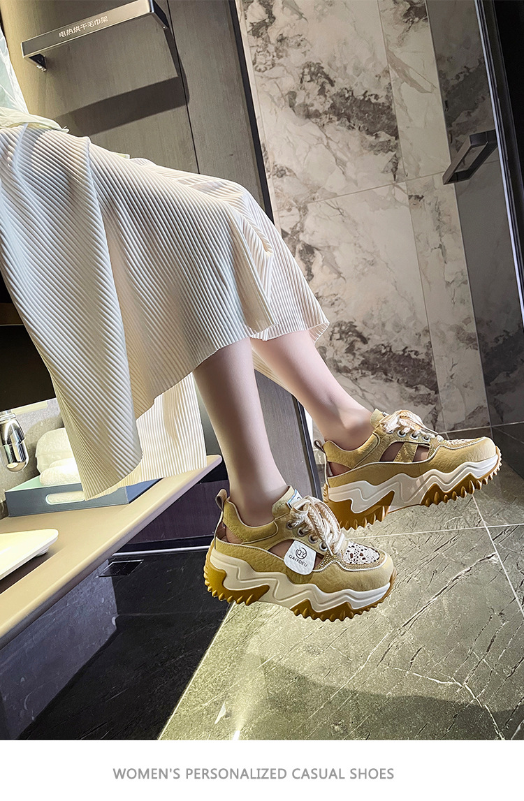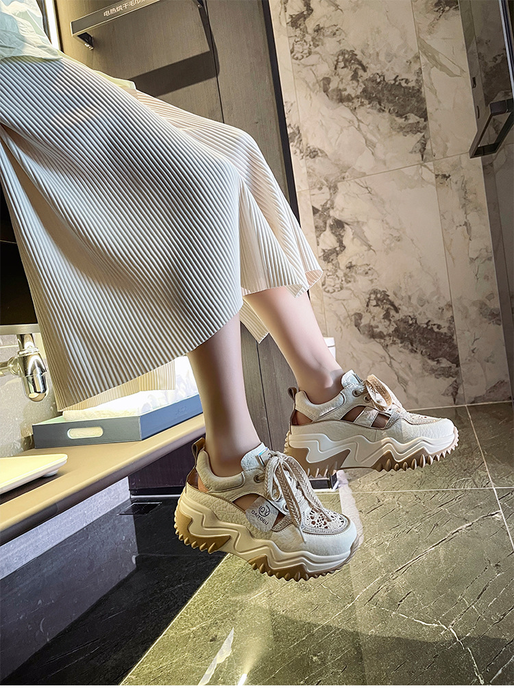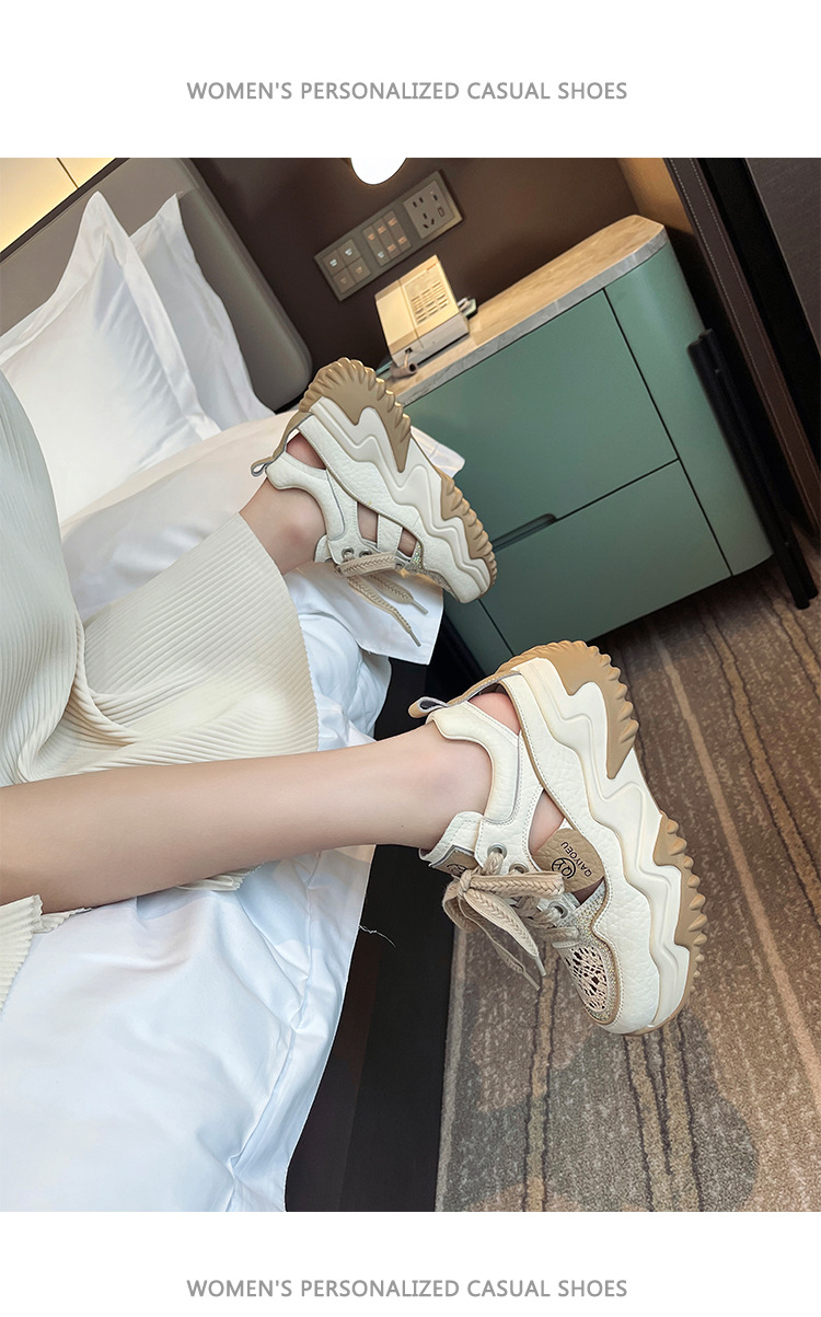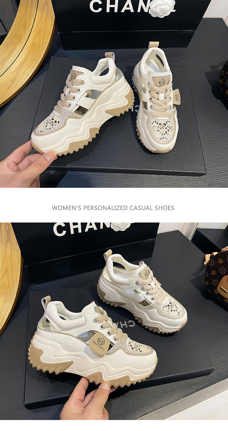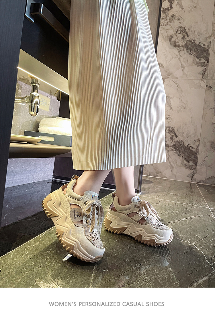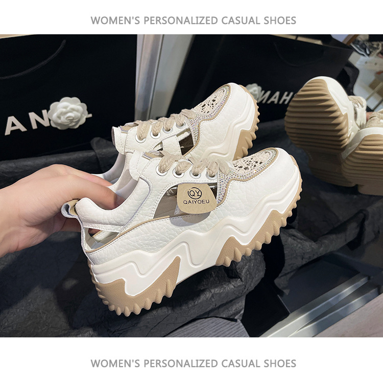 중공 토레 신발 여성 구멍 두꺼운 밑창 2025 새로운 여름 고층 플랫폼 캐주얼 올 매치 스포츠 화이트 신발스토어 가기