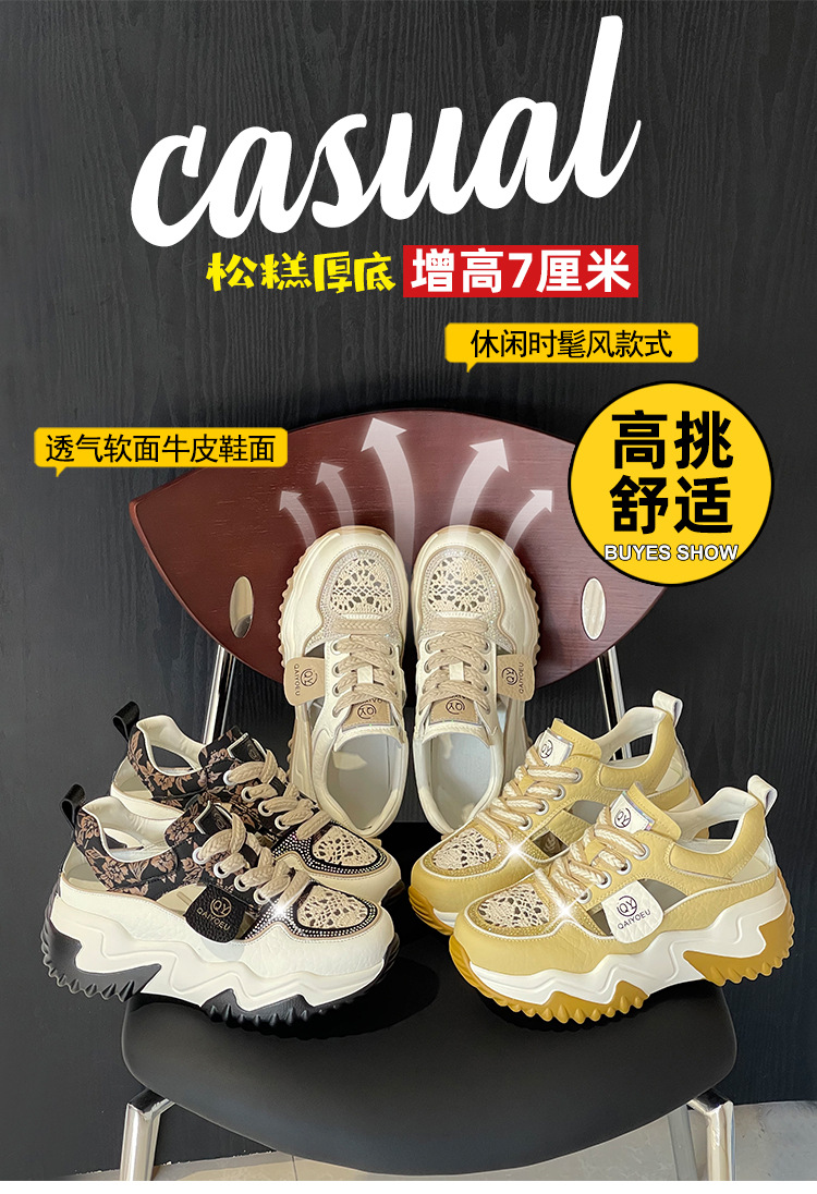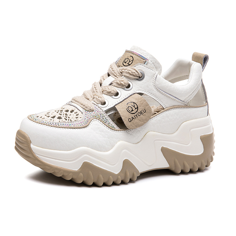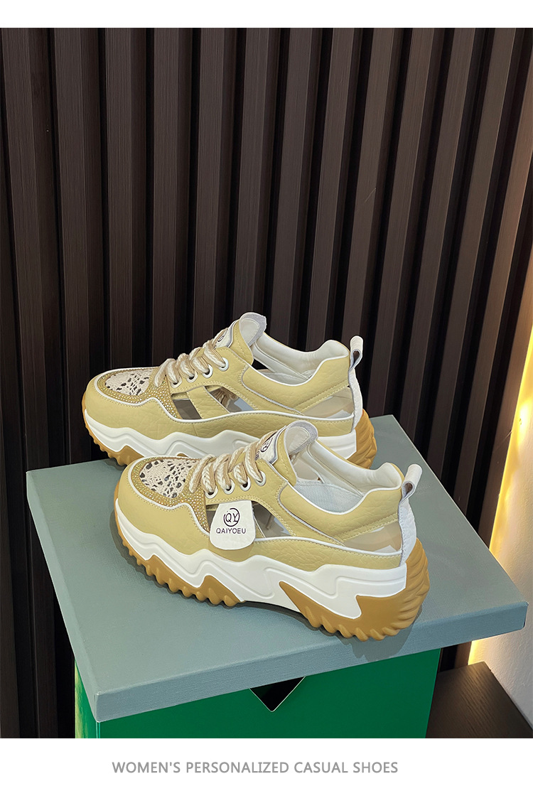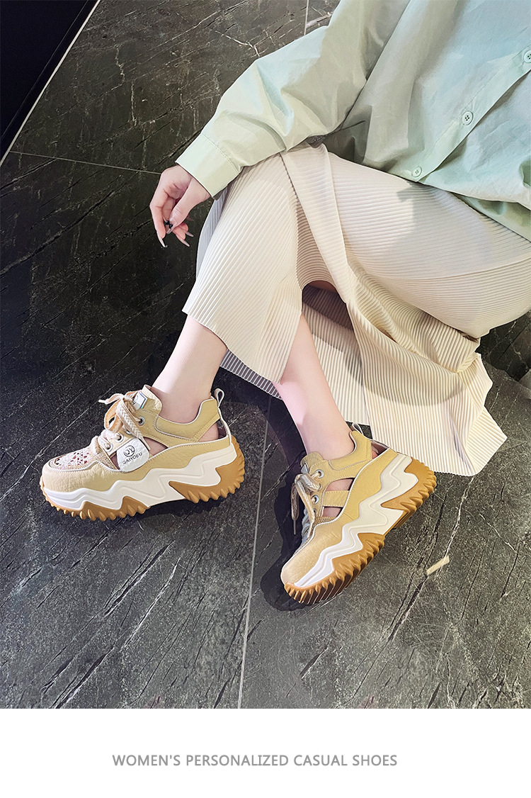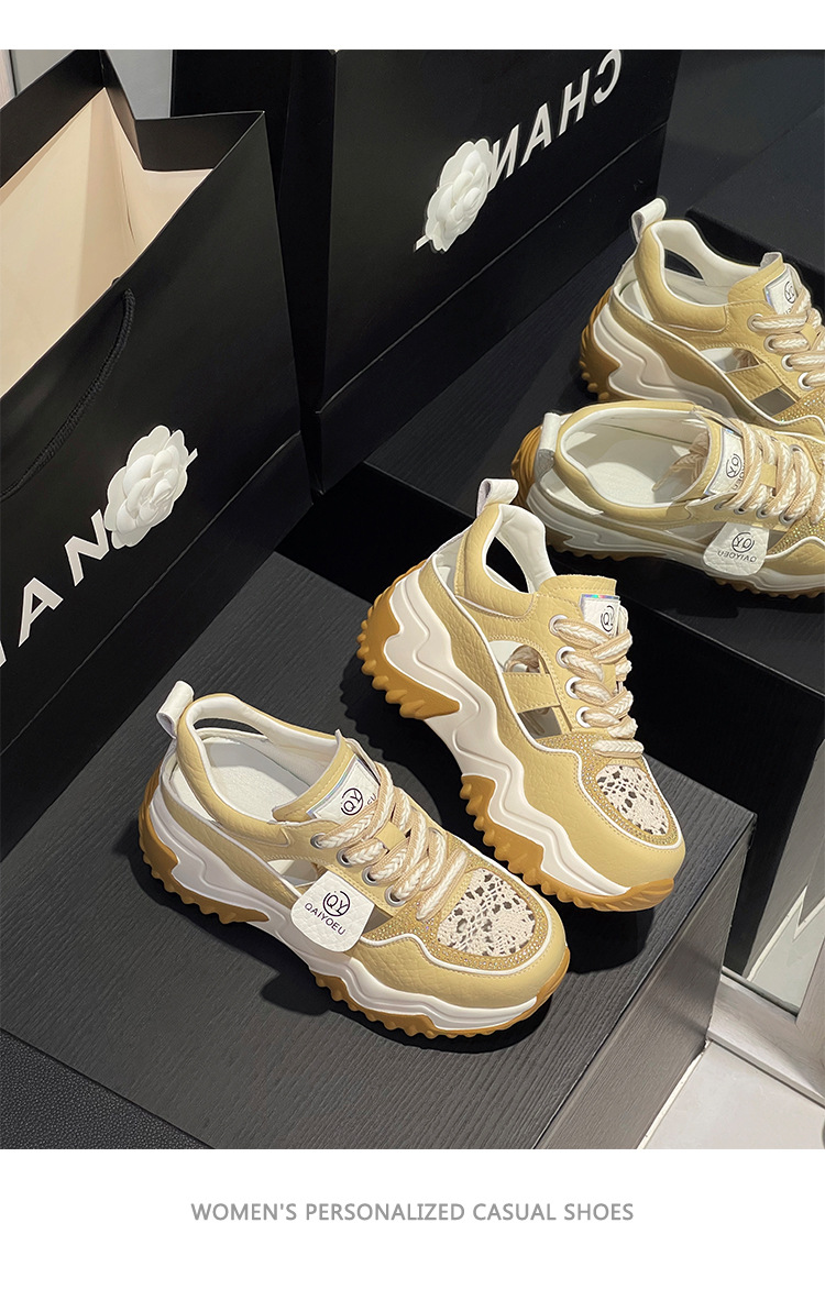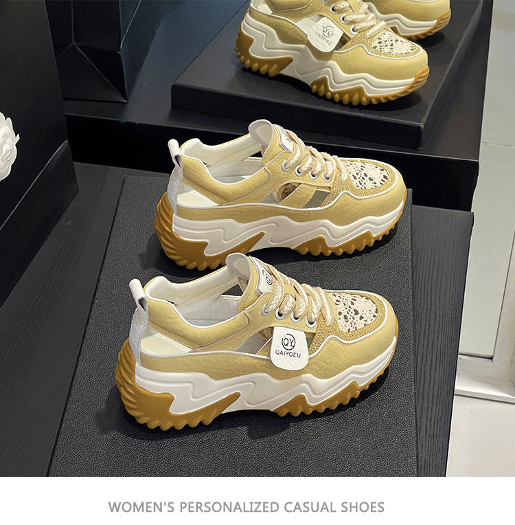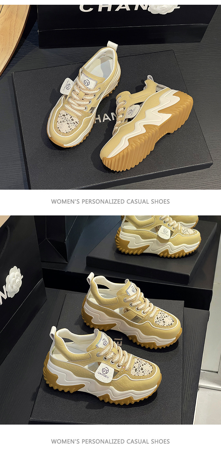 중공 토레 신발 여성 구멍 두꺼운 밑창 2025 새로운 여름 고층 플랫폼 캐주얼 올 매치 스포츠 화이트 신발스토어 가기