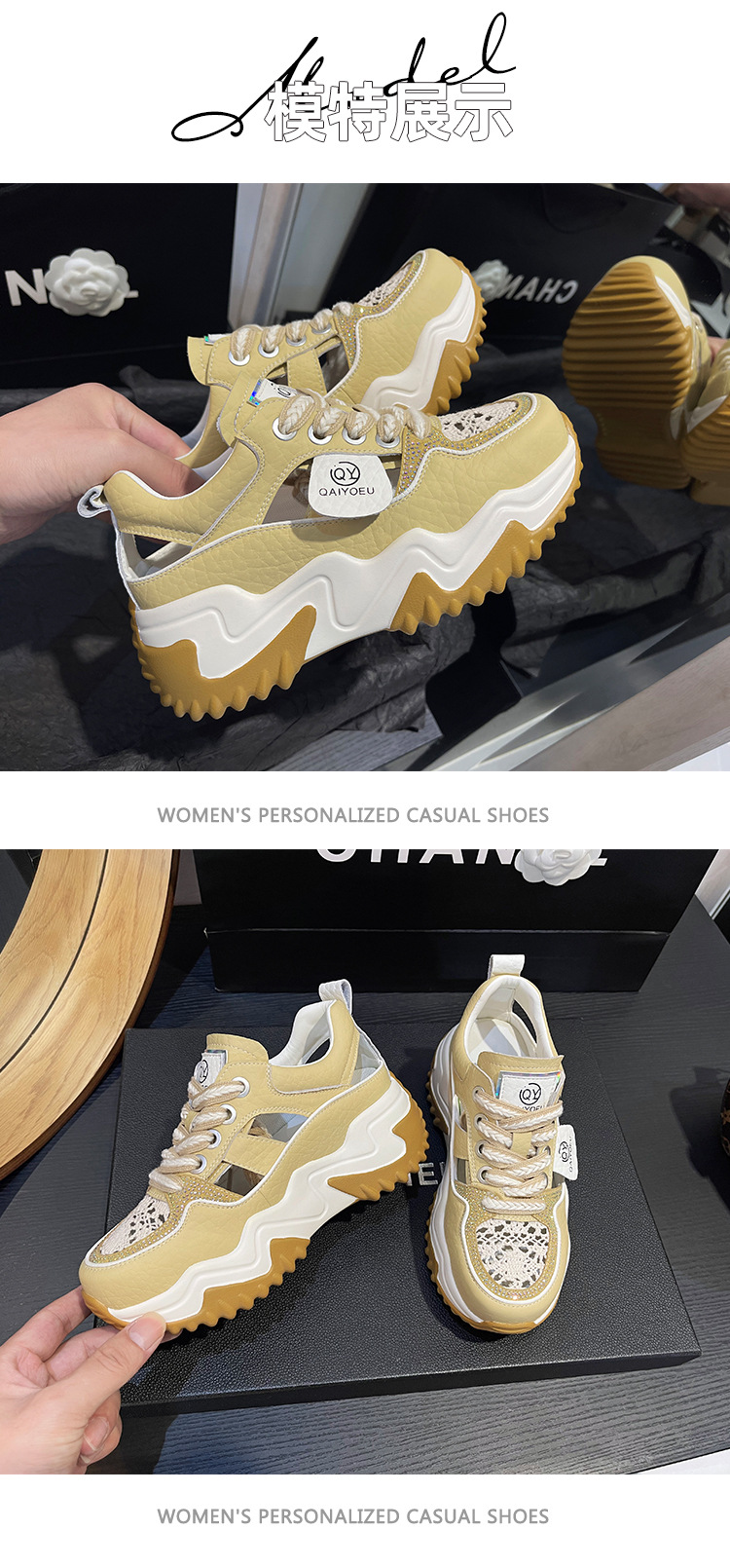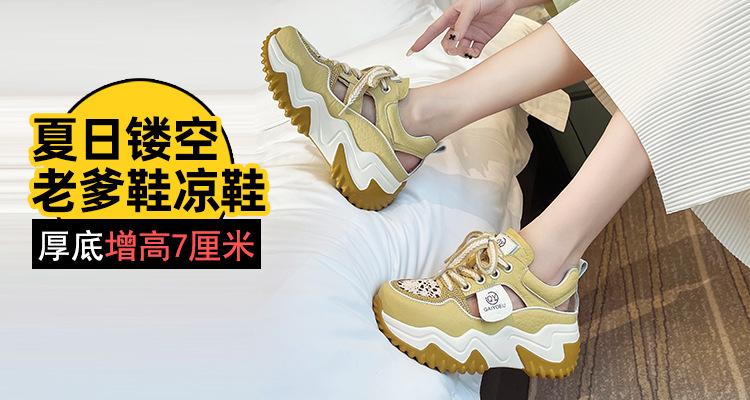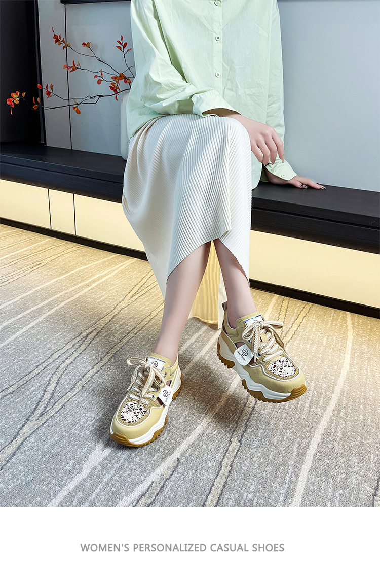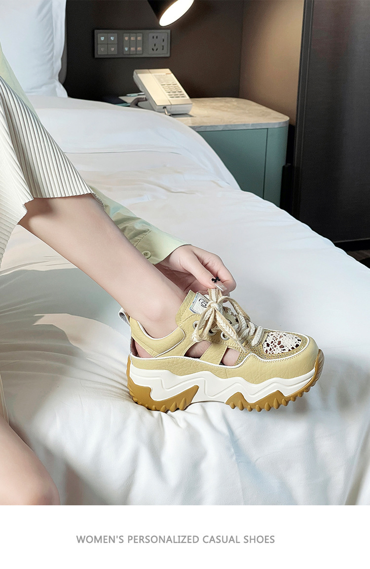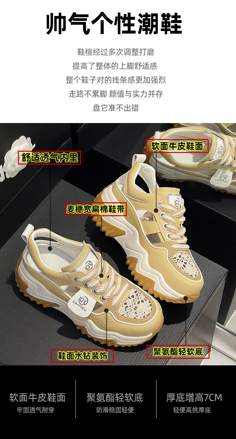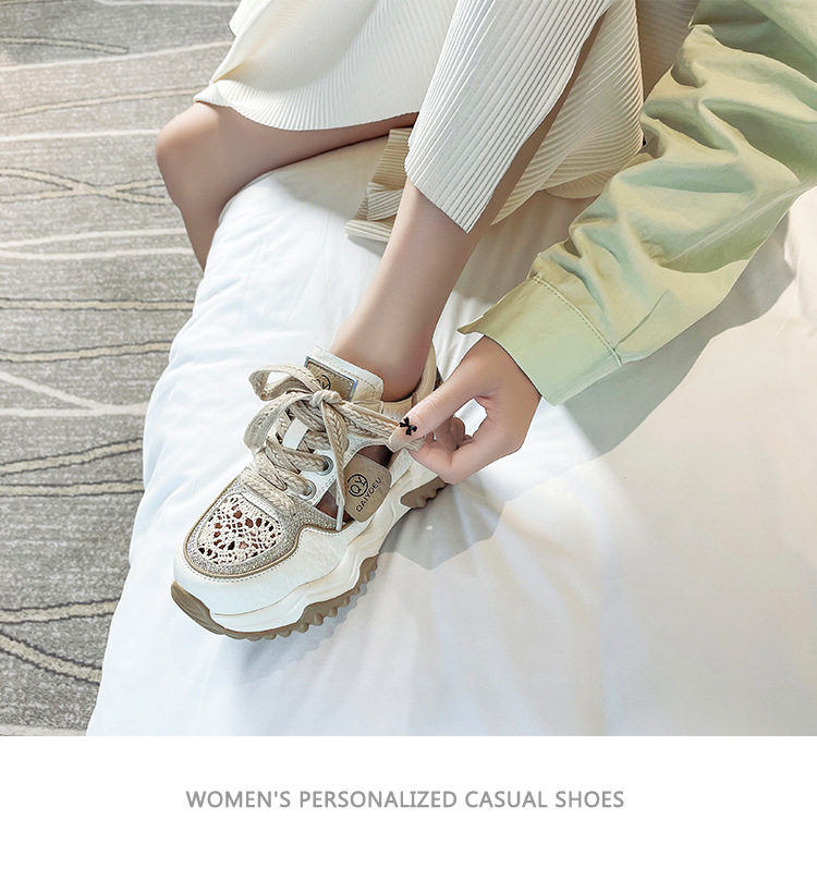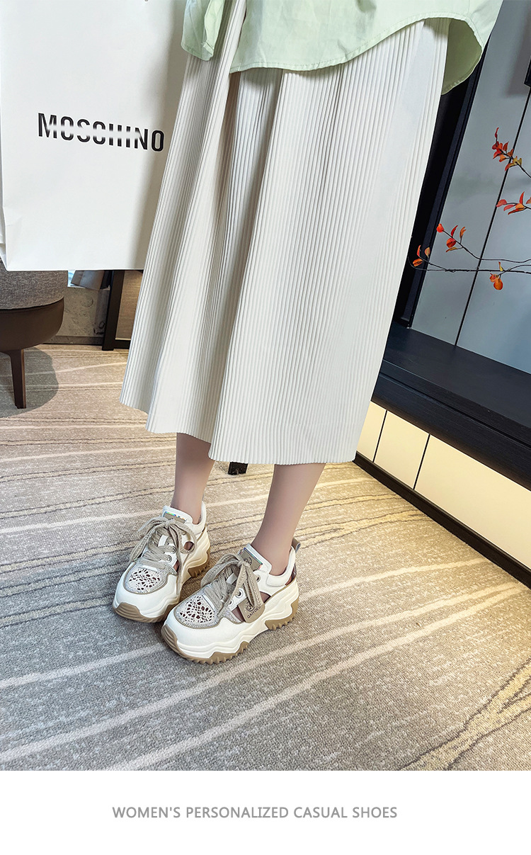 중공 토레 신발 여성 구멍 두꺼운 밑창 2025 새로운 여름 고층 플랫폼 캐주얼 올 매치 스포츠 화이트 신발스토어 가기