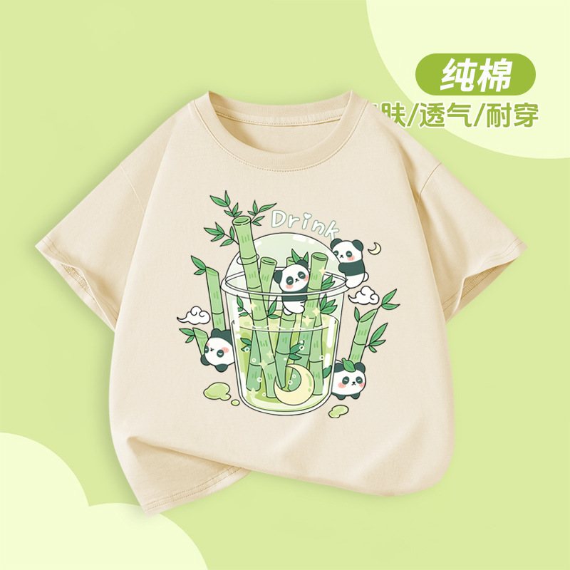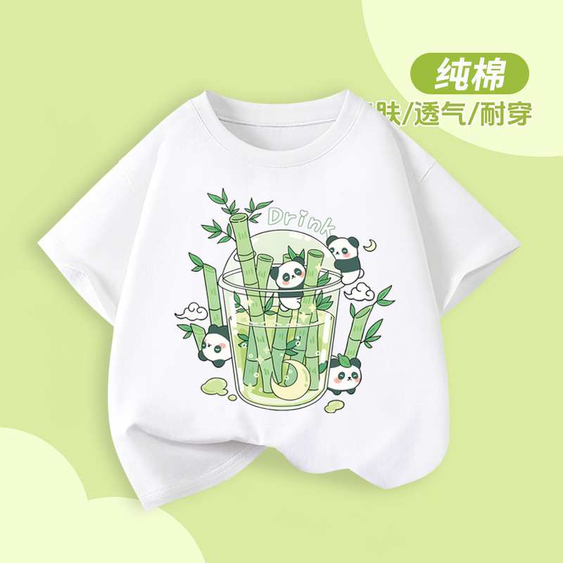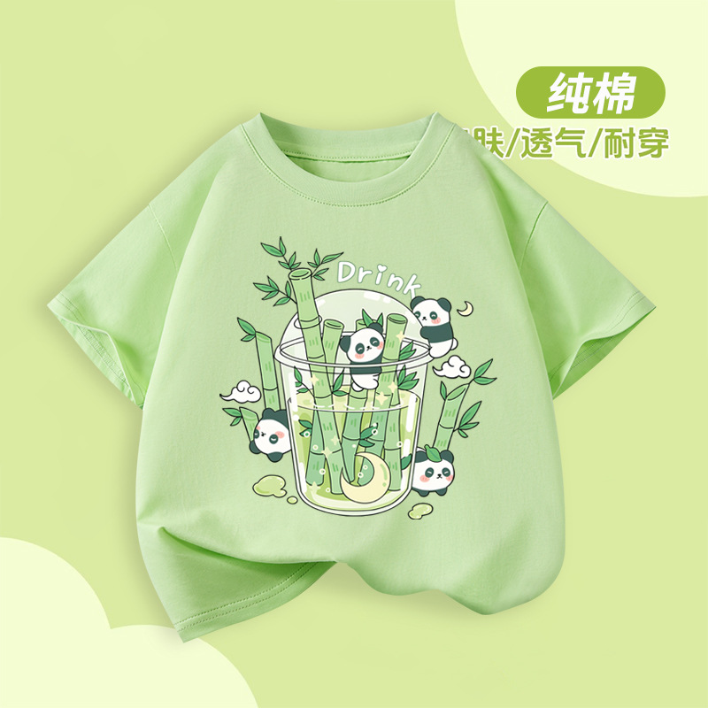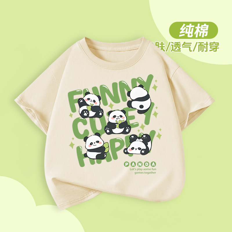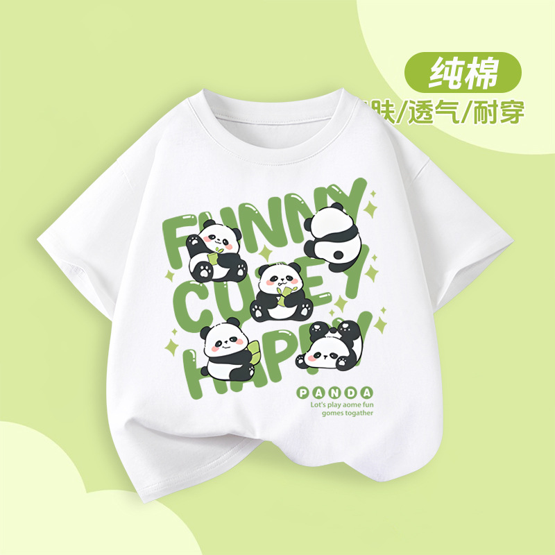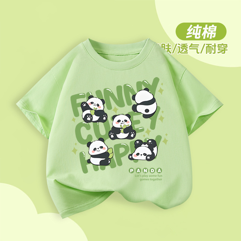 아동용 반팔 티셔츠 팬더 프린트 2025 여름 중대형 아동용 소년 순면 트렌디 소녀상의 아동복스토어 가기