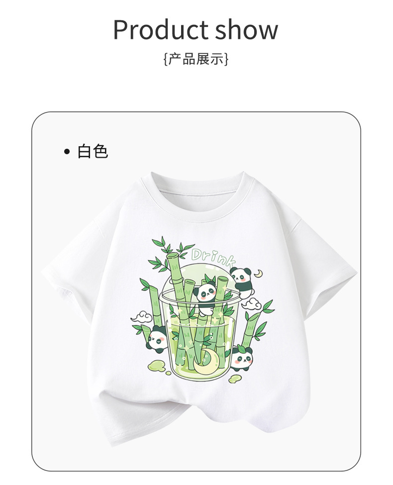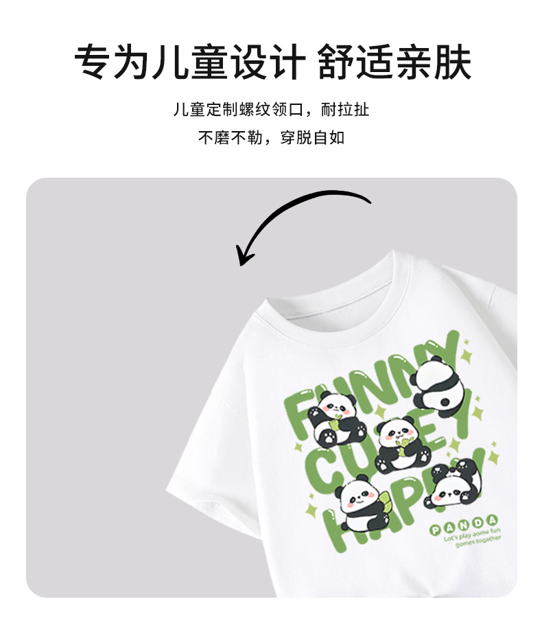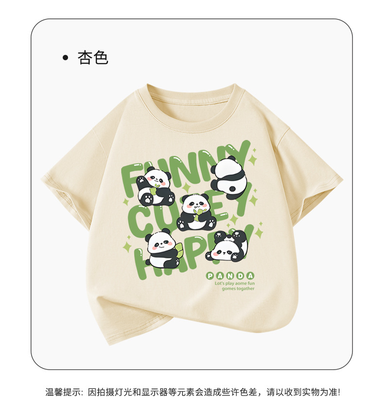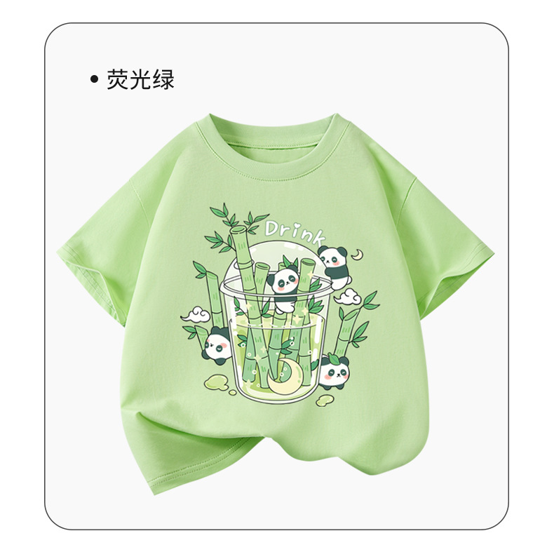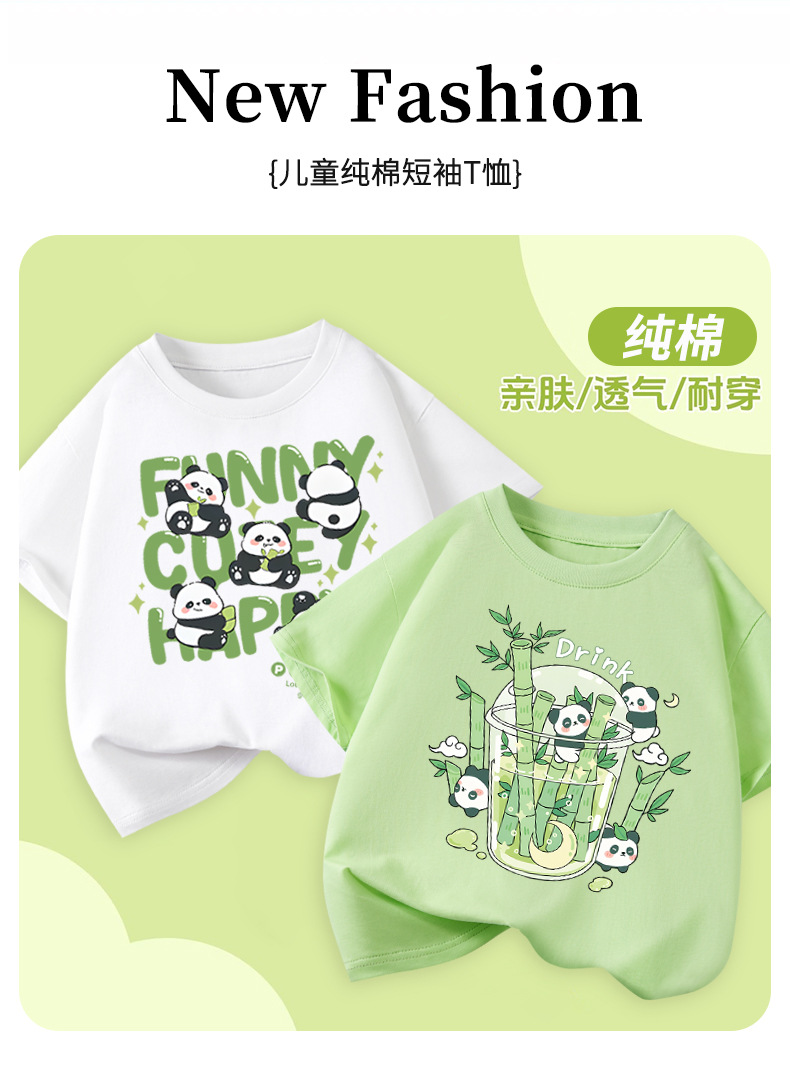 아동용 반팔 티셔츠 팬더 프린트 2025 여름 중대형 아동용 소년 순면 트렌디 소녀상의 아동복스토어 가기