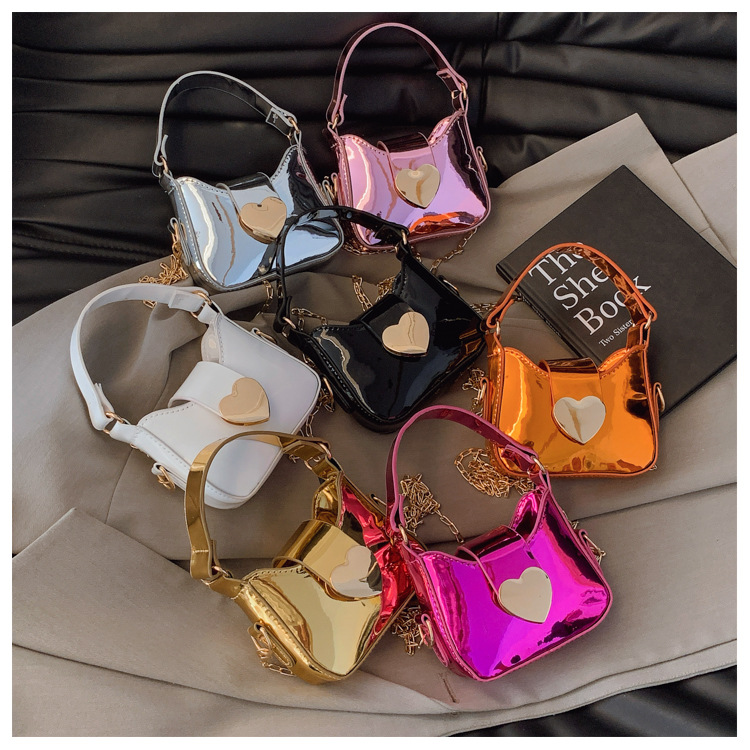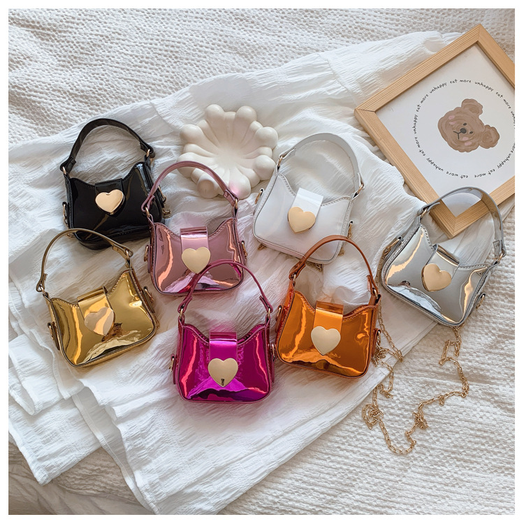 도매 패션 유행 여자 핸드백 새로운 광택 PU 체인 어깨 메신저 가방 미니 사랑 동전 지갑