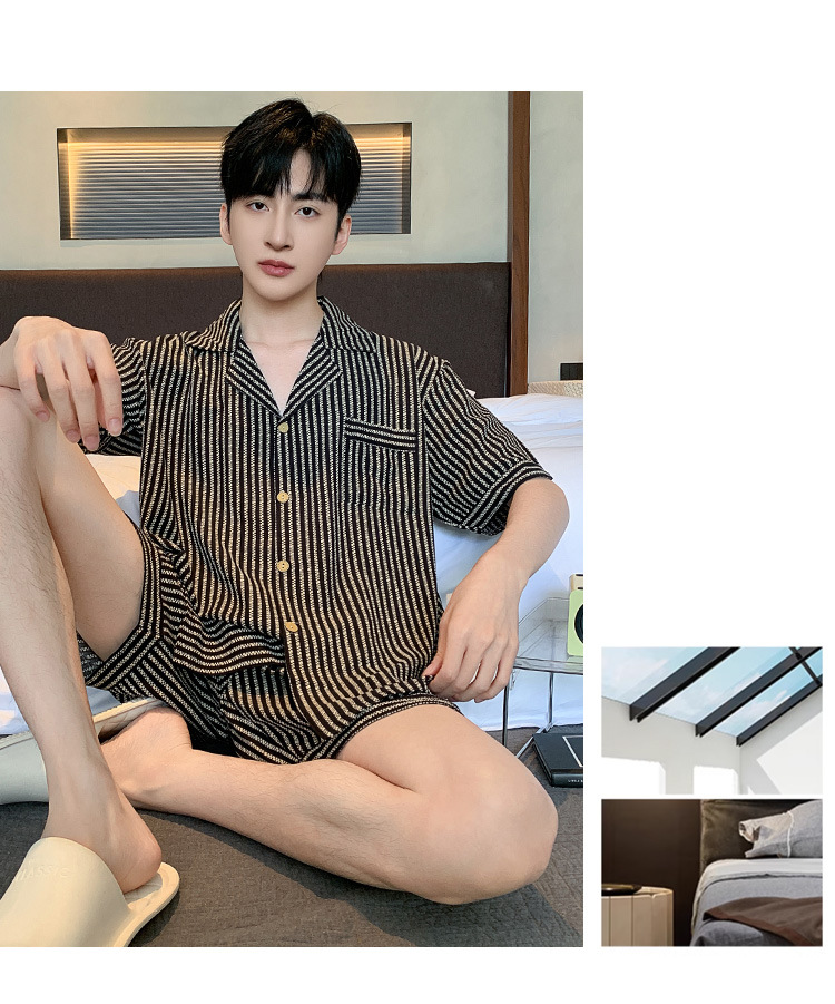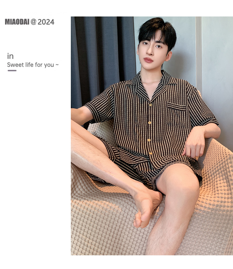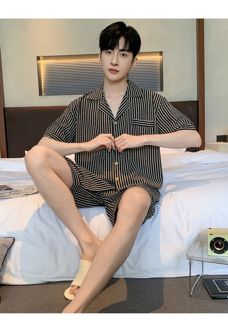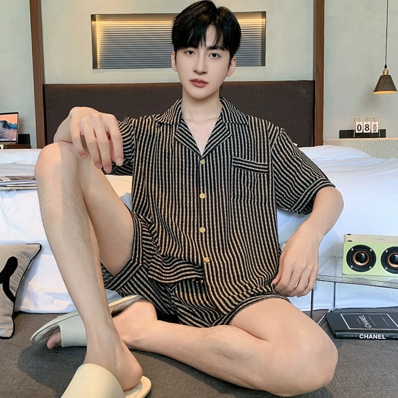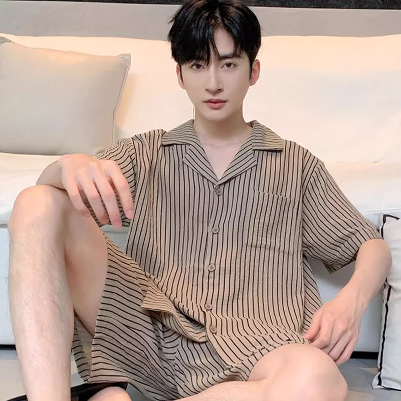 여름 잠옷 남성용 구름 면화 카디건 반팔 2025 신식 아웃웨어 카디건 홈 세트 투피스 세트스토어 가기