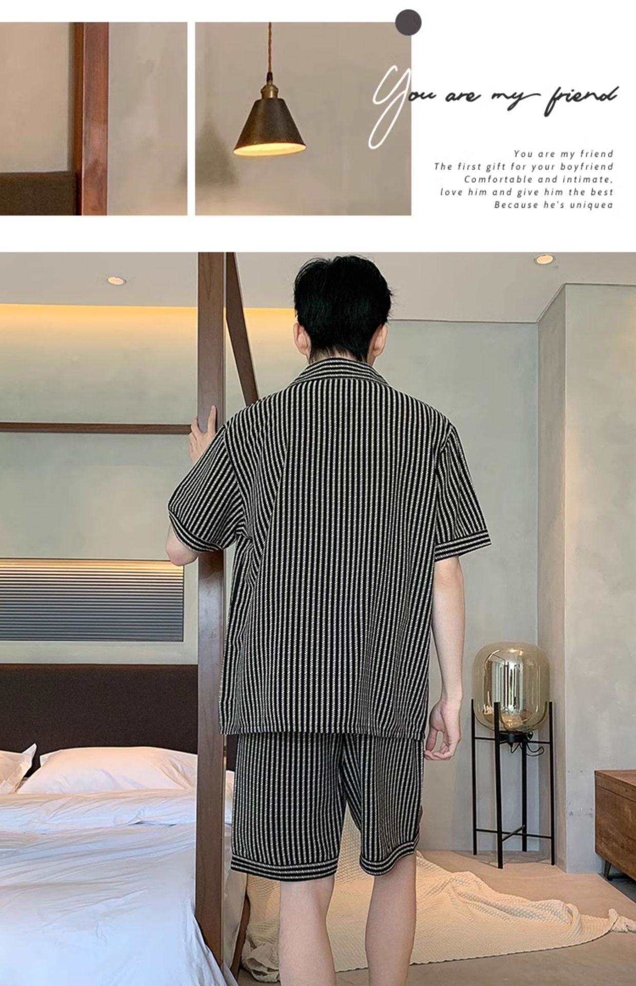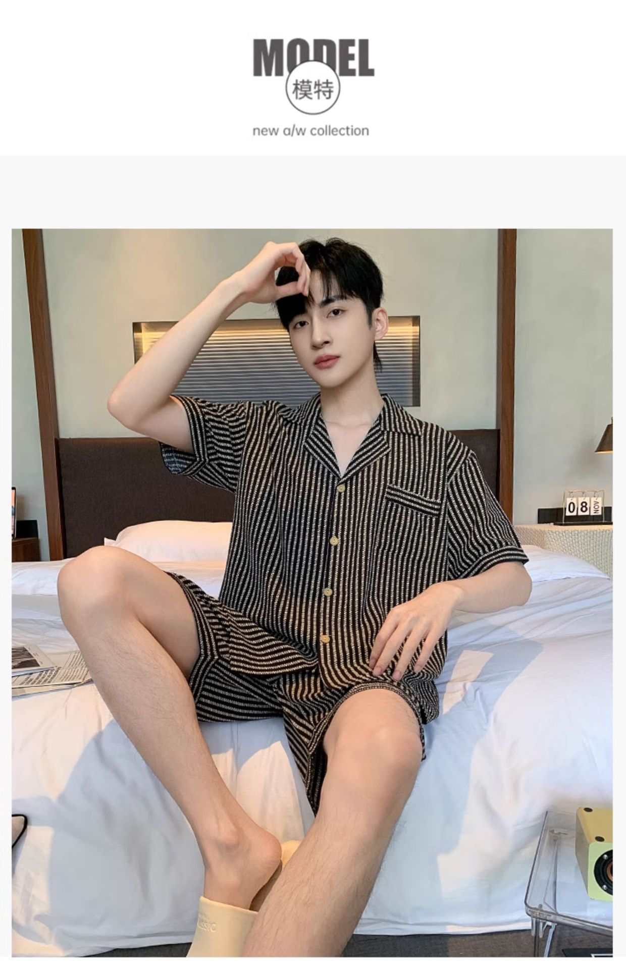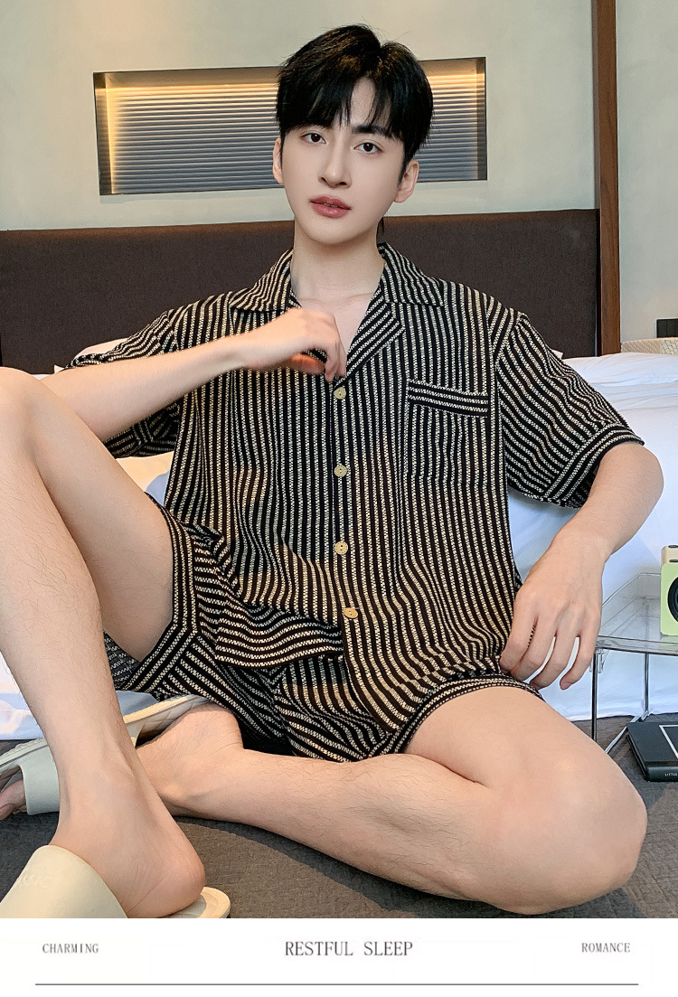 여름 잠옷 남성용 구름 면화 카디건 반팔 2025 신식 아웃웨어 카디건 홈 세트 투피스 세트스토어 가기