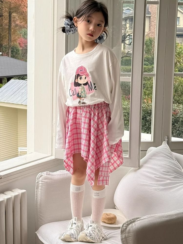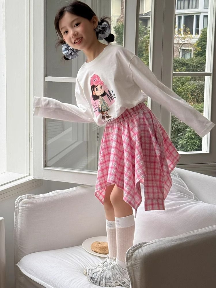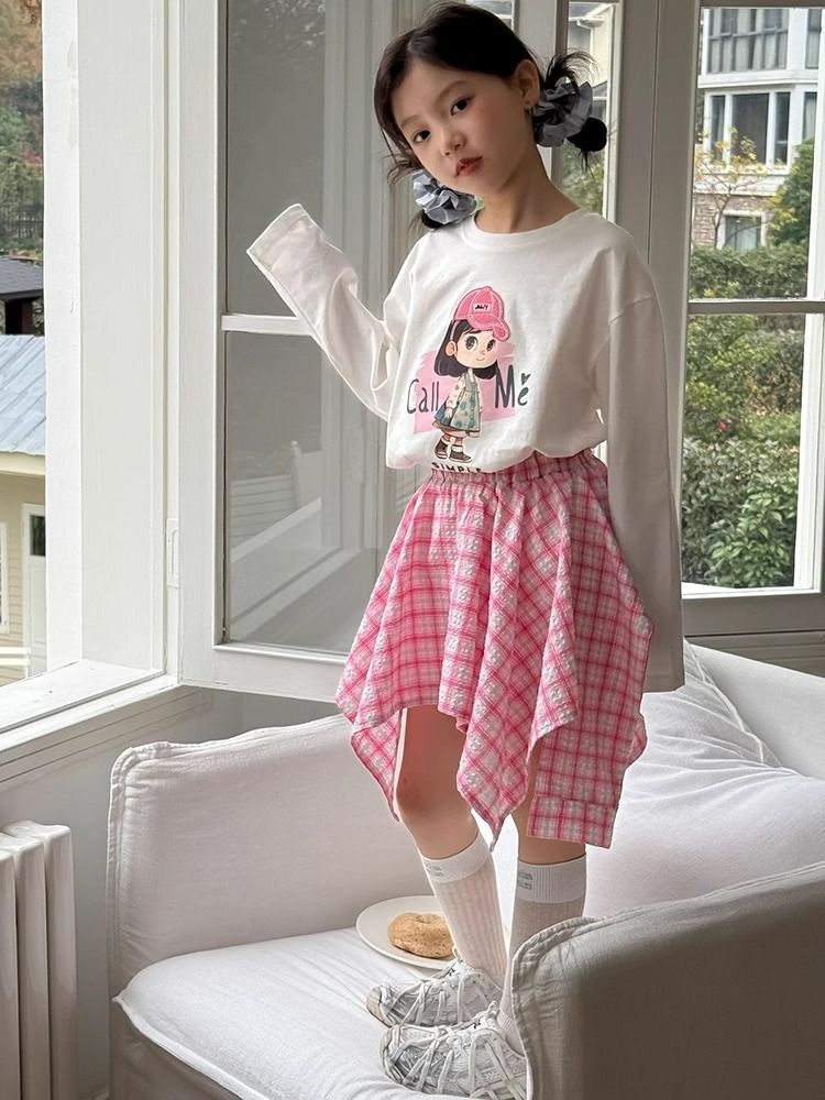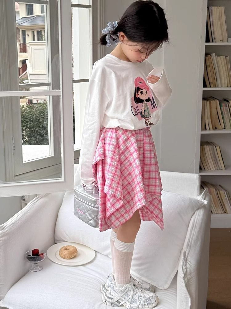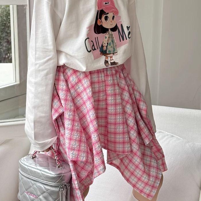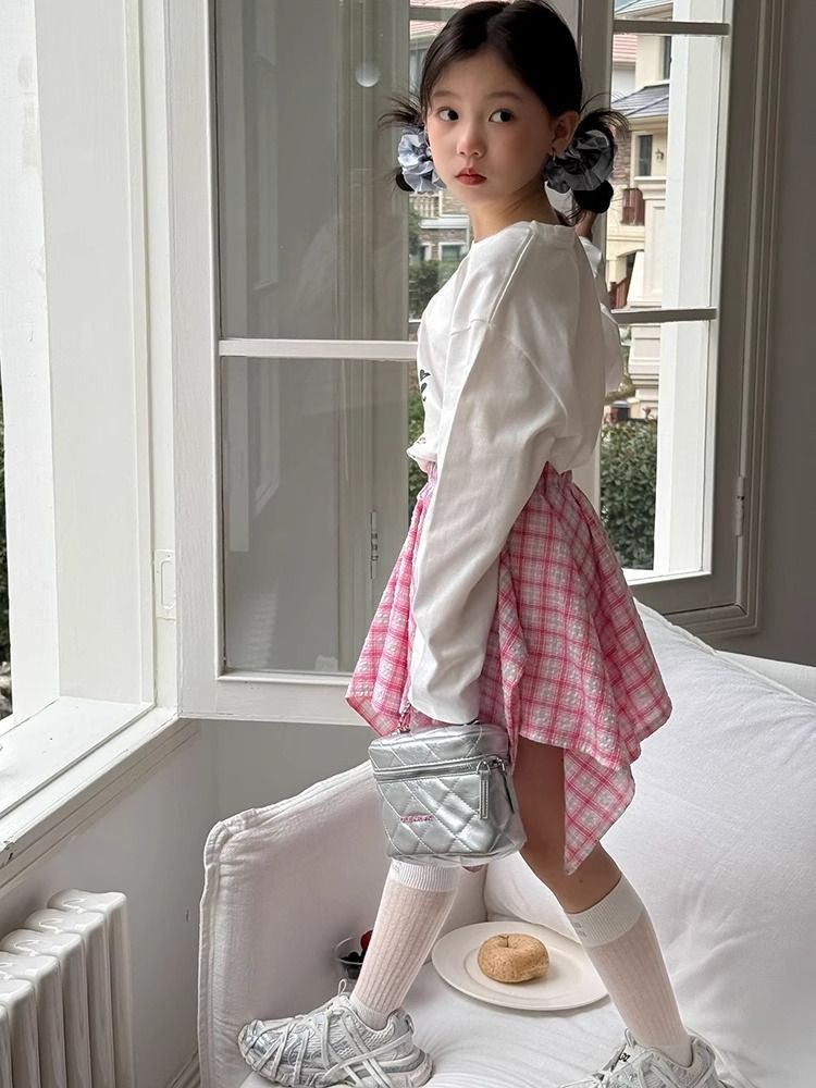 소녀의 격자 무늬 스커트 2025 여름 새로운 어린이 도파민 불규칙한 스커트 소녀의 여름 얇은 스커트스토어 가기