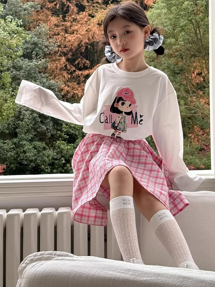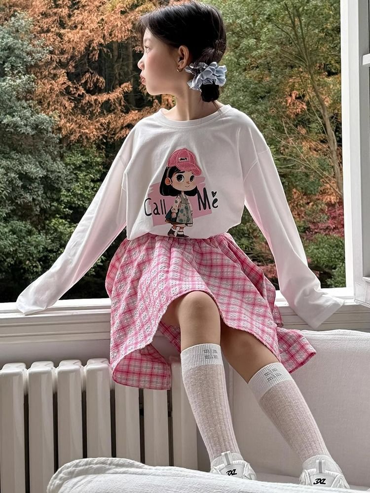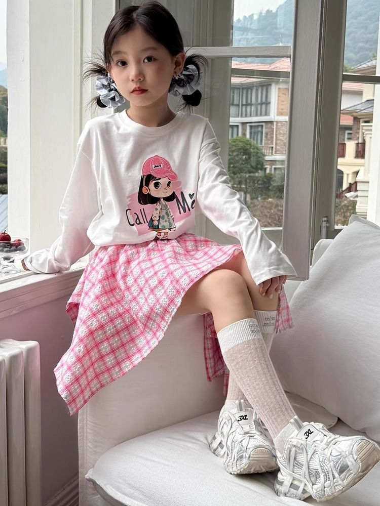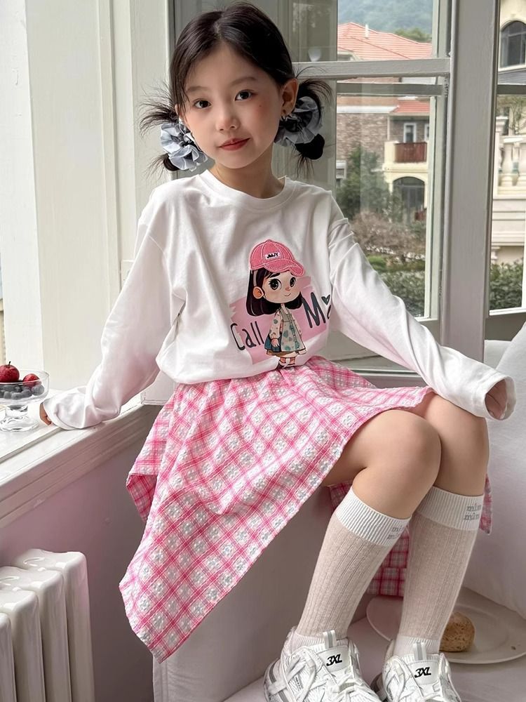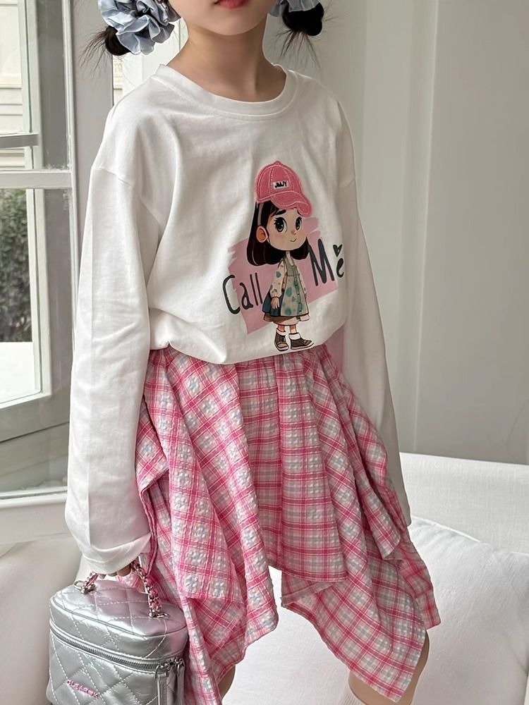 소녀의 격자 무늬 스커트 2025 여름 새로운 어린이 도파민 불규칙한 스커트 소녀의 여름 얇은 스커트스토어 가기