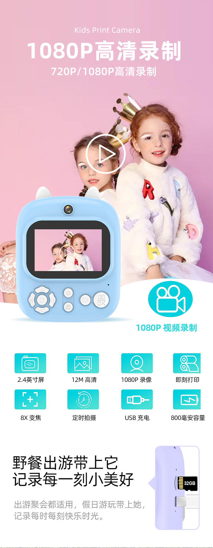 학생들을 위한 사진 촬영 및 인쇄 가능한 크로스보더 폴라로이드 카메라 만화 디지털 인쇄 카메라 미니 SLR