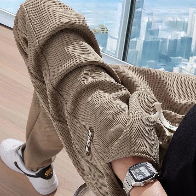 남성용 봄 여름 한국식 와플 팬츠 2025 신상 루즈핏 트렌디 브랜드 스포츠 레깅스 캐주얼 스웨트팬츠스토어 가기