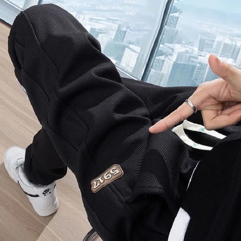 남성용 봄 여름 한국식 와플 팬츠 2025 신상 루즈핏 트렌디 브랜드 스포츠 레깅스 캐주얼 스웨트팬츠