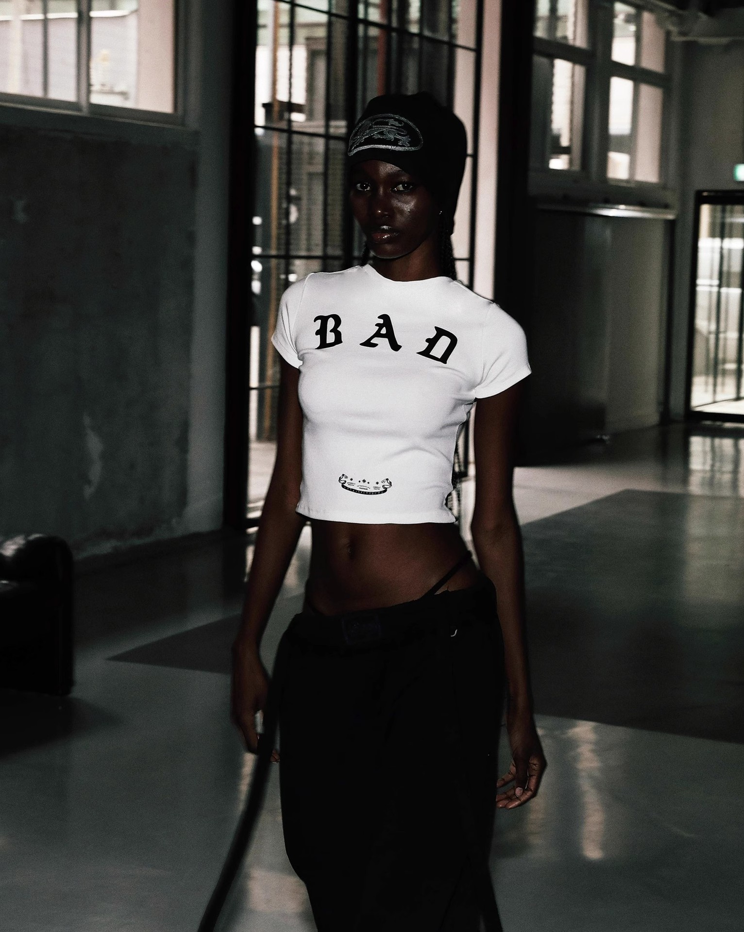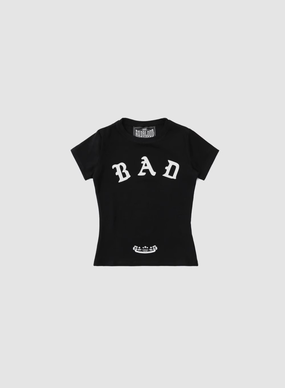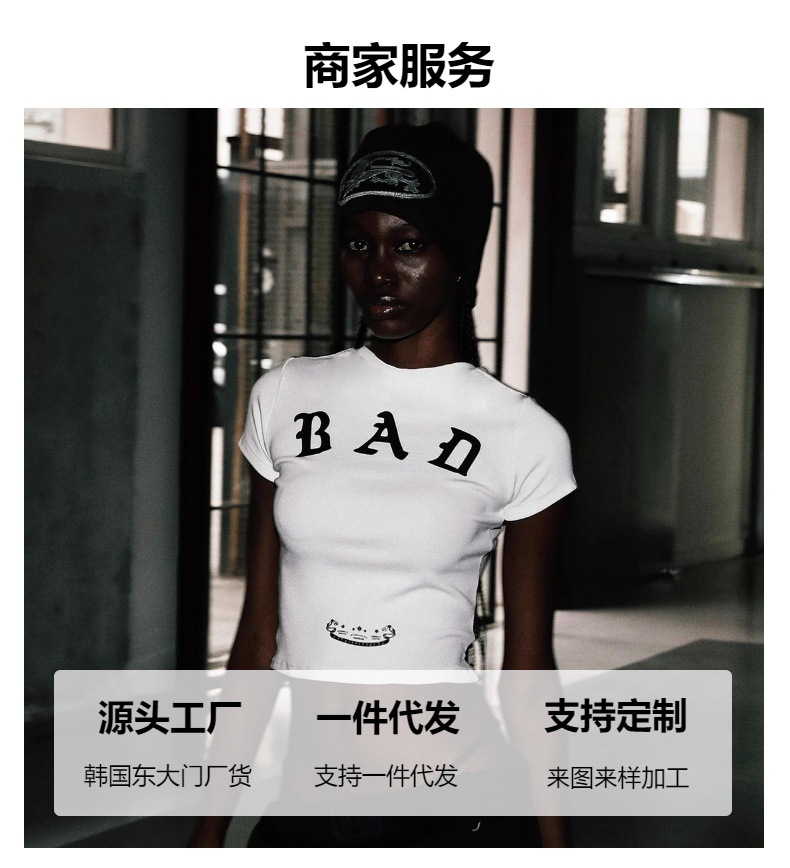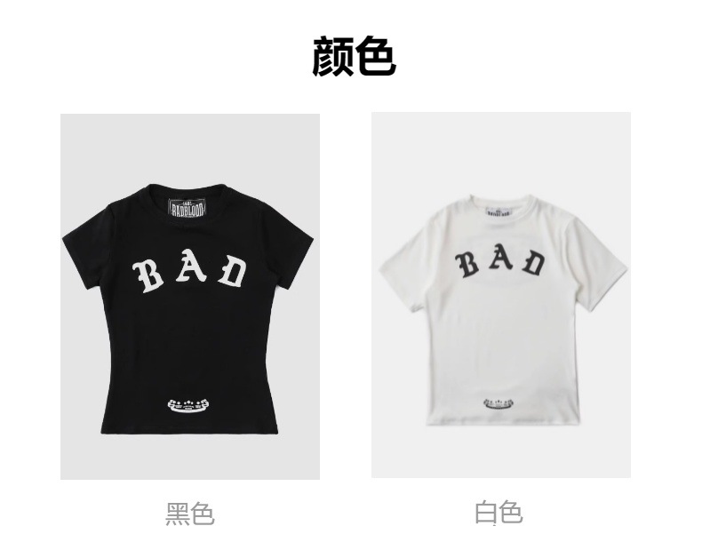 Badblood 한국 미국 하이 스트리트 짧은 슬림 핏 스포츠 스파이스 소녀 스타일 프린트 티셔츠 배꼽 노출 반팔 탑스토어 가기