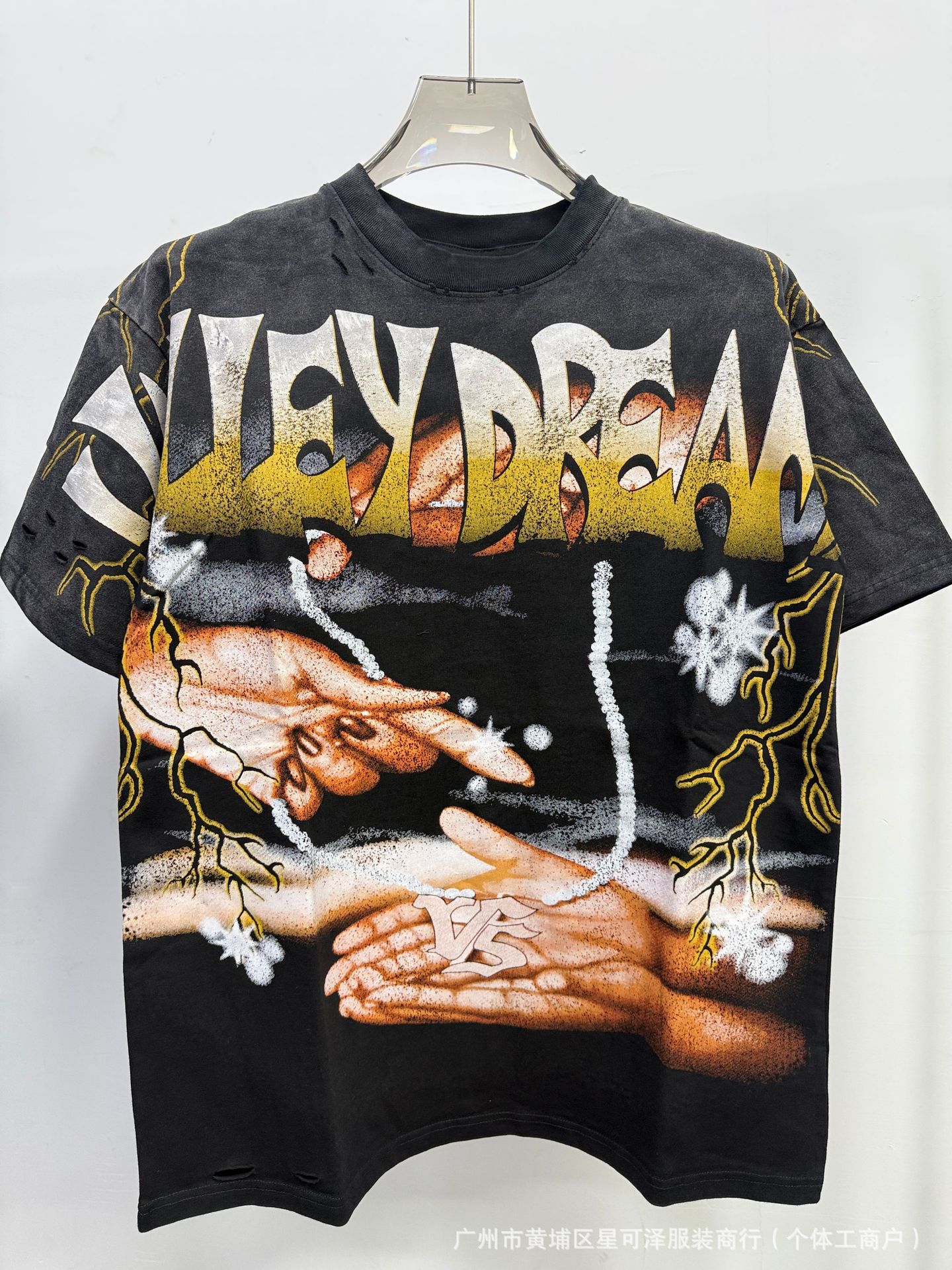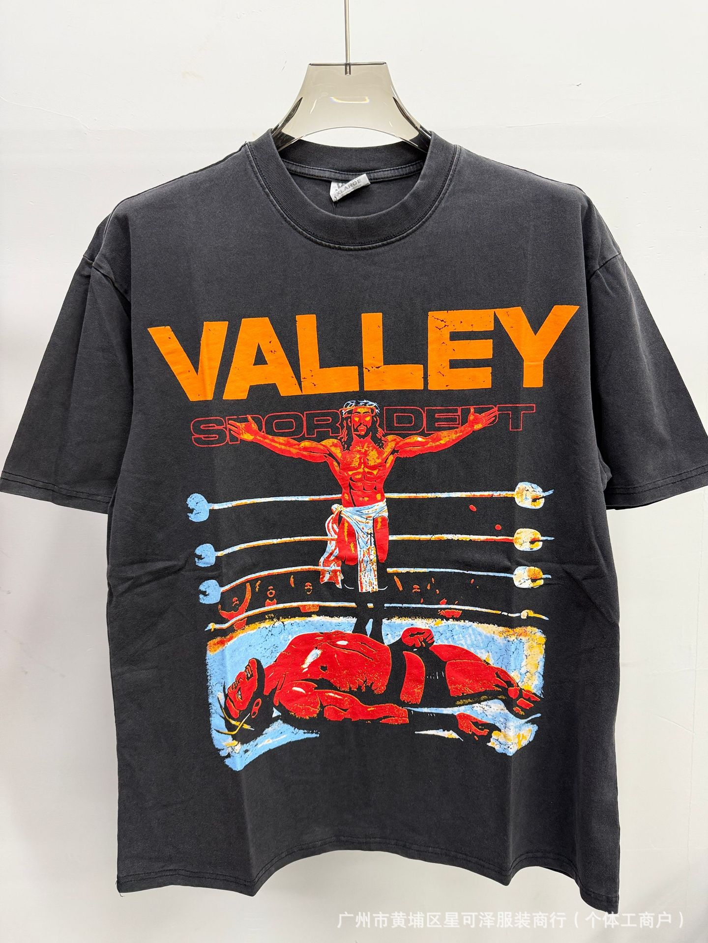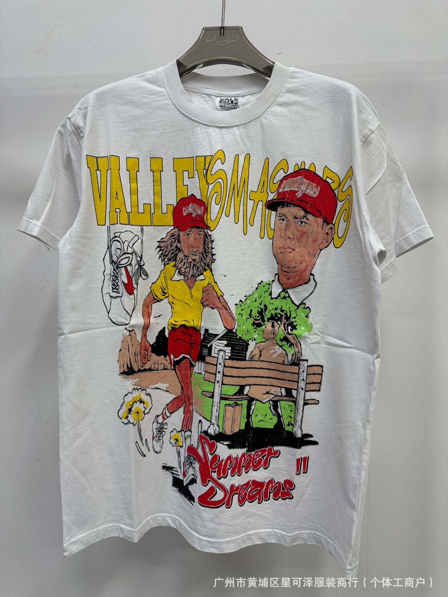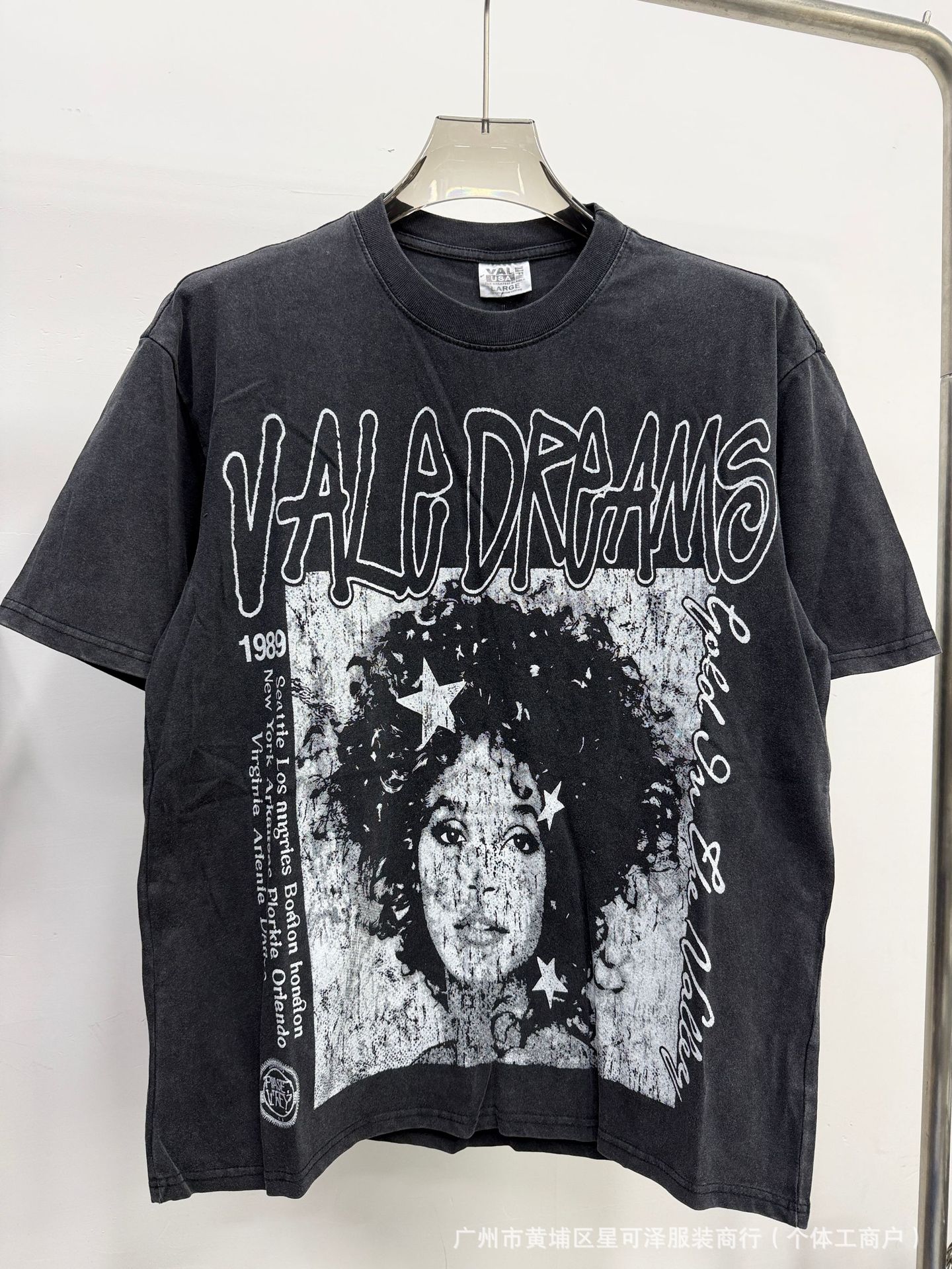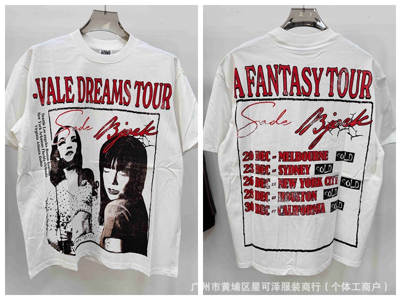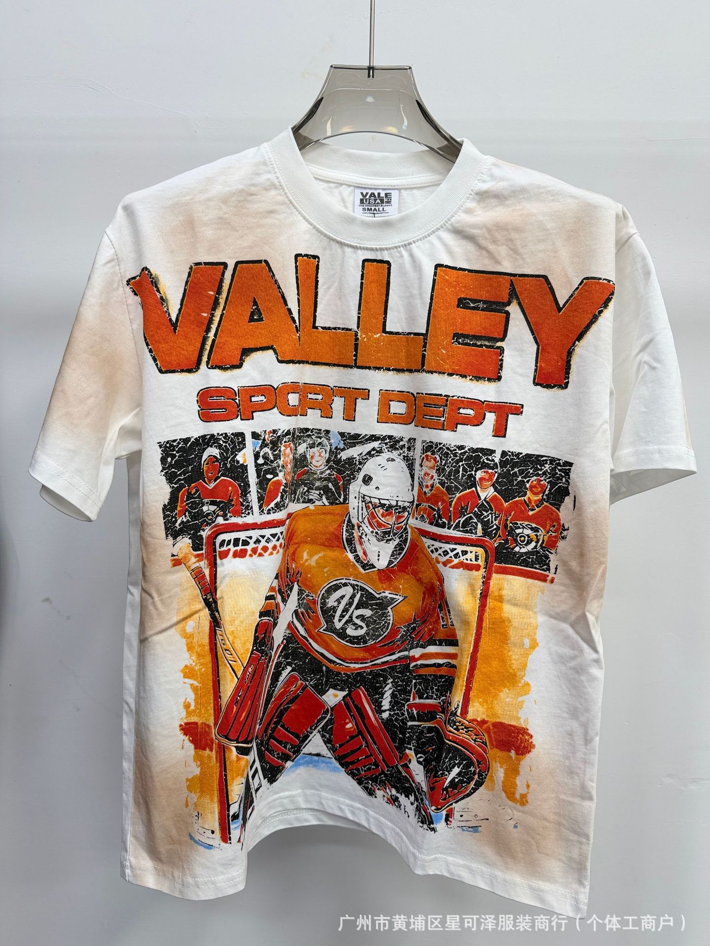 Vale sports Valley Dreams 워시 올드 프린트 유럽 및 미국 힙합 루즈한 남성용 반팔 티셔츠스토어 가기