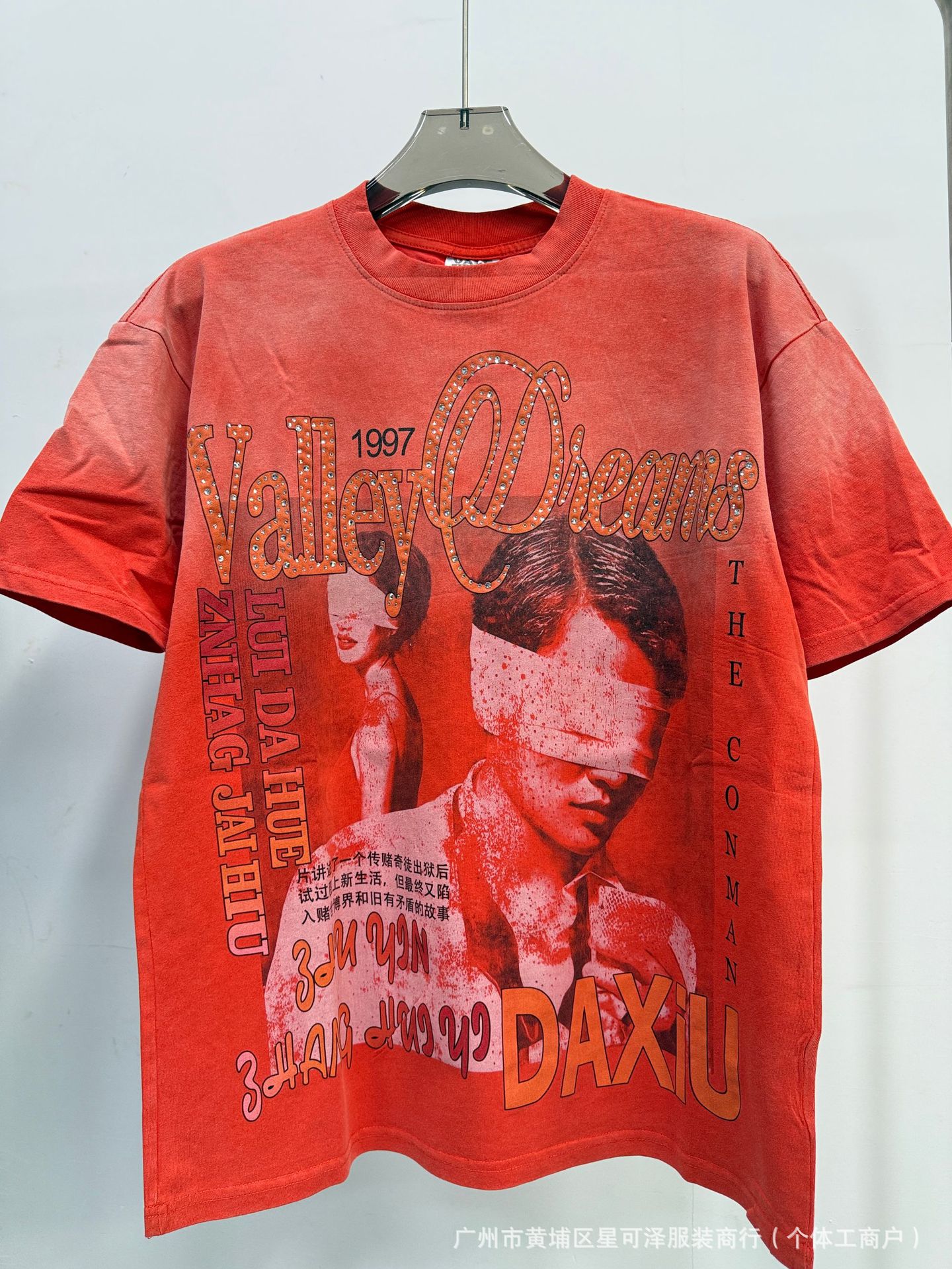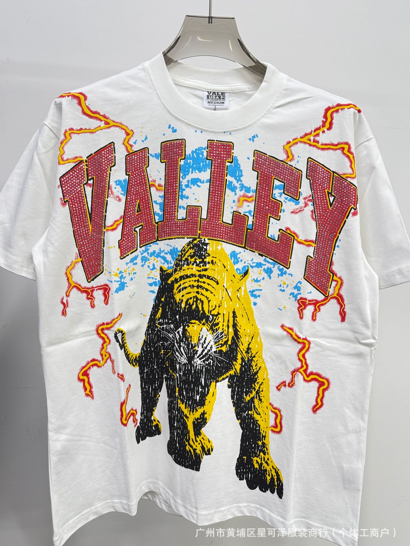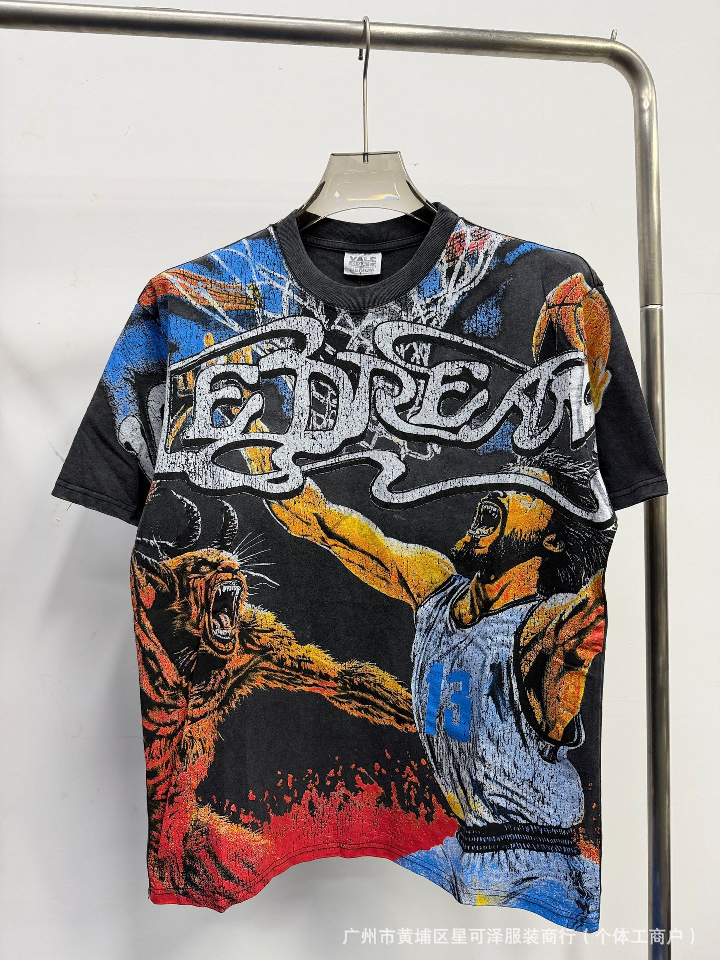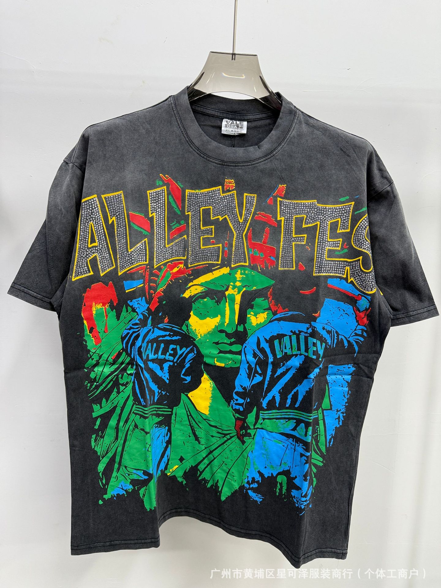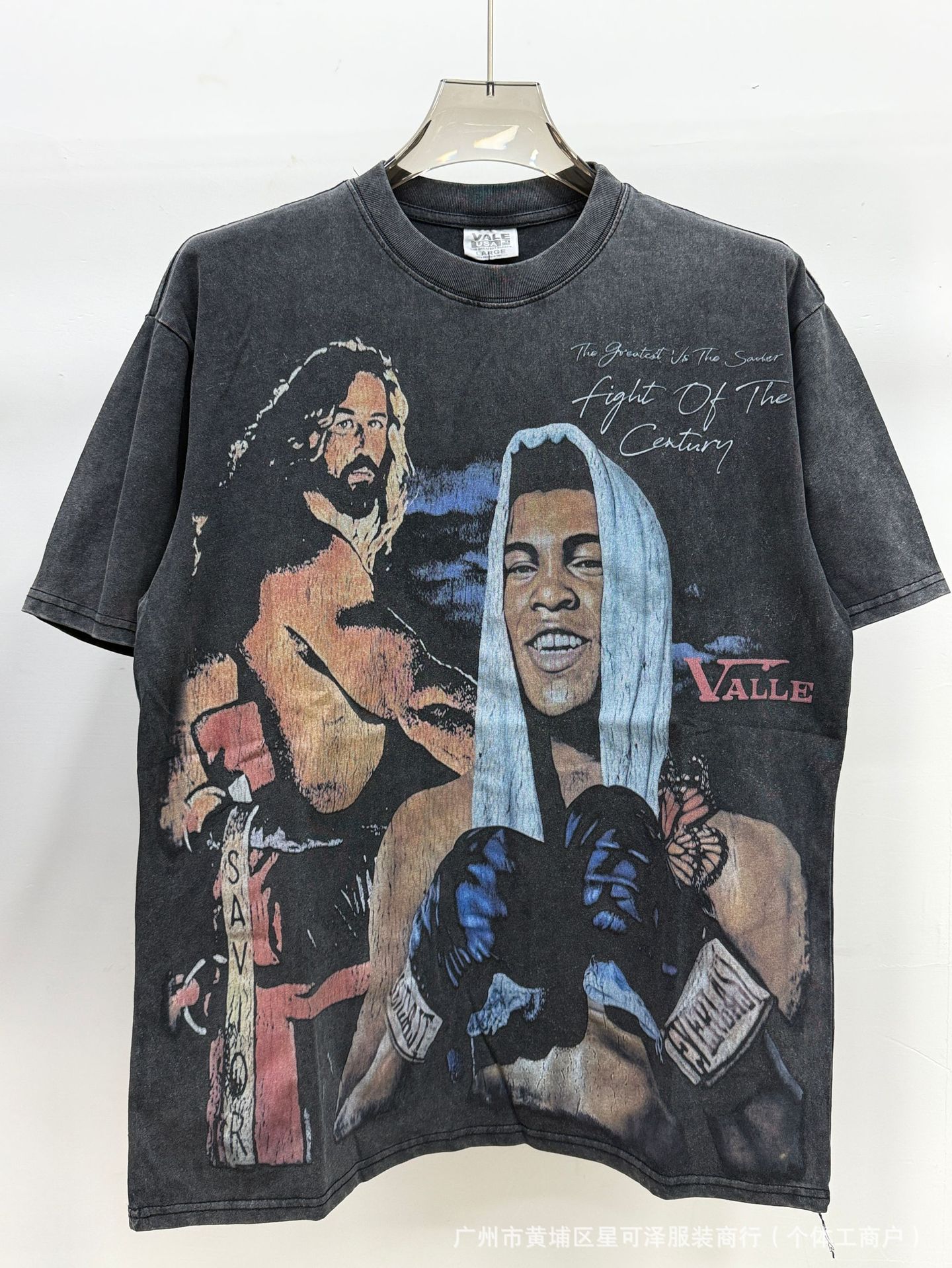Vale sports Valley Dreams 워시 올드 프린트 유럽 및 미국 힙합 루즈한 남성용 반팔 티셔츠스토어 가기