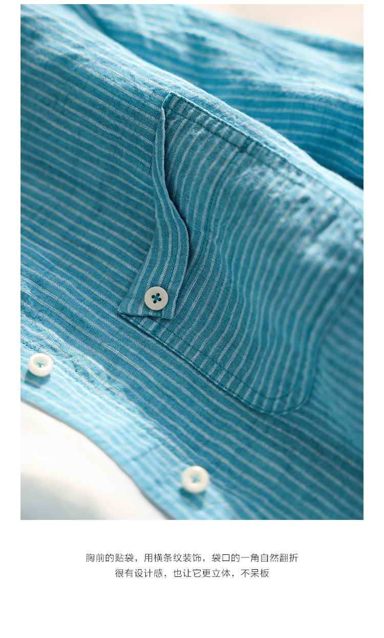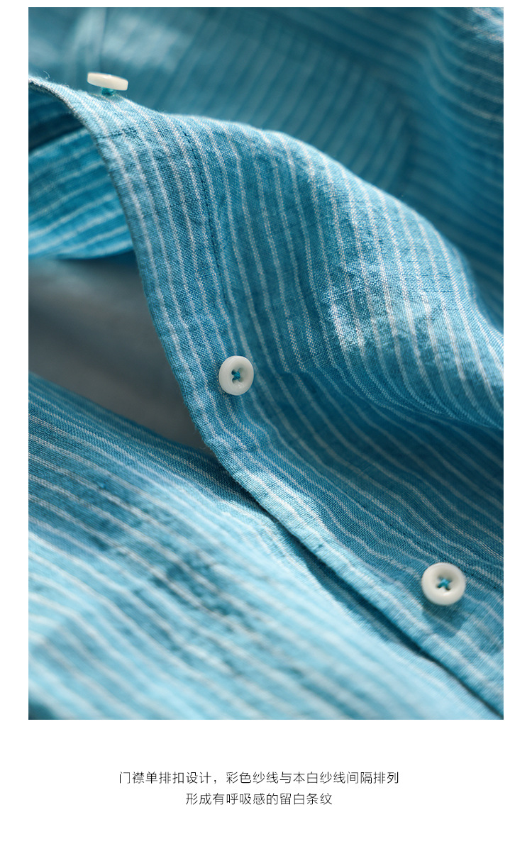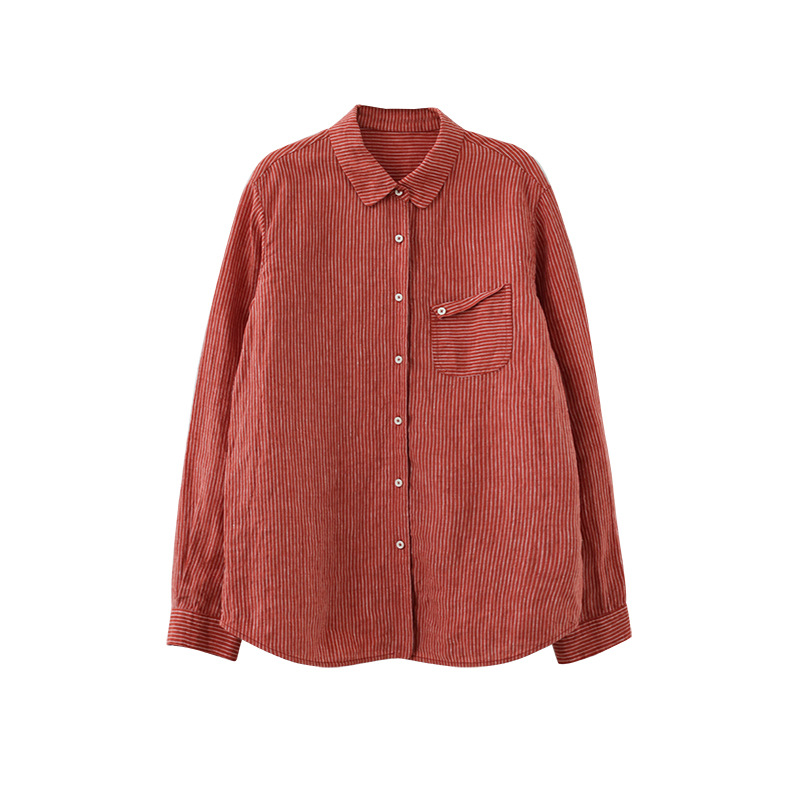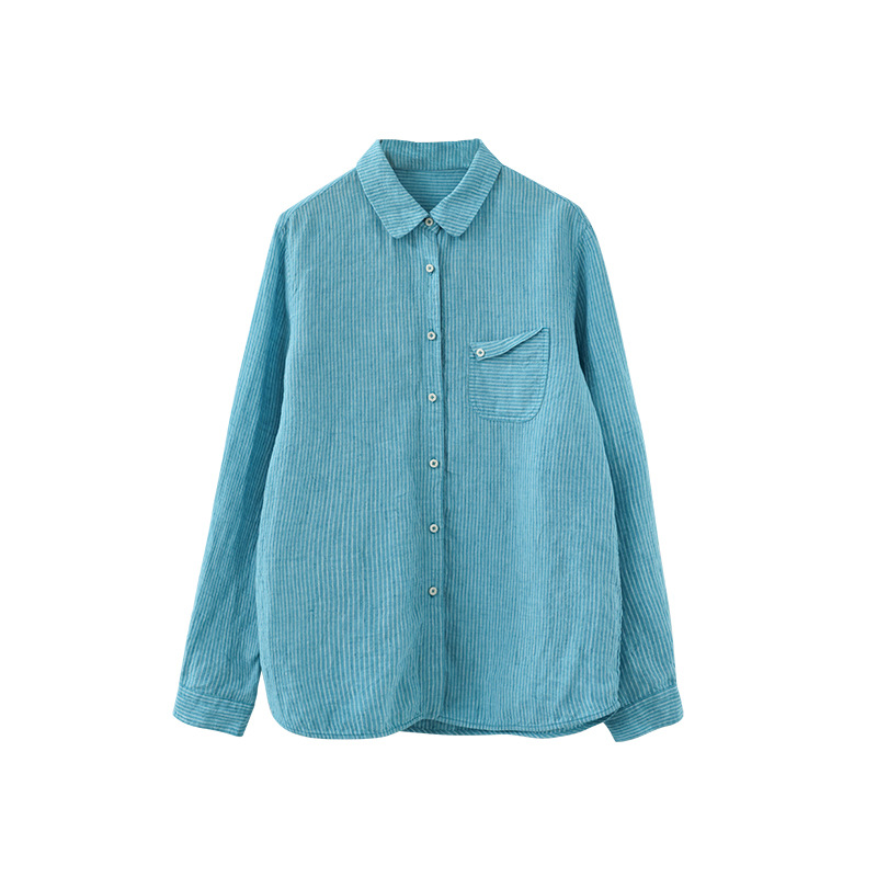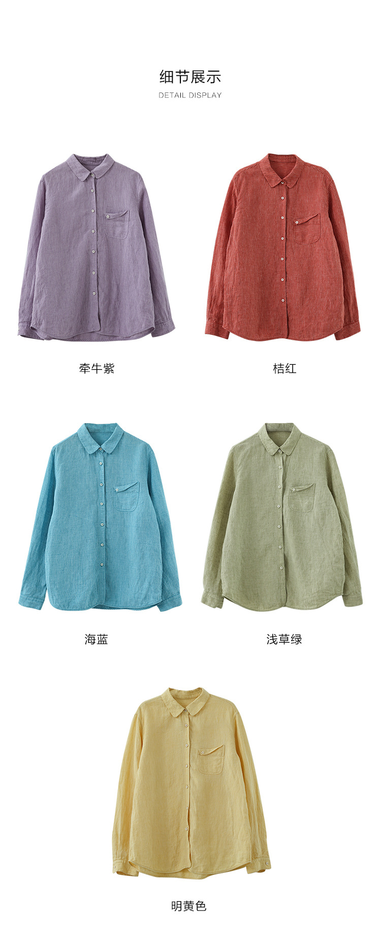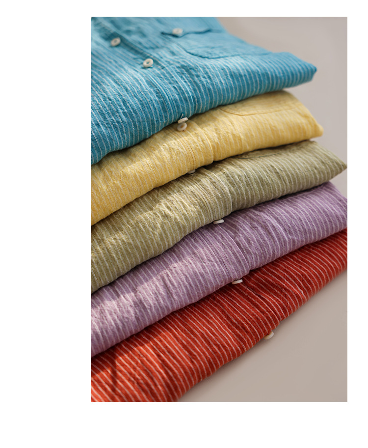 2025 여름 새로운 린넨 원사 염색 밝은 색상 줄무늬 작은 옷깃 긴 소매 캐주얼 셔츠스토어 가기