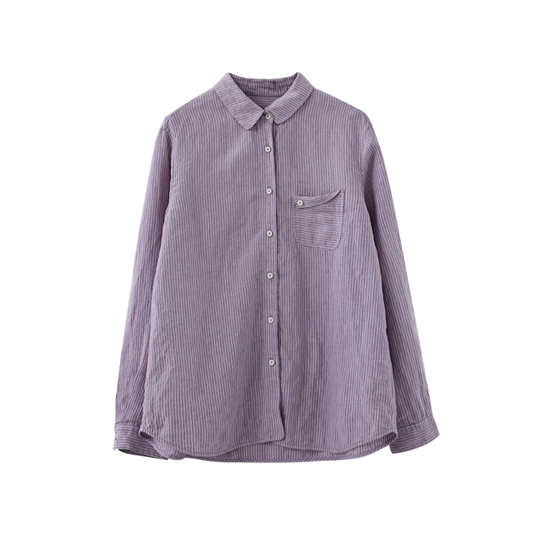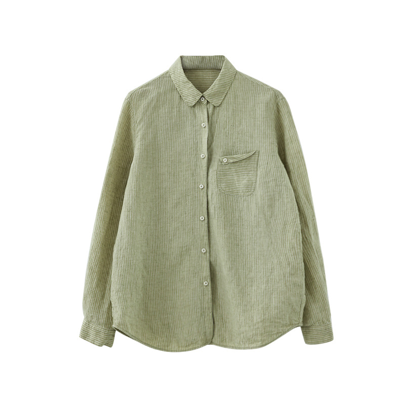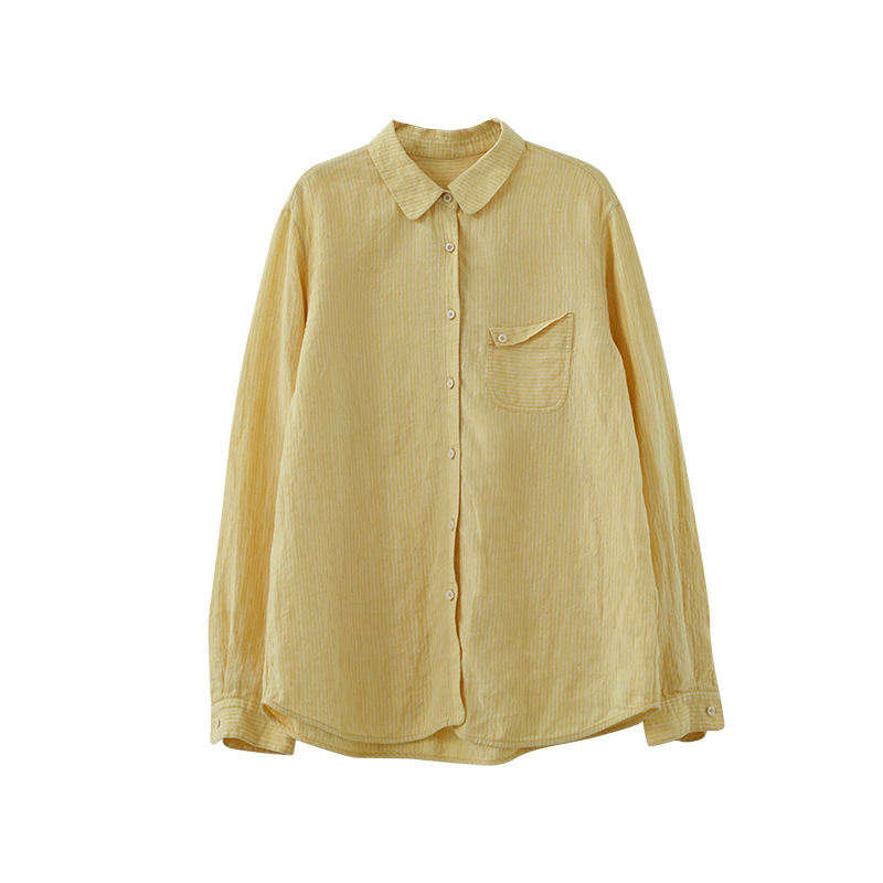 2025 여름 새로운 린넨 원사 염색 밝은 색상 줄무늬 작은 옷깃 긴 소매 캐주얼 셔츠