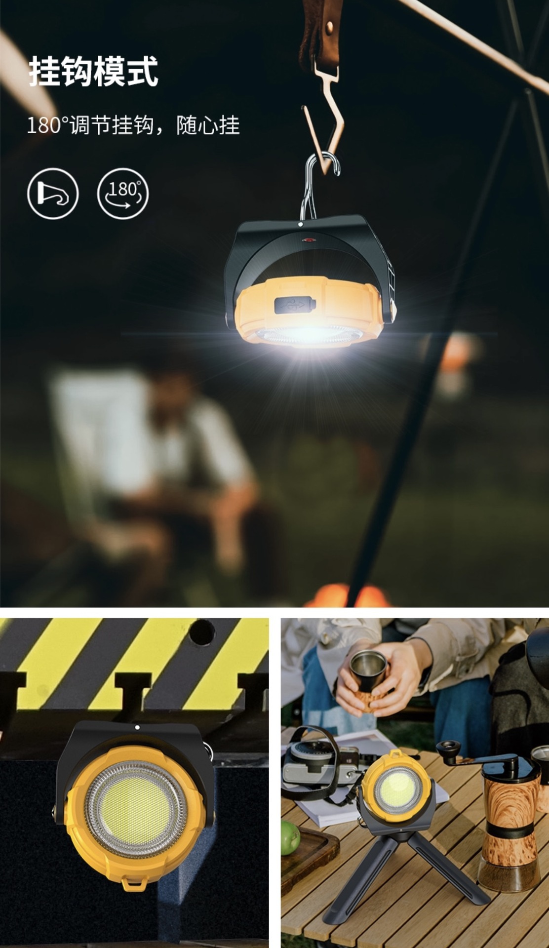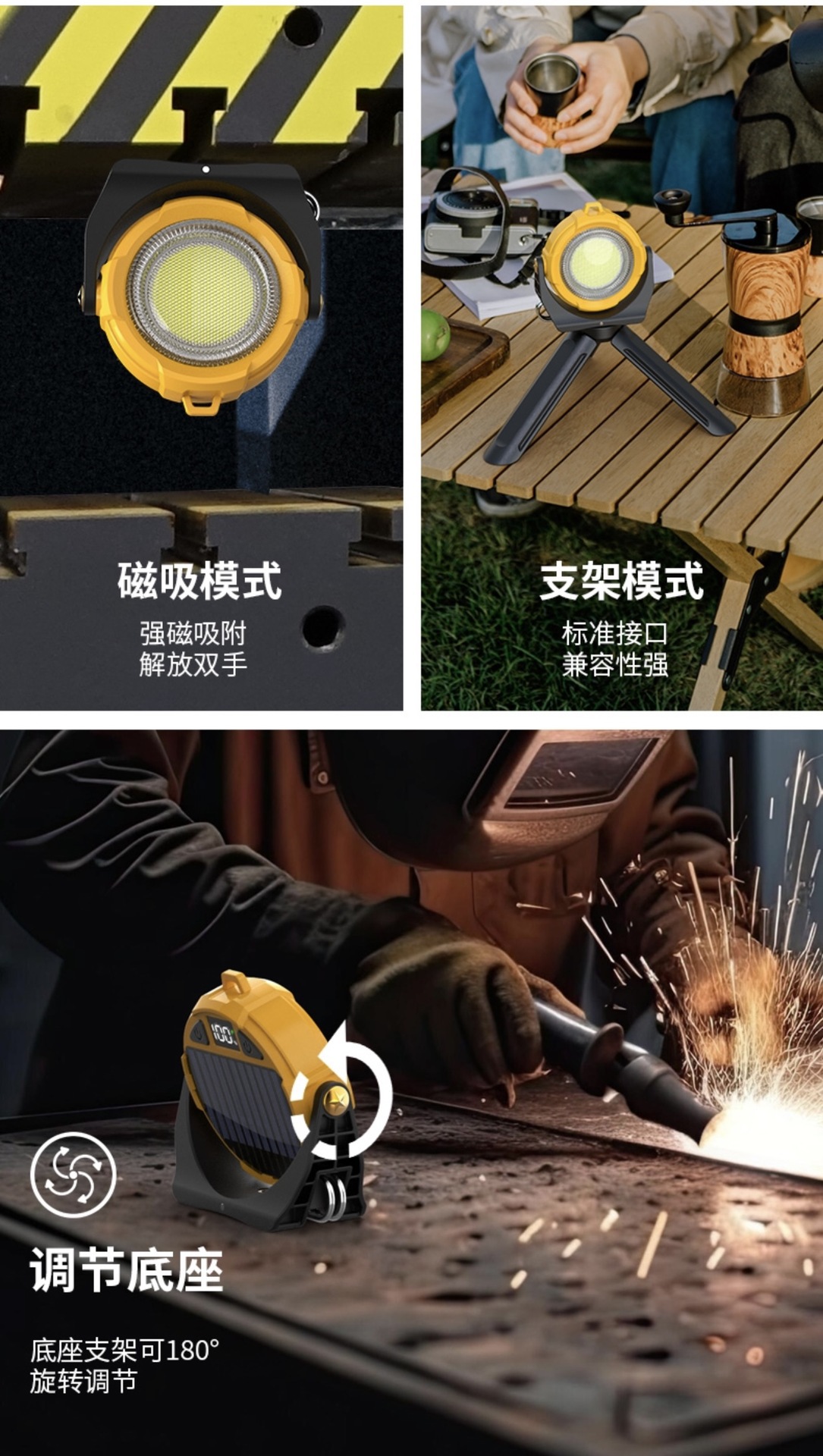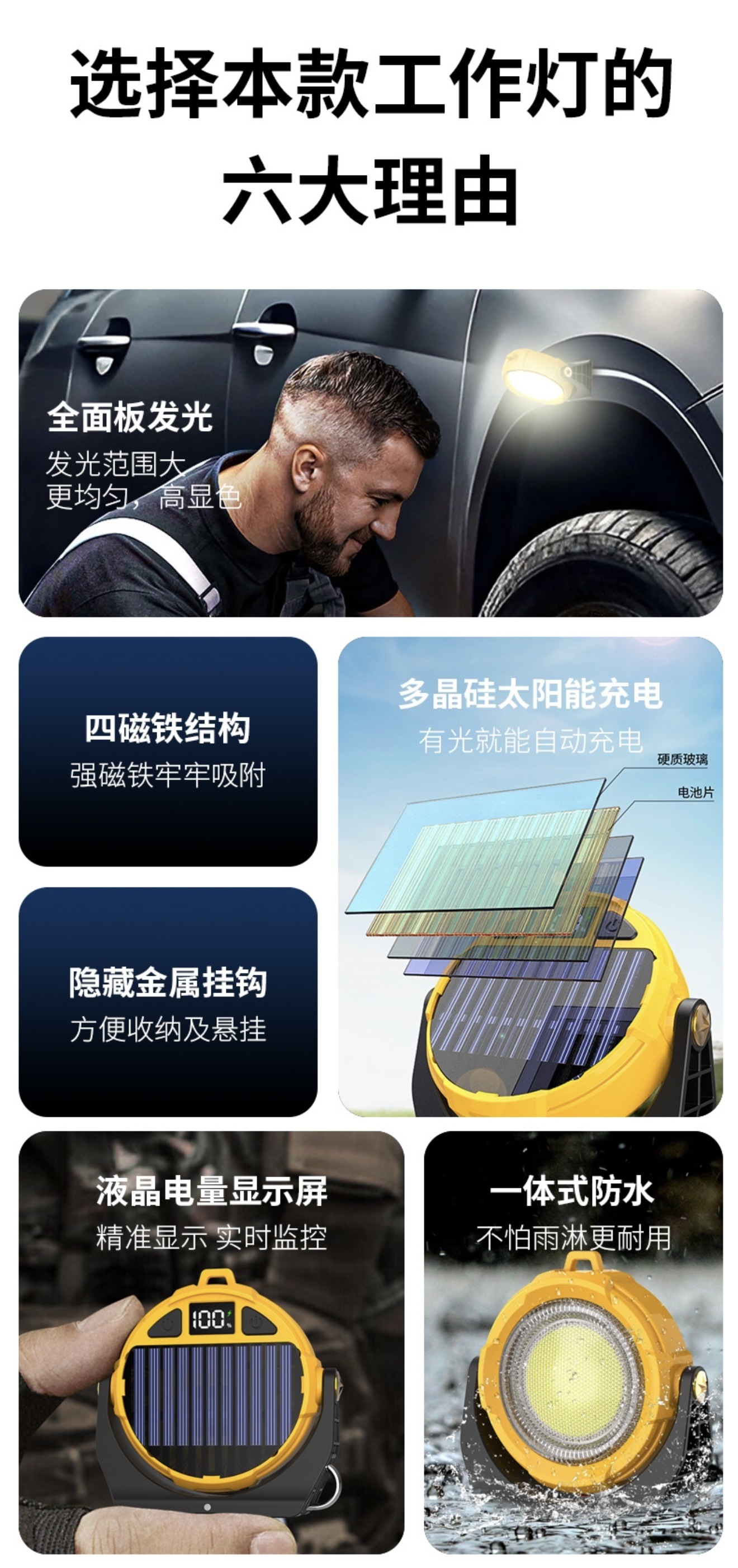LED 손전등 충전식 브래킷 작업 조명 RGB 컬러 조명 태양열 비상 조명 휴대용 손전등 착용 가능스토어 가기