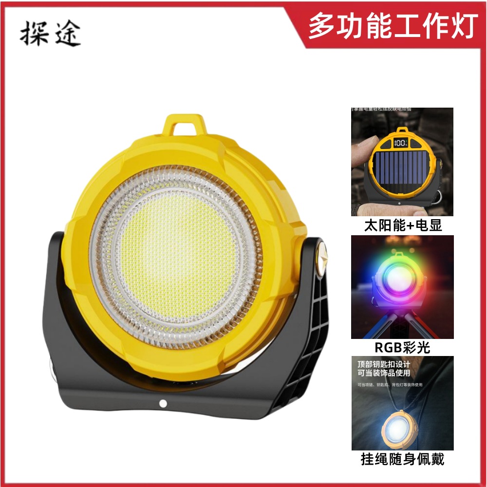 LED 손전등 충전식 브래킷 작업 조명 RGB 컬러 조명 태양열 비상 조명 휴대용 손전등 착용 가능