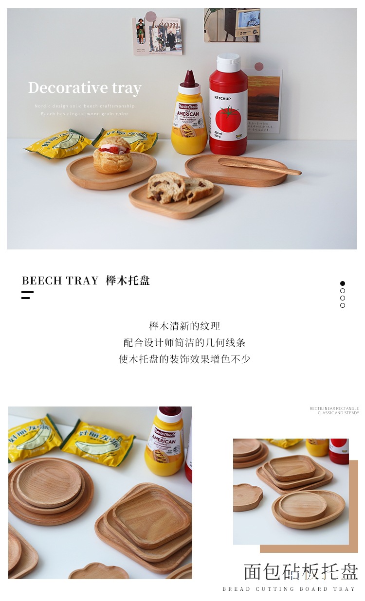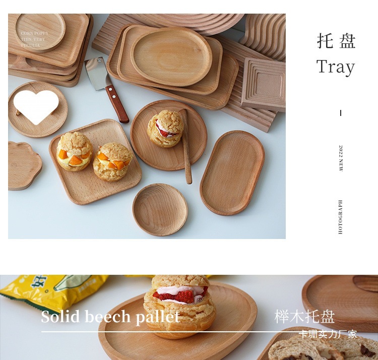너도밤 나무 나무 타원형 케이크 일본식 나무 접시 작은 신선한 기능 접시 스낵 홈 다이닝 접시 나무 트레이