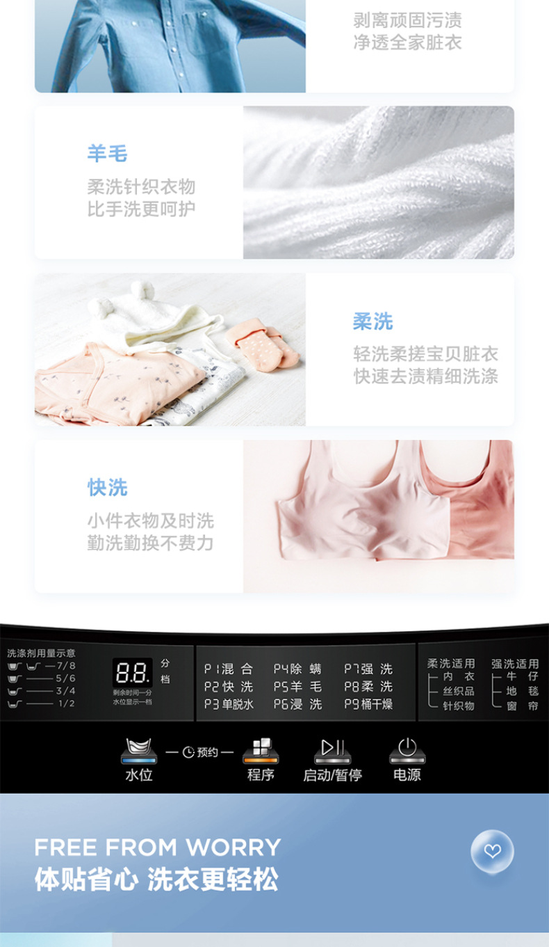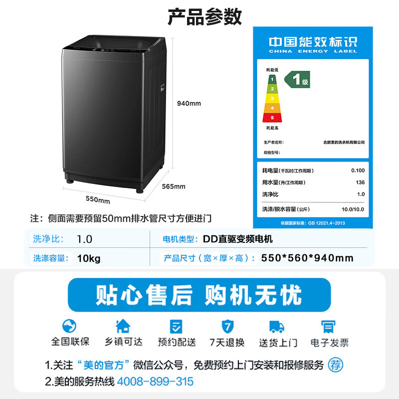 Midea 완전 자동 맥동 세탁기 지능형 진드기 제거 청소 무료 1 차 주파수 변환 용출 통합 가구 8-12KG