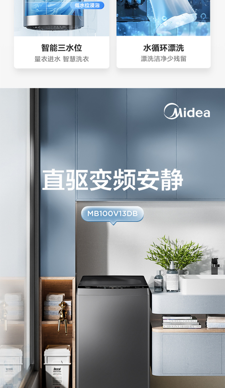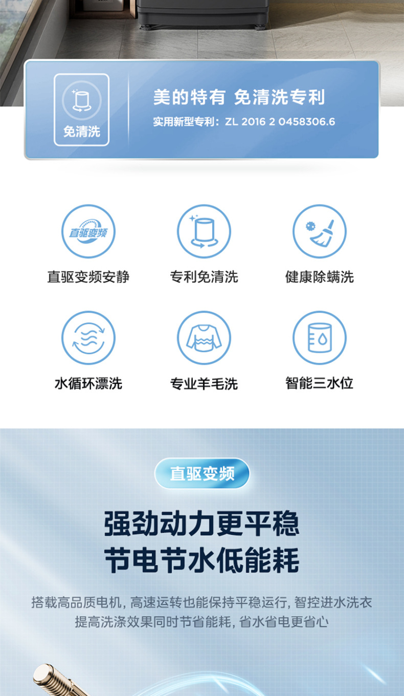 Midea 완전 자동 맥동 세탁기 지능형 진드기 제거 청소 무료 1 차 주파수 변환 용출 통합 가구 8-12KG스토어 가기