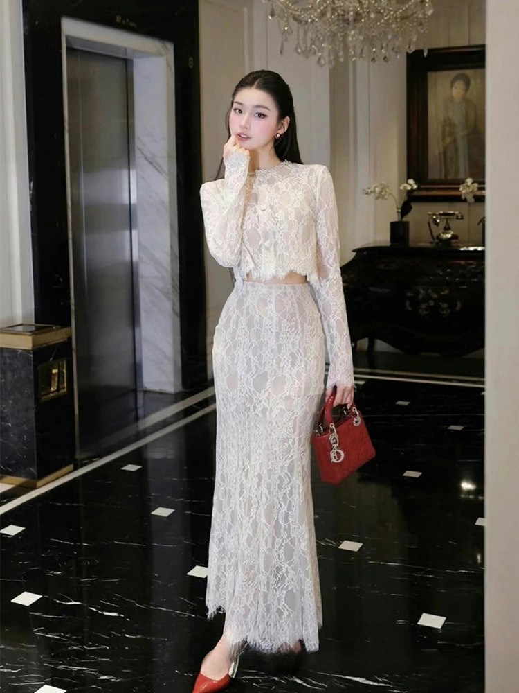 유니크한 레이스 셔츠 여성용 2026년 봄 신상 고급스럽고 독특한 명사 스타일의 아름다운 퓨어&섹시 세트 드레스스토어 가기