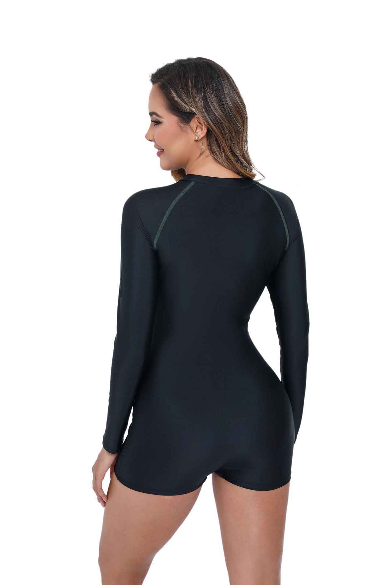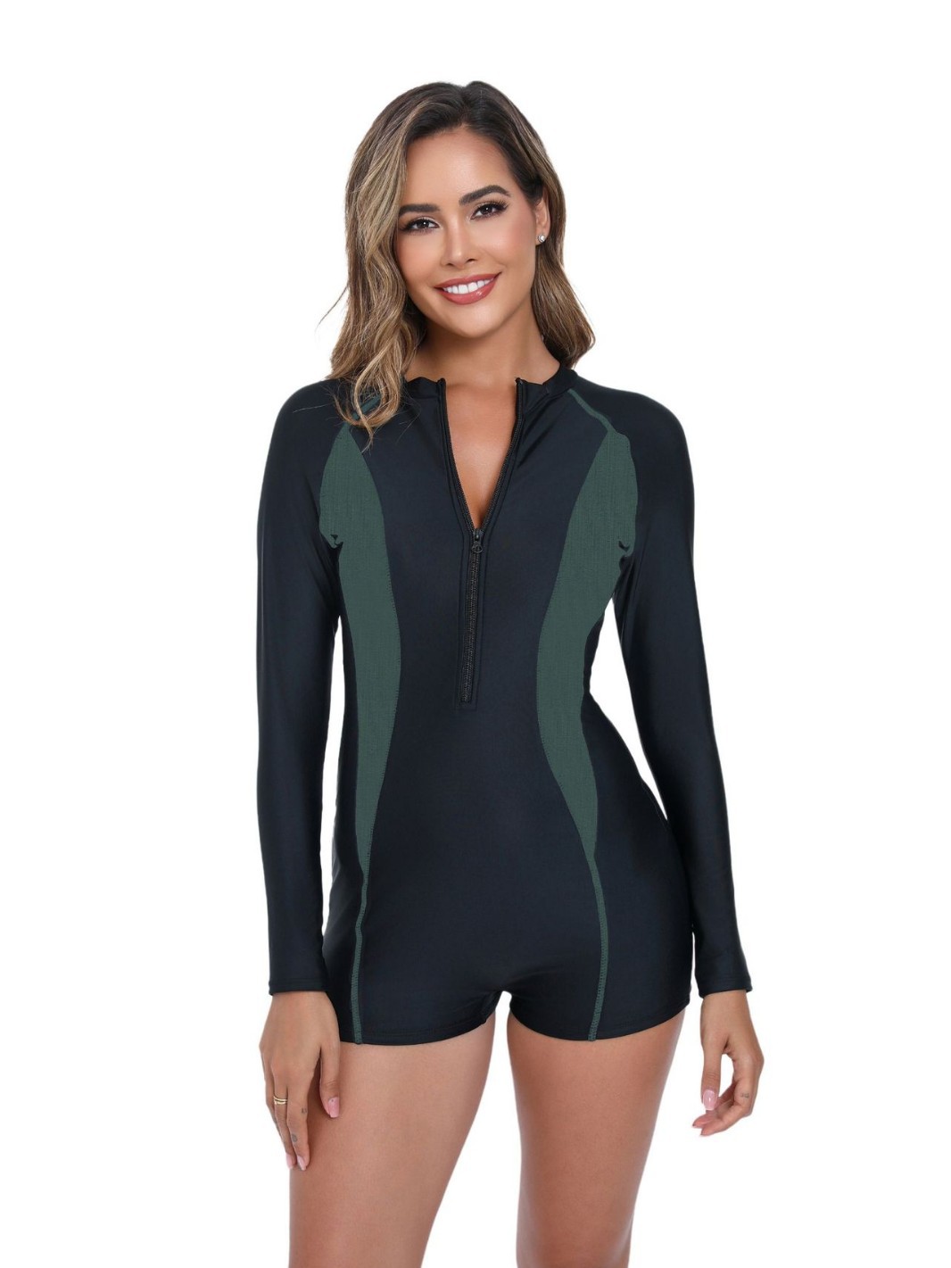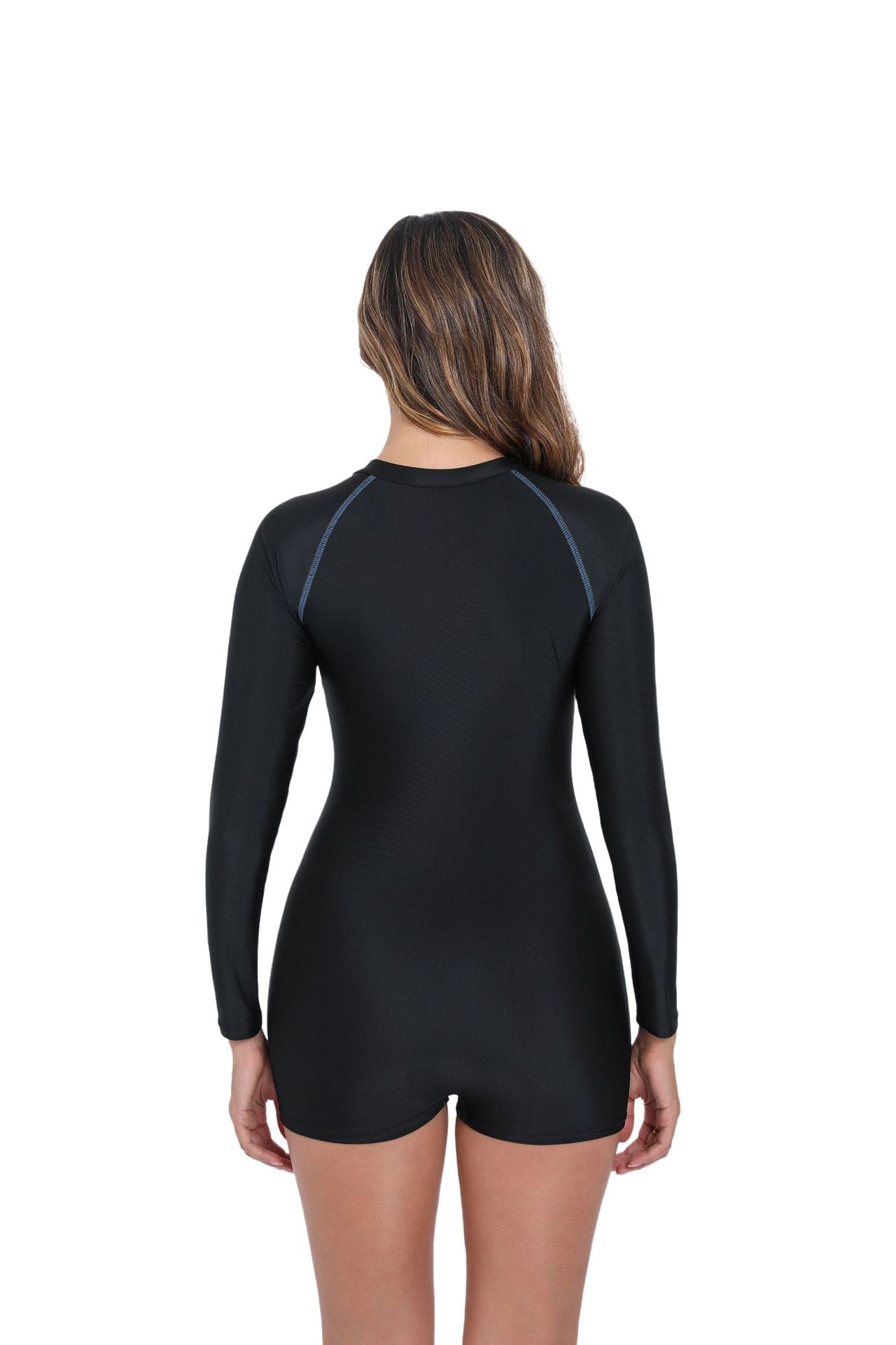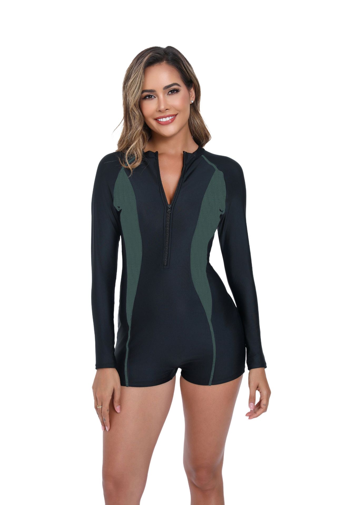 2025 유럽과 미국 국경 새로운 원피스 복서 컬러 매칭 긴 소매 지퍼 비치 선 스크린 서핑 의류 여성 수영복스토어 가기