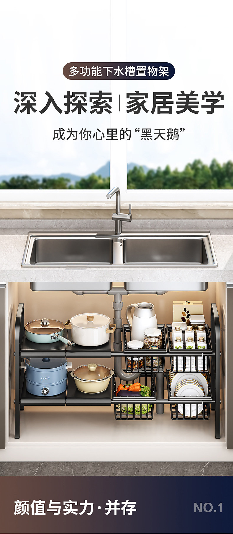 싱크대 부엌 저장 선반 캐비닛 층 선반 다층 냄비 랙 다양한 다기능 유물 아래스토어 가기