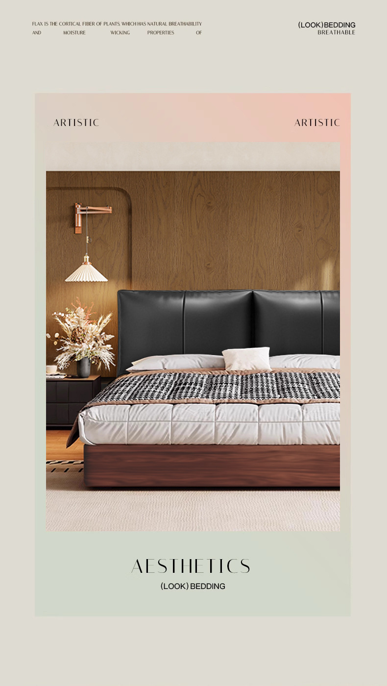 • 가죽 침대 + 캐비닛 2개 {가죽 손잡이}
