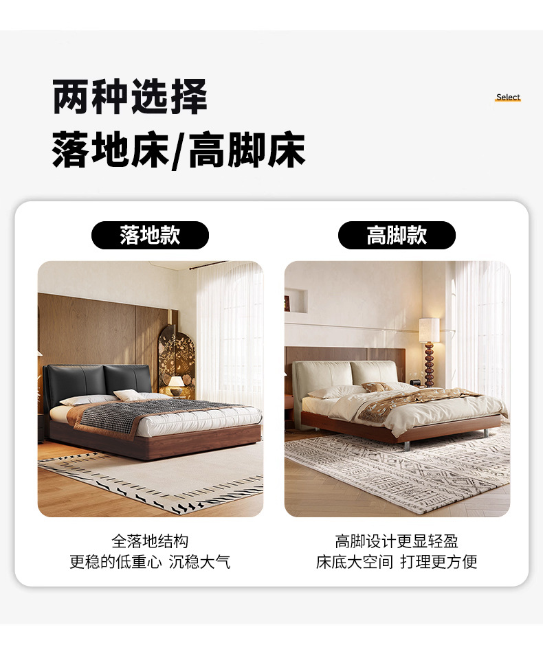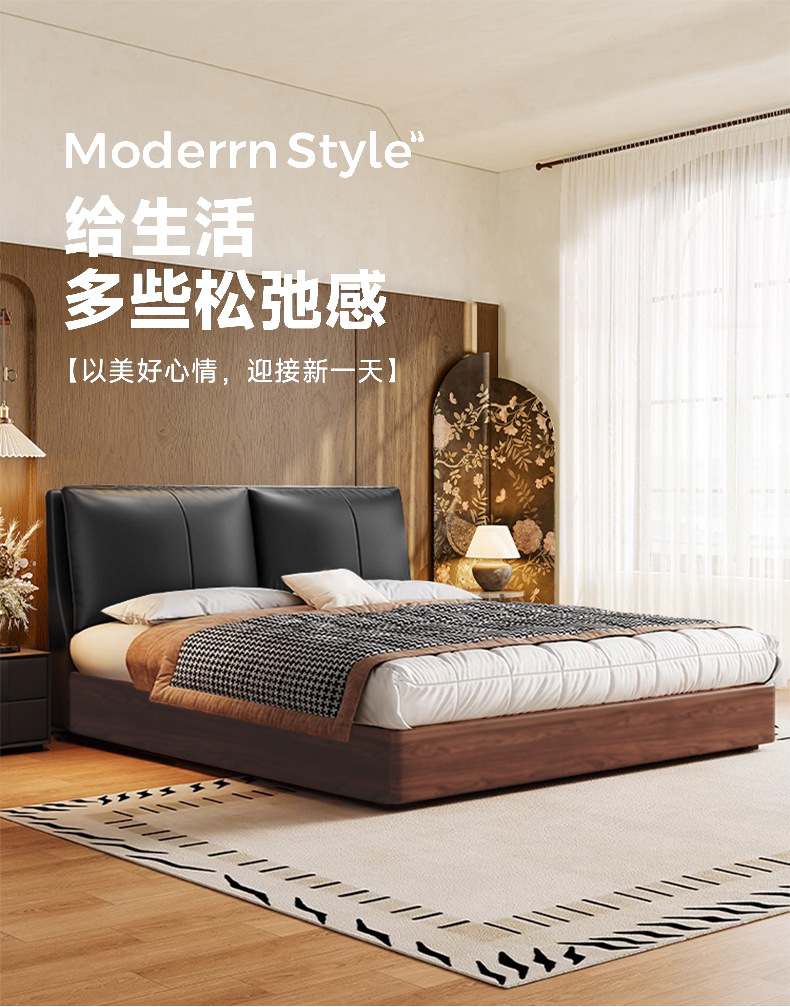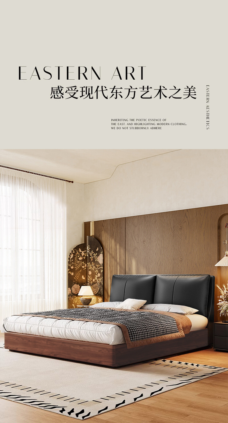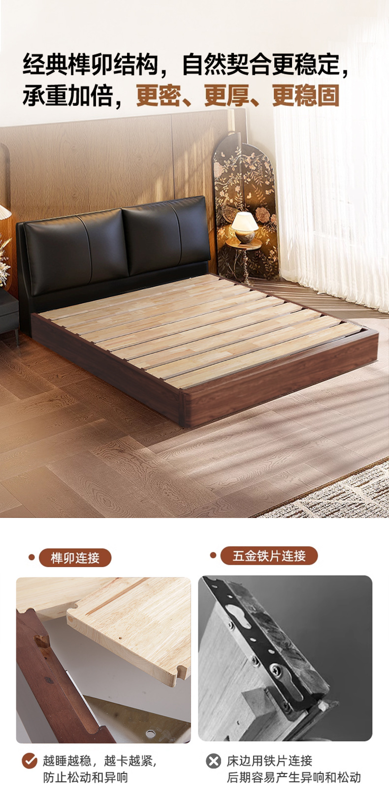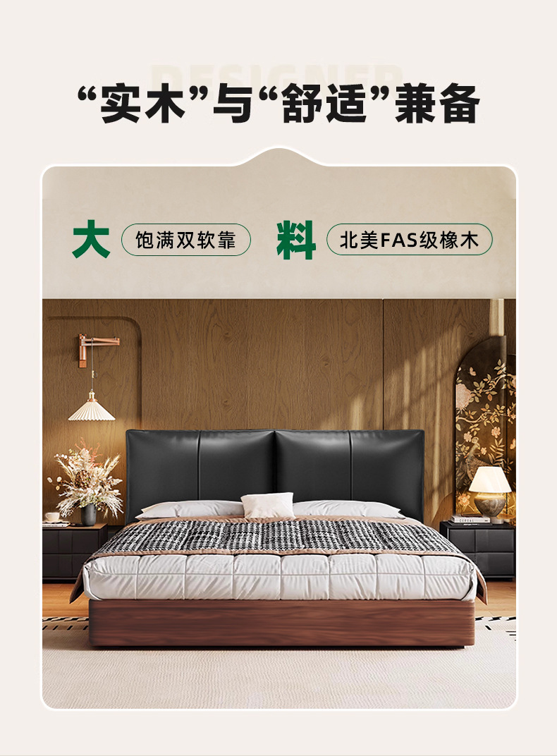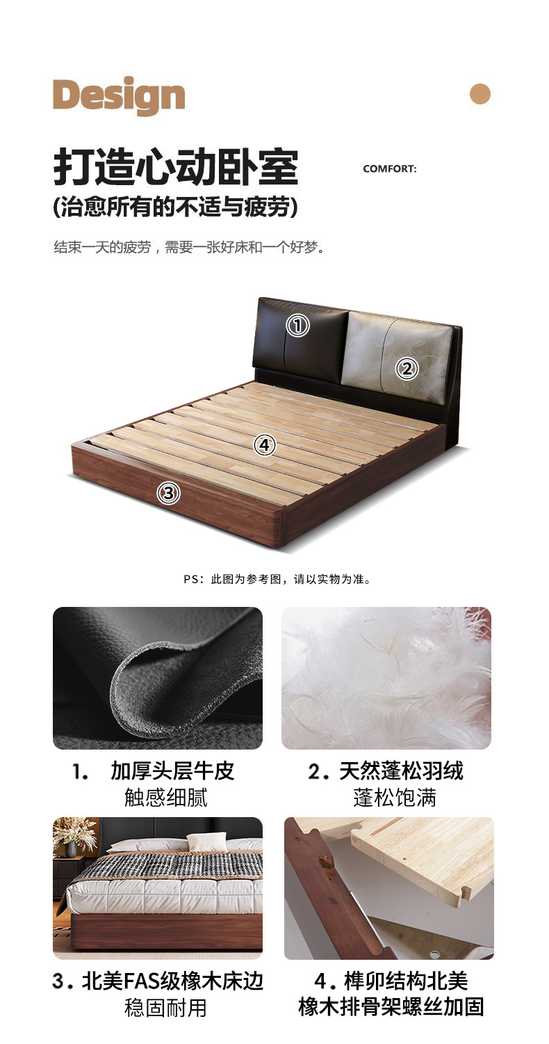 가정용 크기 및 유형을 위한 중세 스타일의 부드러운 가죽 침대, 복고풍 마스터 침실, 대형 검은 소 바닥 원목 더블 침대스토어 가기