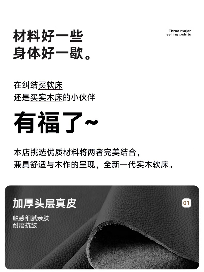 • Shizeng Moutai 가죽 싱글 침대 + 캐비닛 2개 {가죽 손잡이}