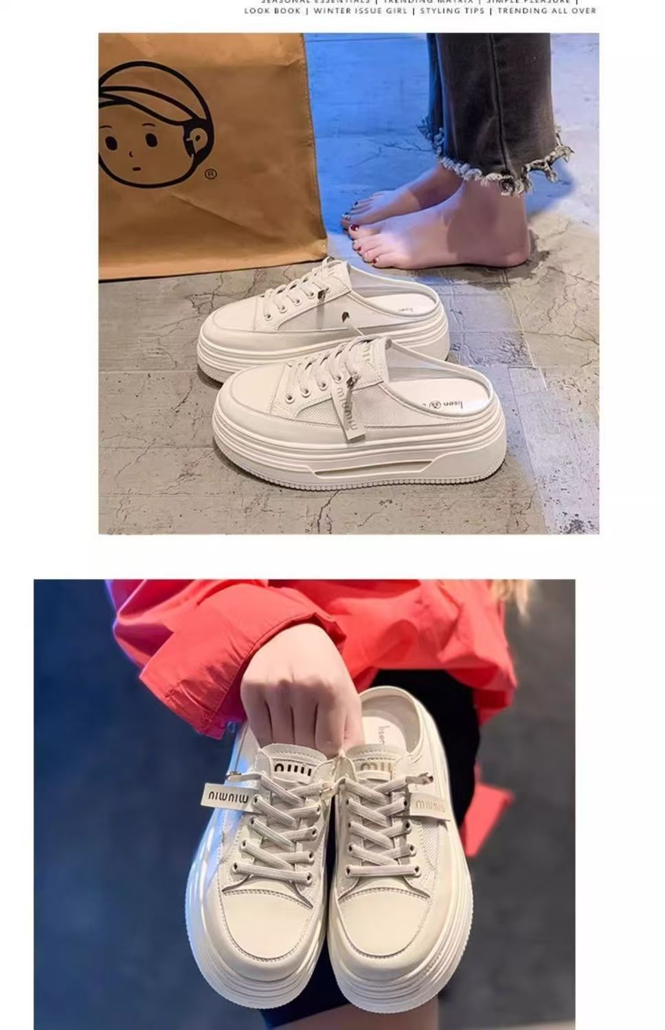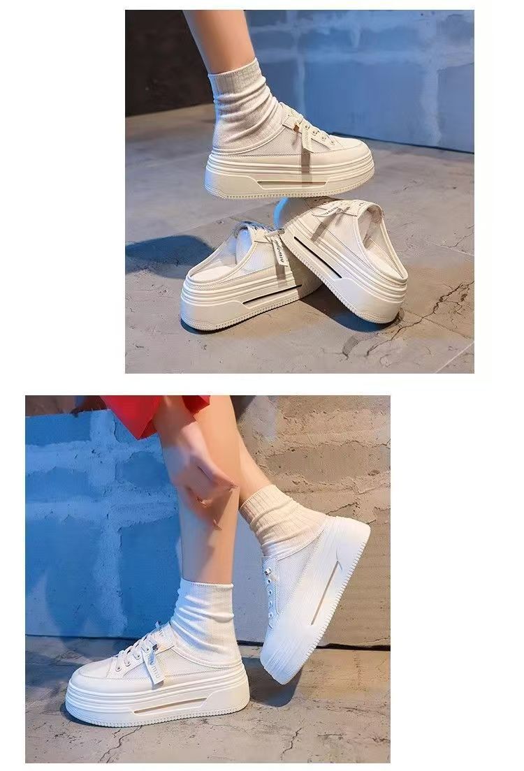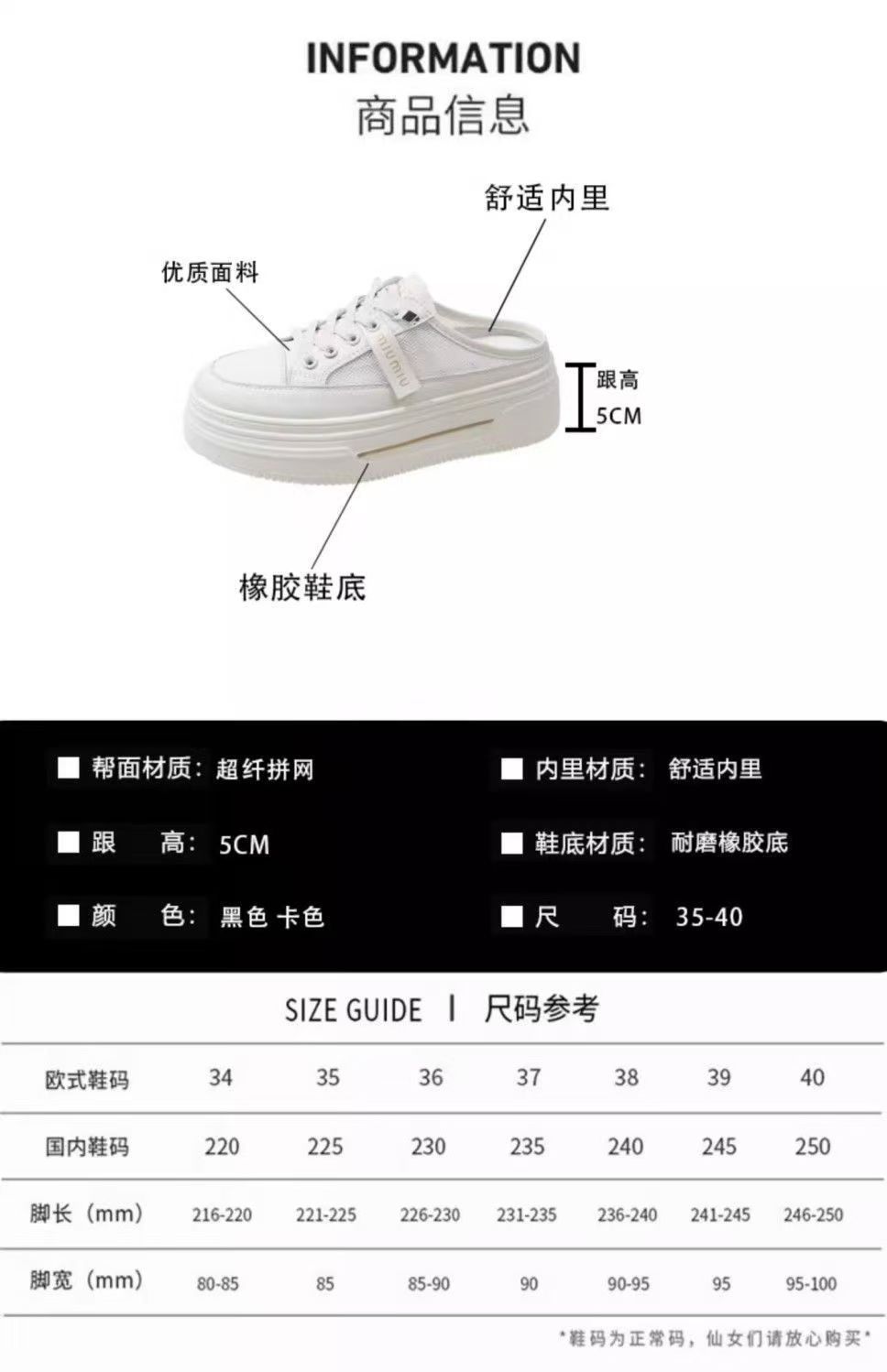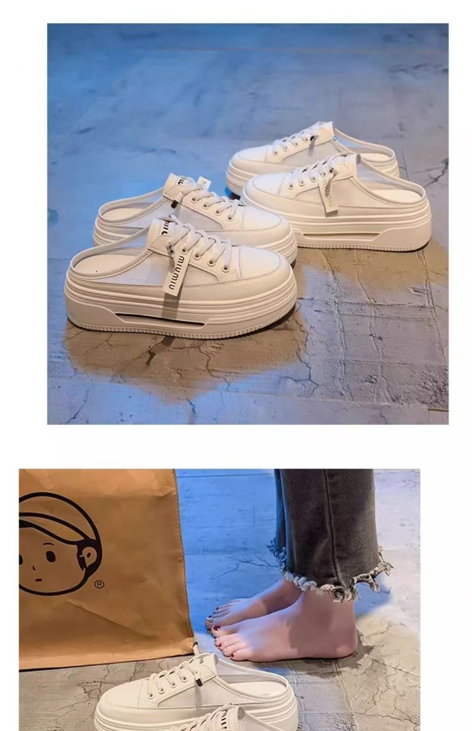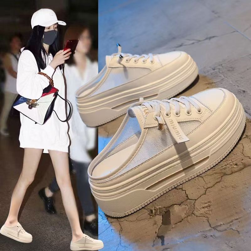 Ins 트렌디 통기성 메쉬 흰색 신발 여성 2025 여름 새로운 한국어 버전 학생 하프 토 메쉬 신발 두꺼운 밑창 캐주얼 신발스토어 가기