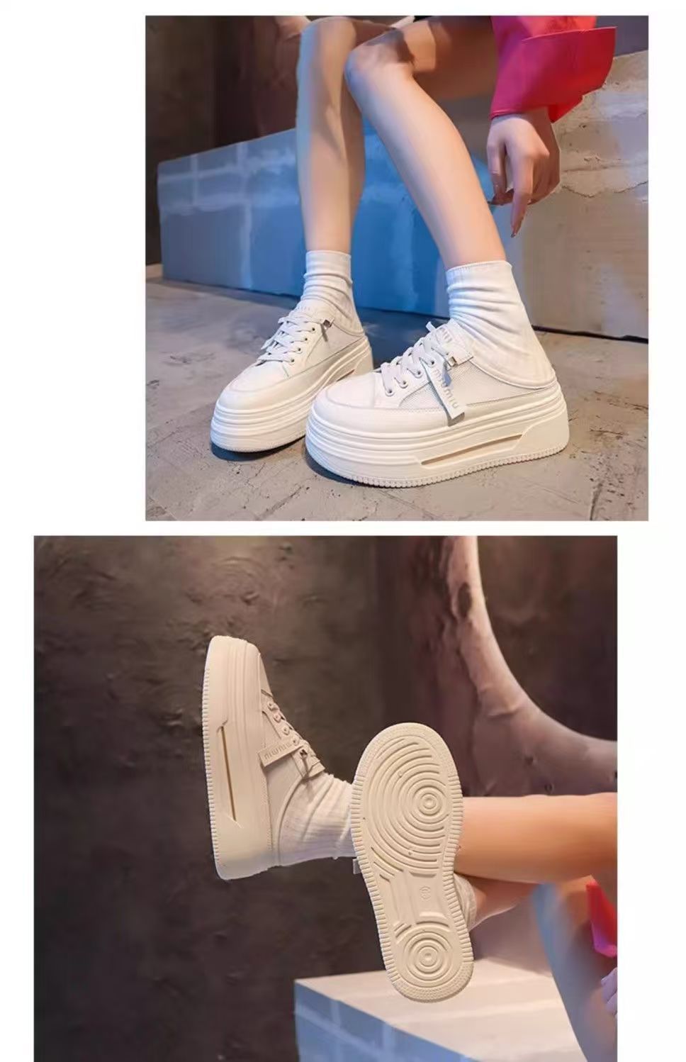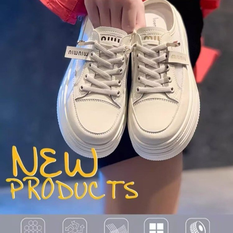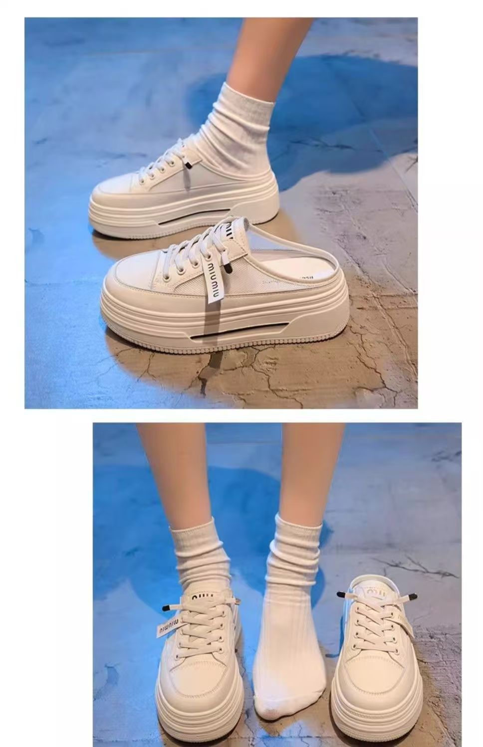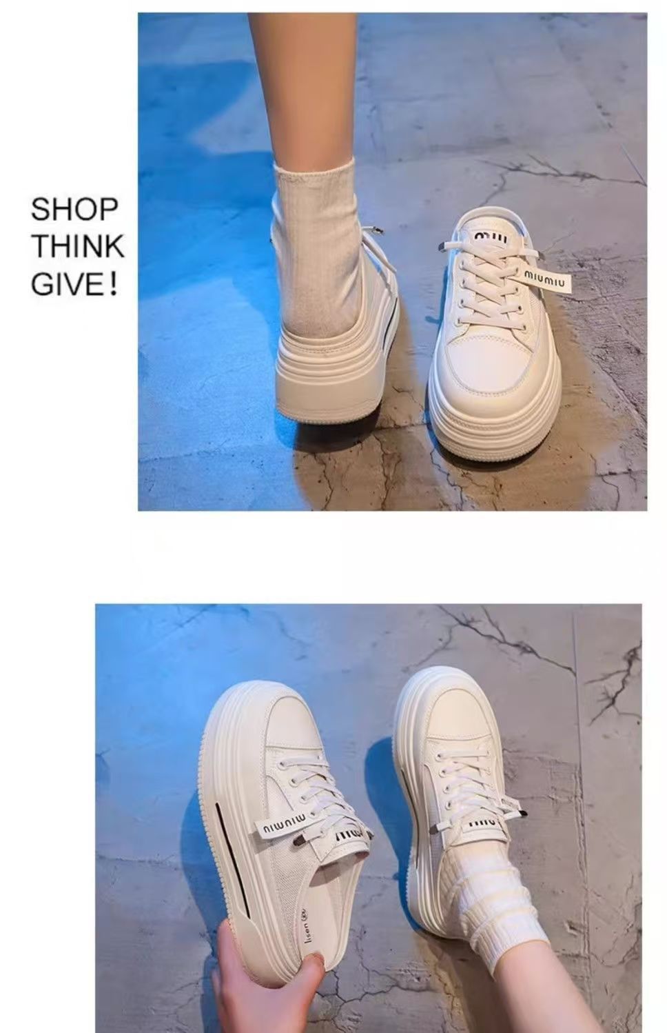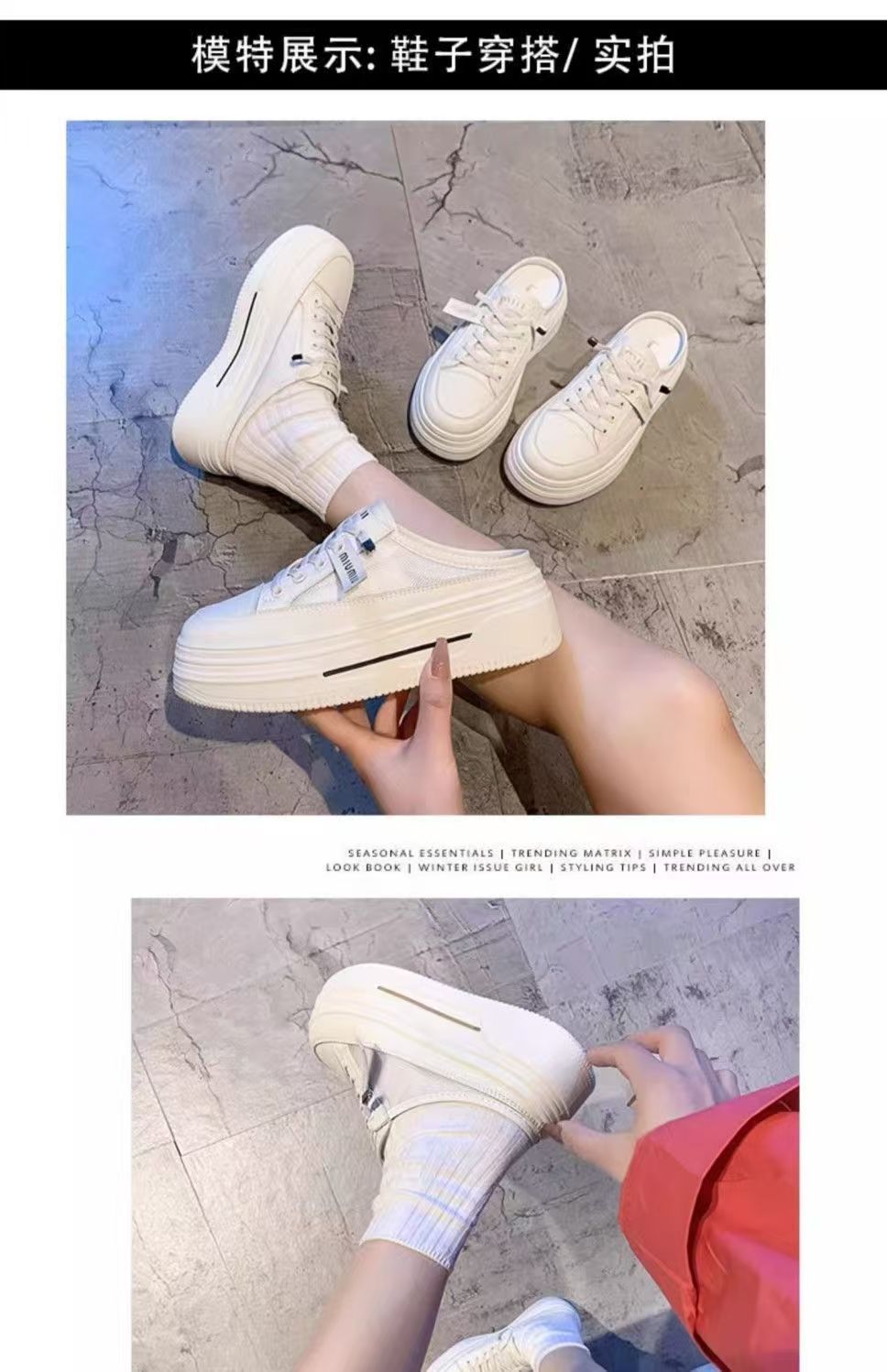 Ins 트렌디 통기성 메쉬 흰색 신발 여성 2025 여름 새로운 한국어 버전 학생 하프 토 메쉬 신발 두꺼운 밑창 캐주얼 신발스토어 가기