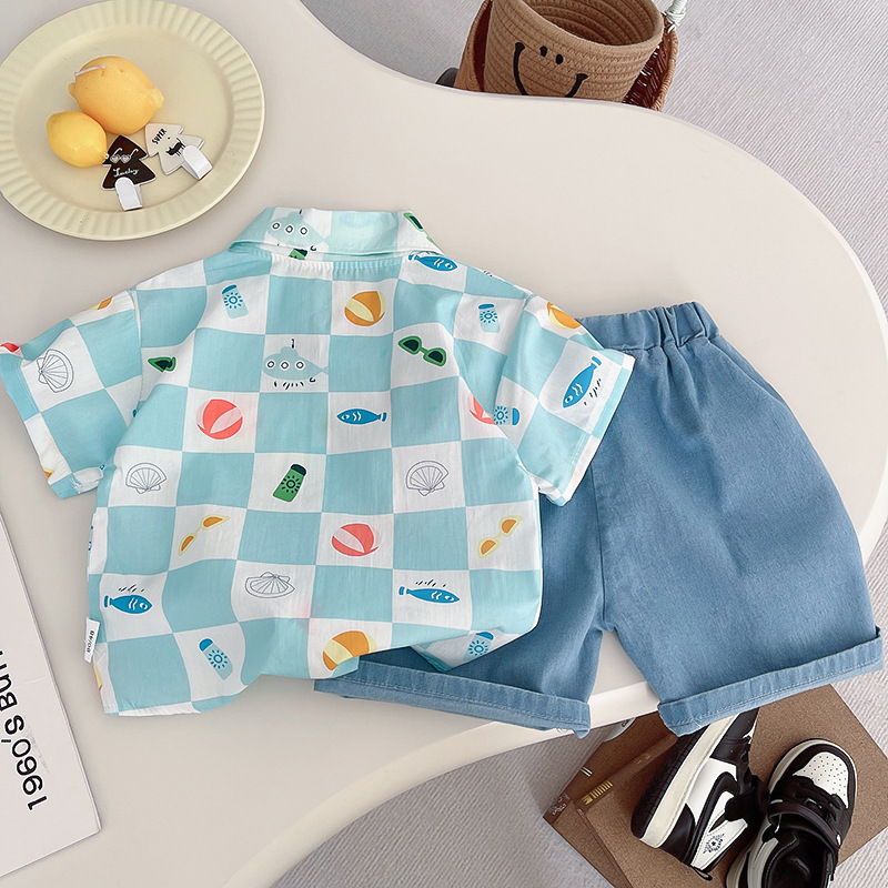 2025 새로운 스타일의 셔츠 POLO 셔츠 어린이 아기 데님 아동복 소년 여름 반팔 세트 투피스 세트스토어 가기