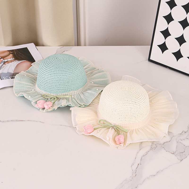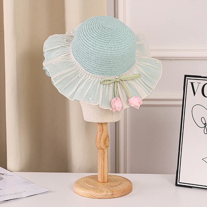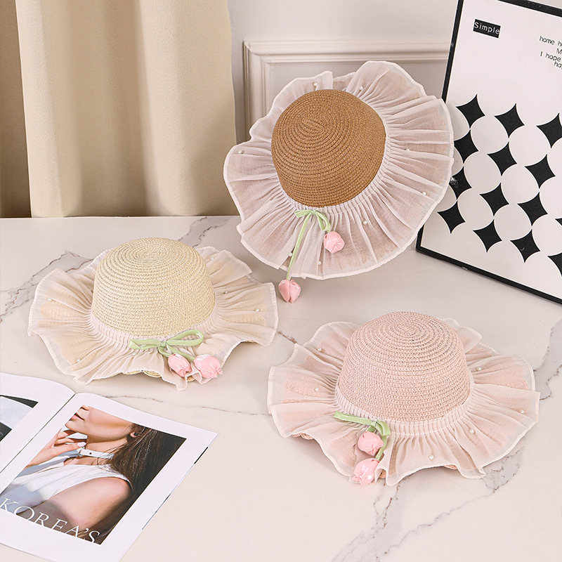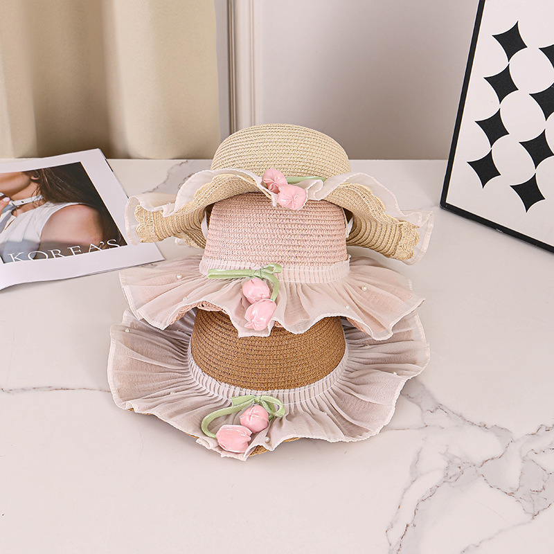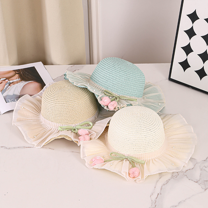 어린이 밀짚 모자 여름 선스크린 모자 소녀의 밀짚 태양 모자 목회 공주 태양 모자 해변 모자