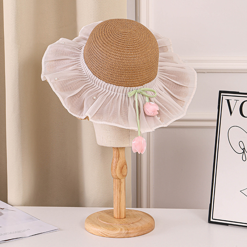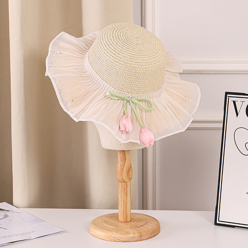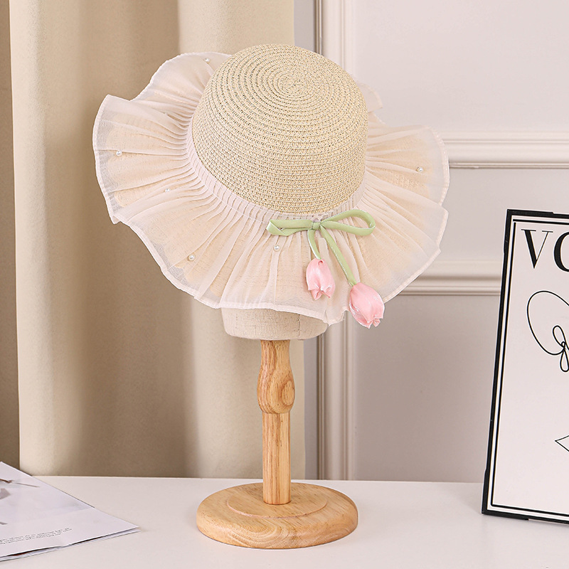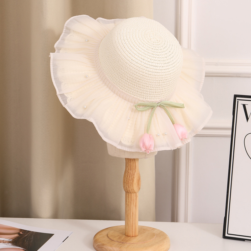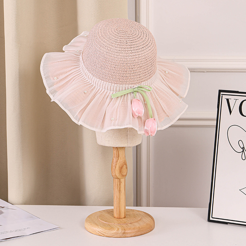어린이 밀짚 모자 여름 선스크린 모자 소녀의 밀짚 태양 모자 목회 공주 태양 모자 해변 모자