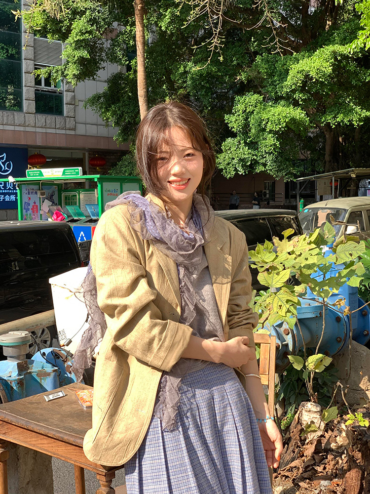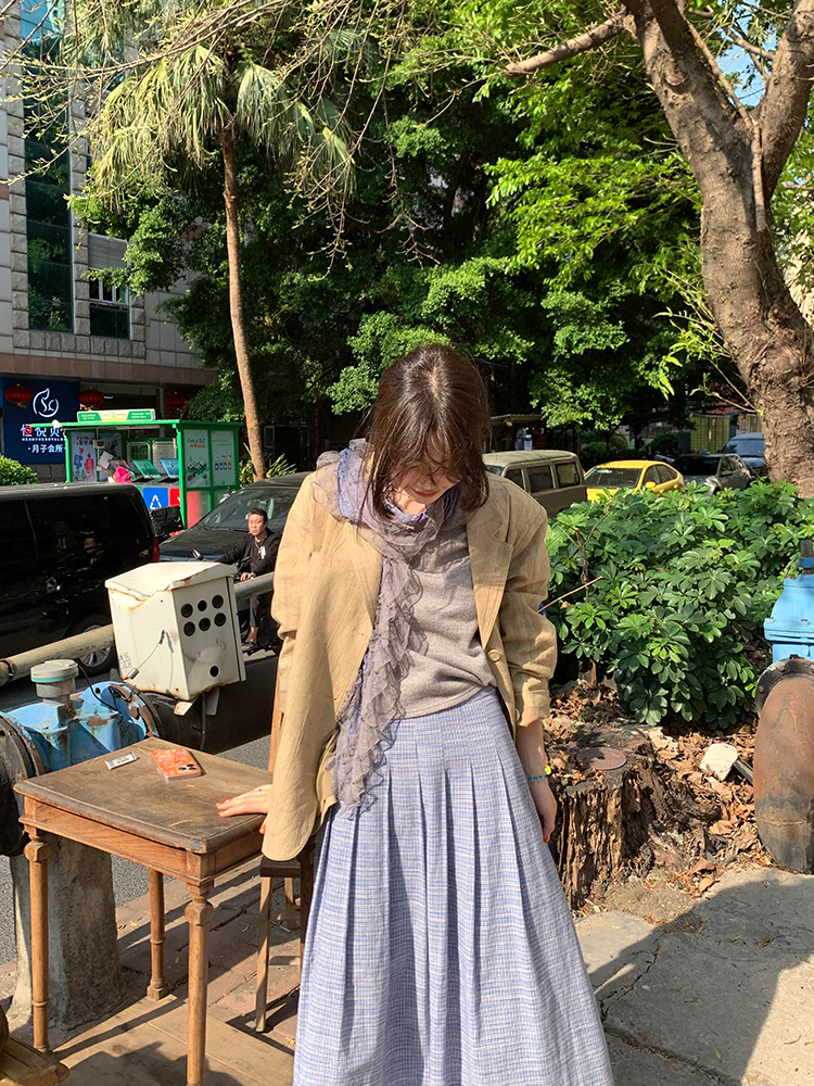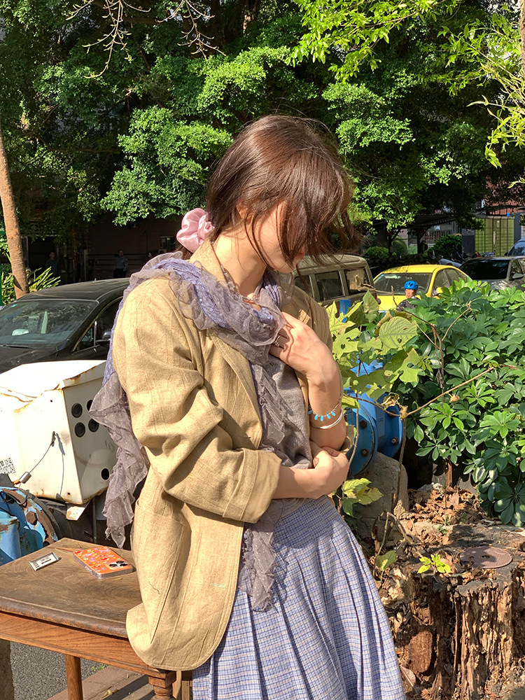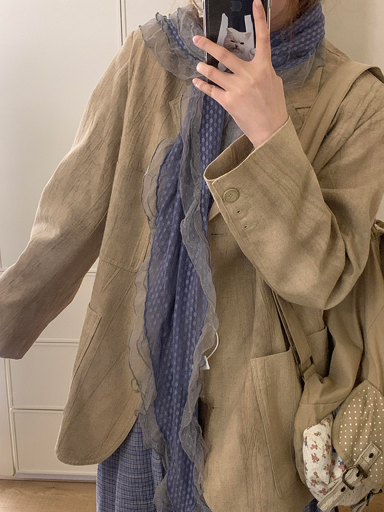 재고! 고대 초기 회색 파란색 웨이브 레이스 가장자리 스카프 여성의 나무 귀 긴 스카프가있는 후지이 나무스토어 가기